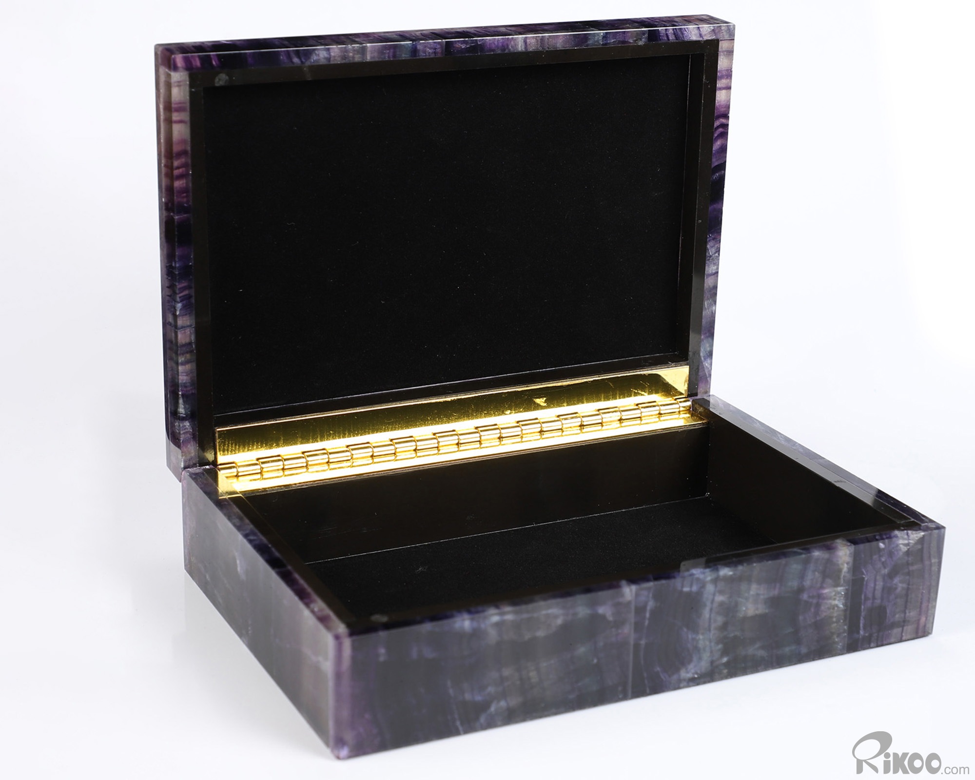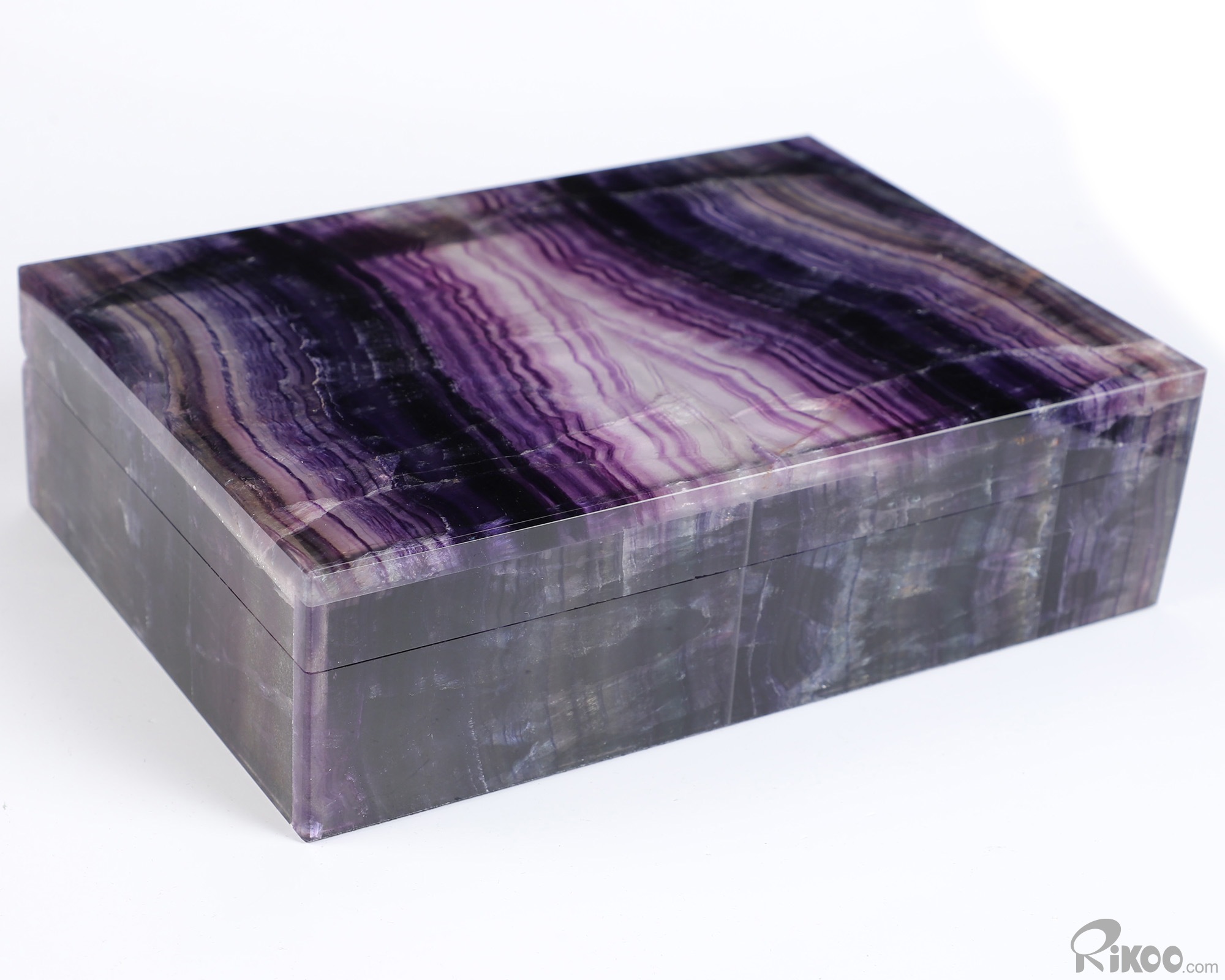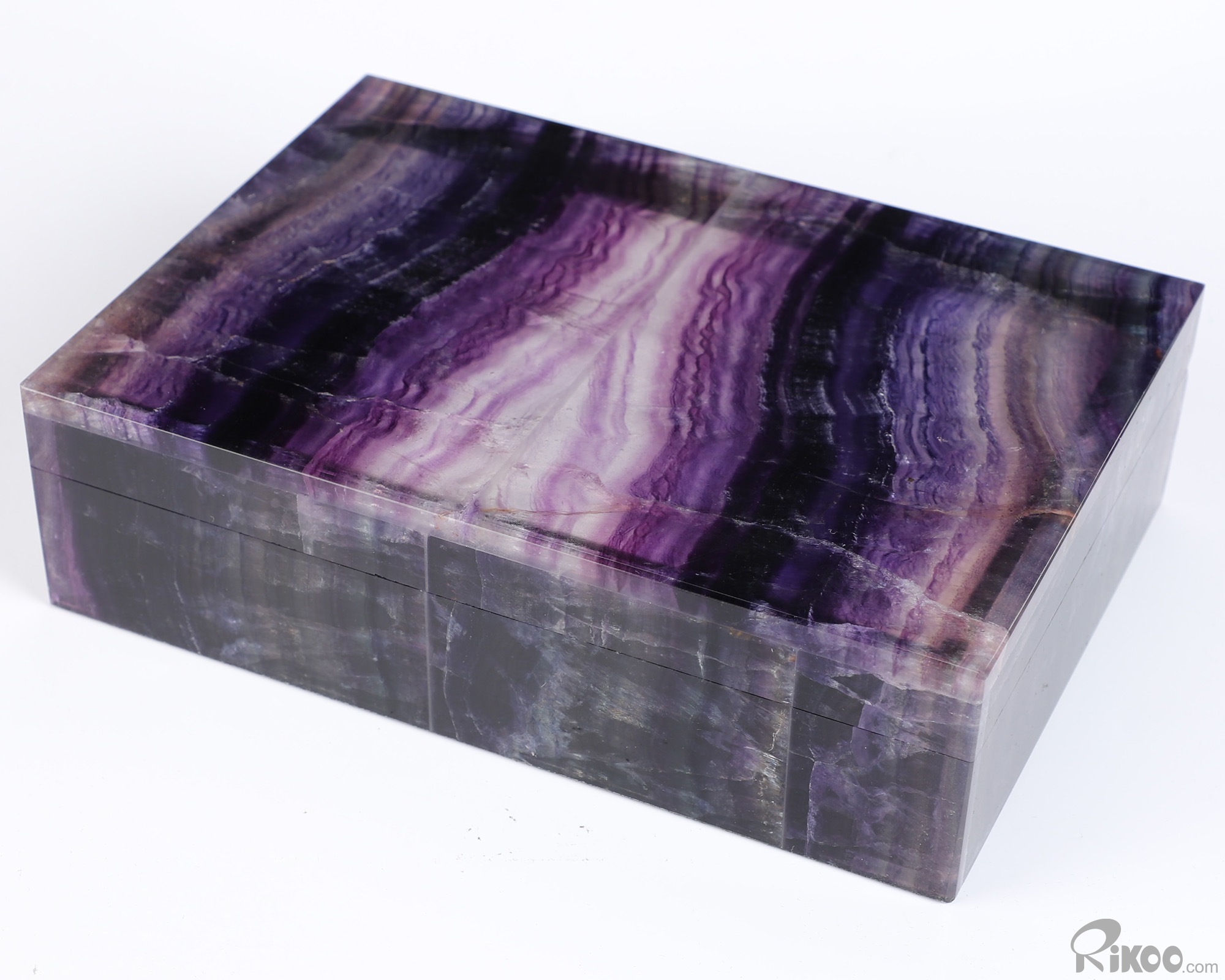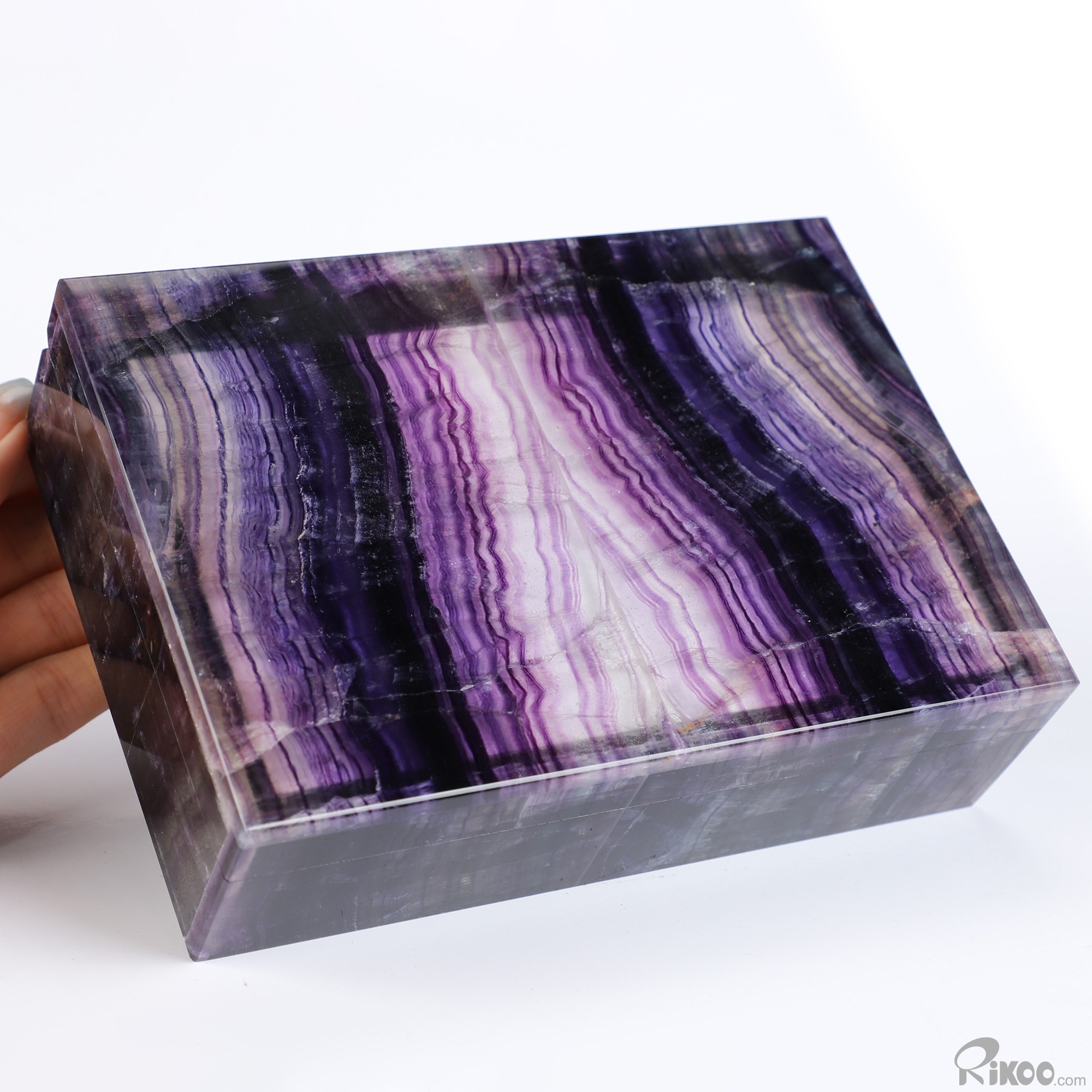 6.2" Fluorite Hand Carved Crystal Jewelry Box, Crystal Healing