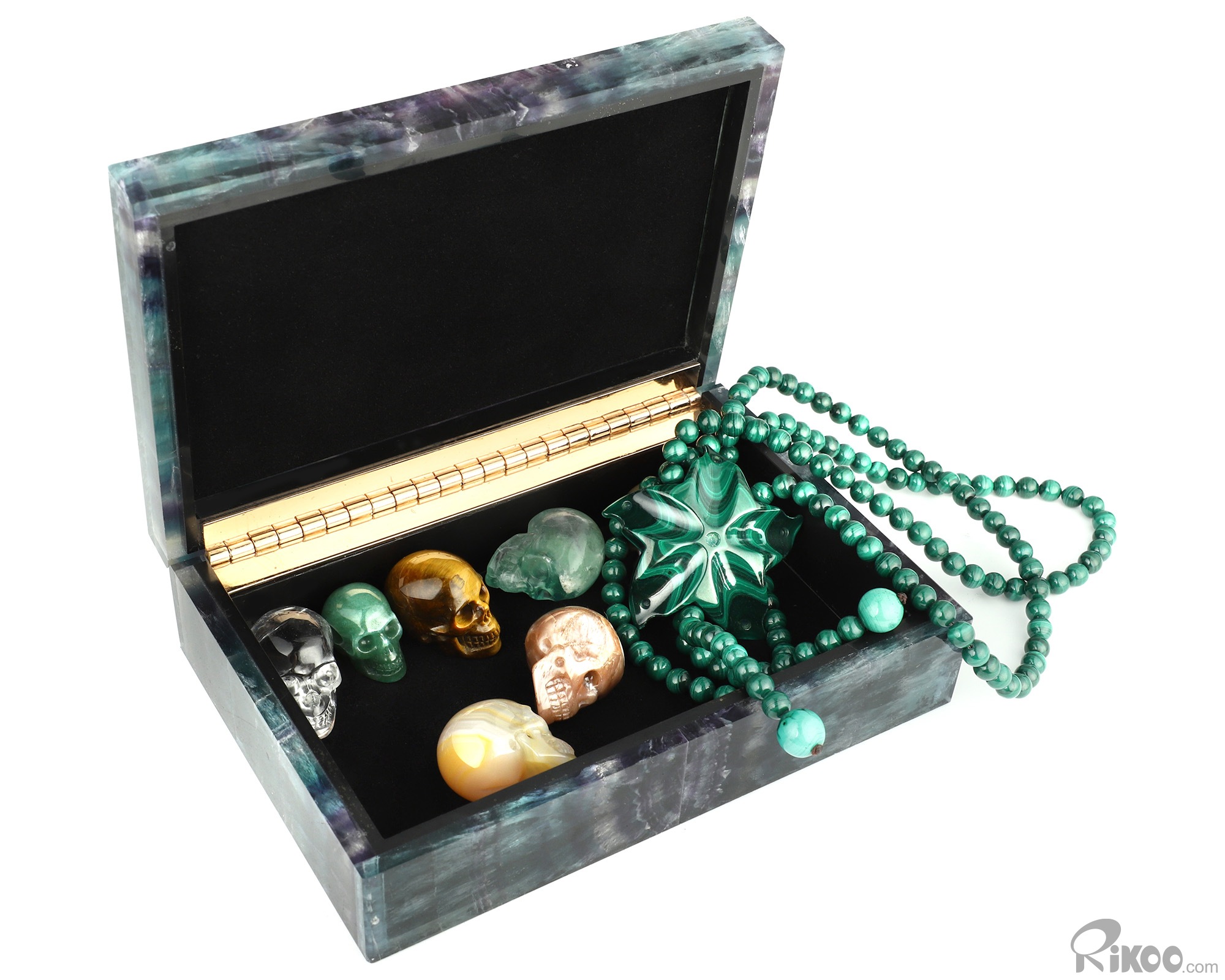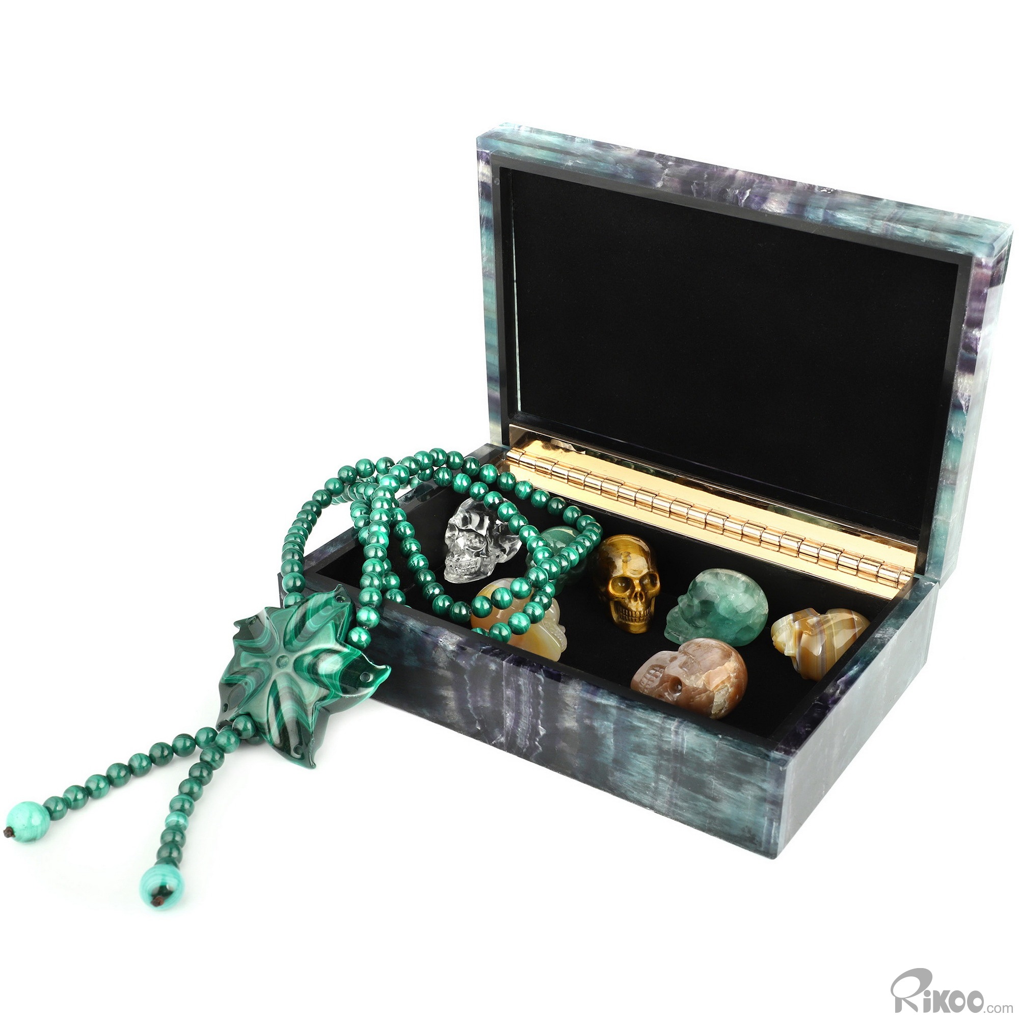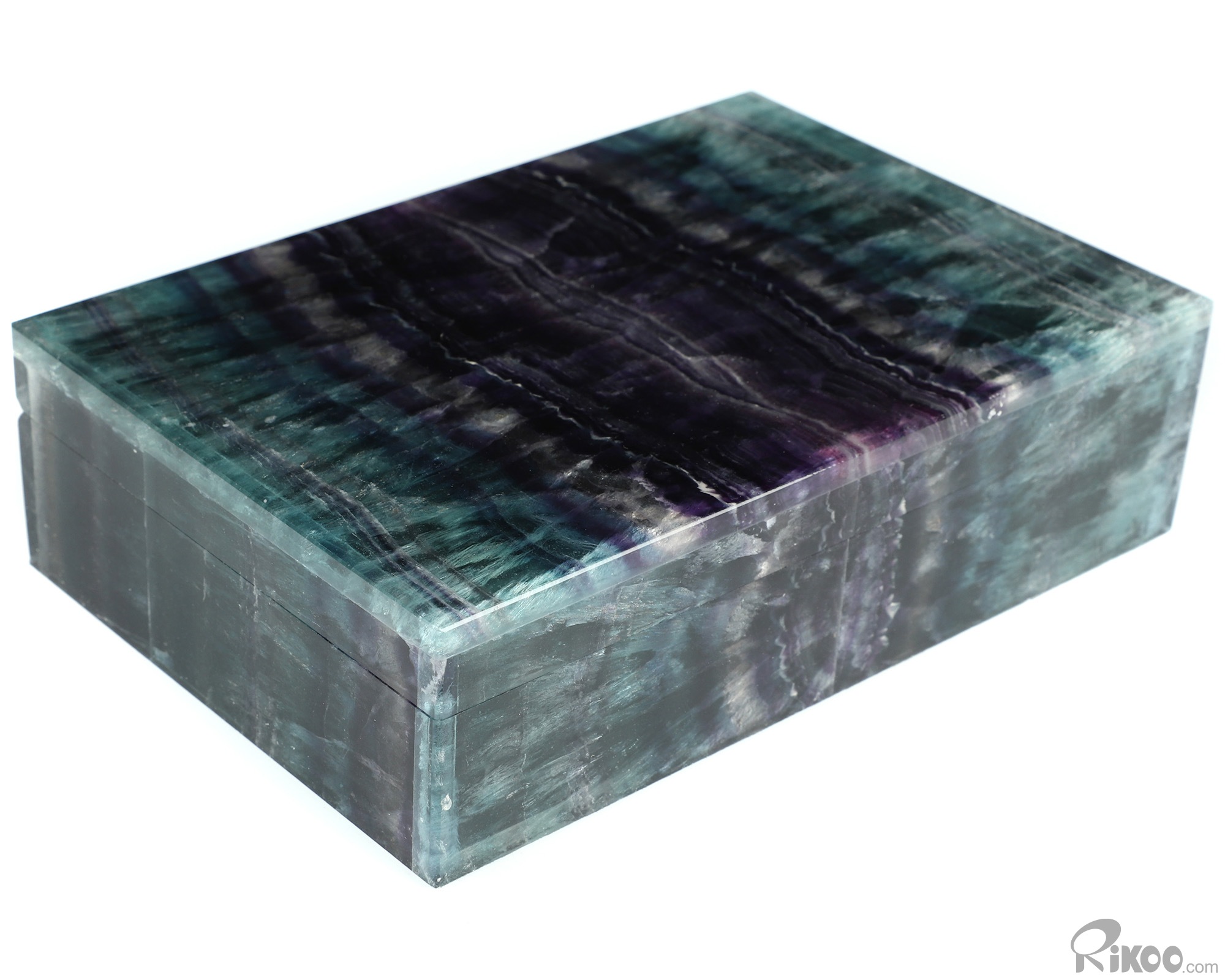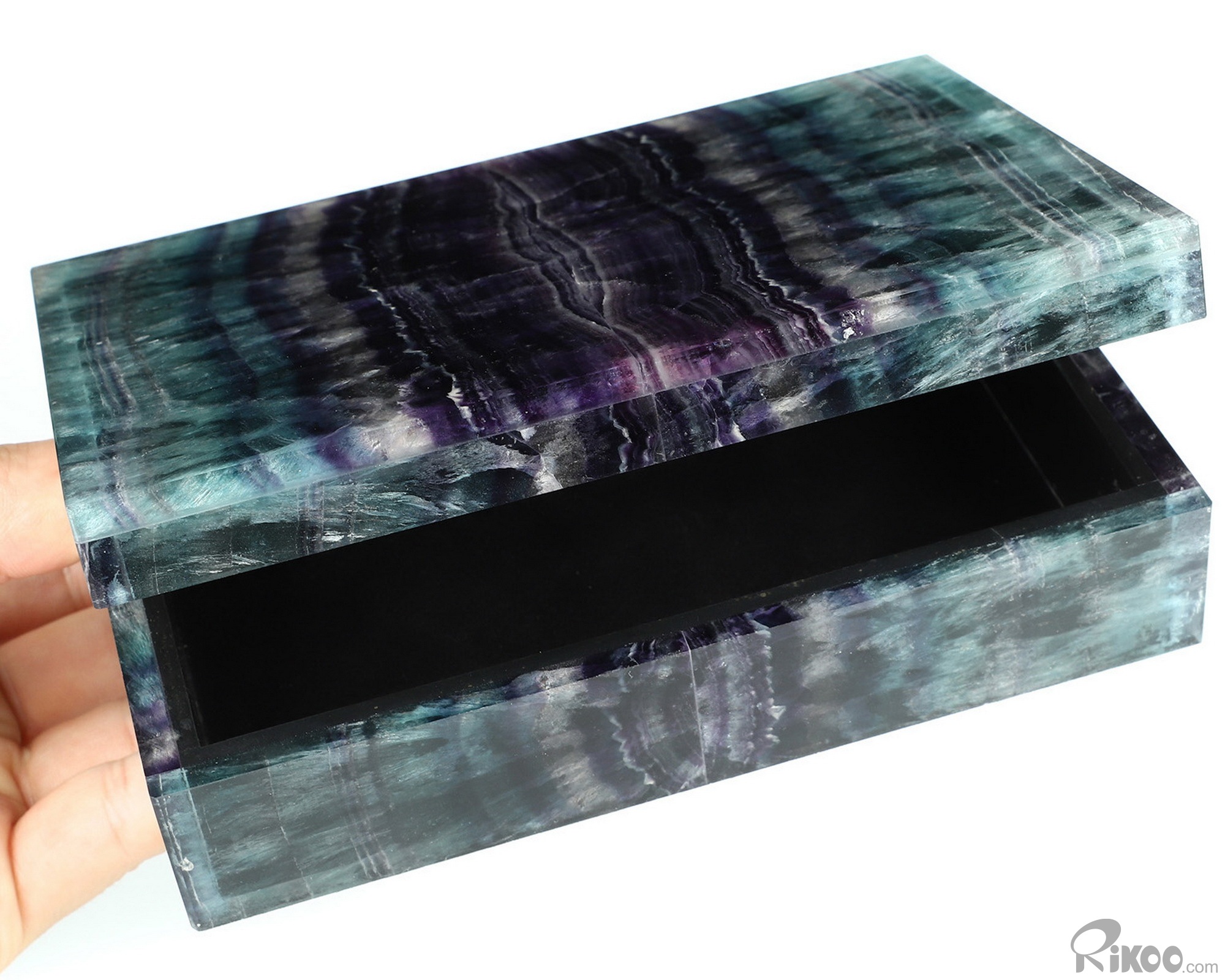 6.2" Fluorite Hand Carved Crystal Jewelry Gemstone Box, Crystal Healing