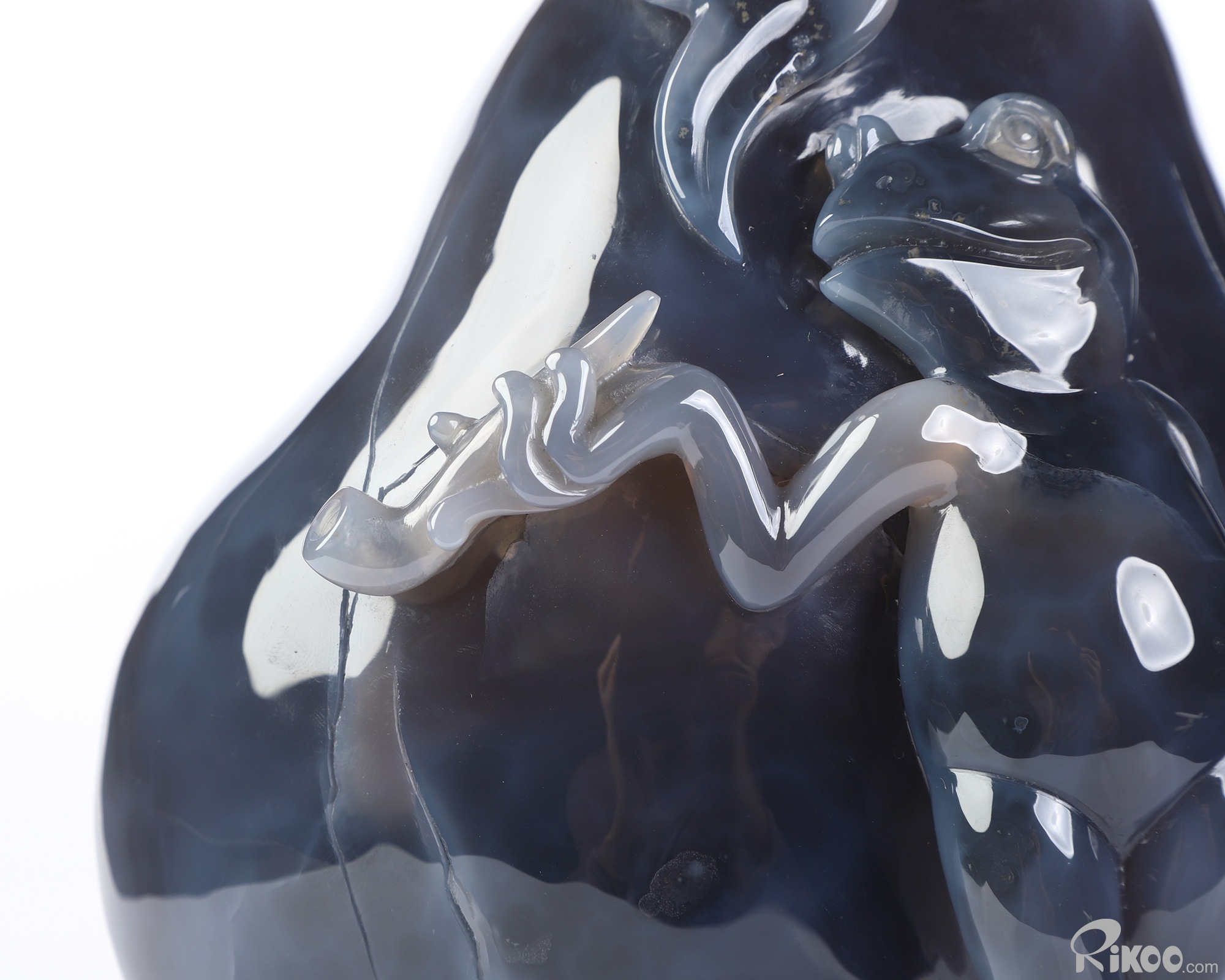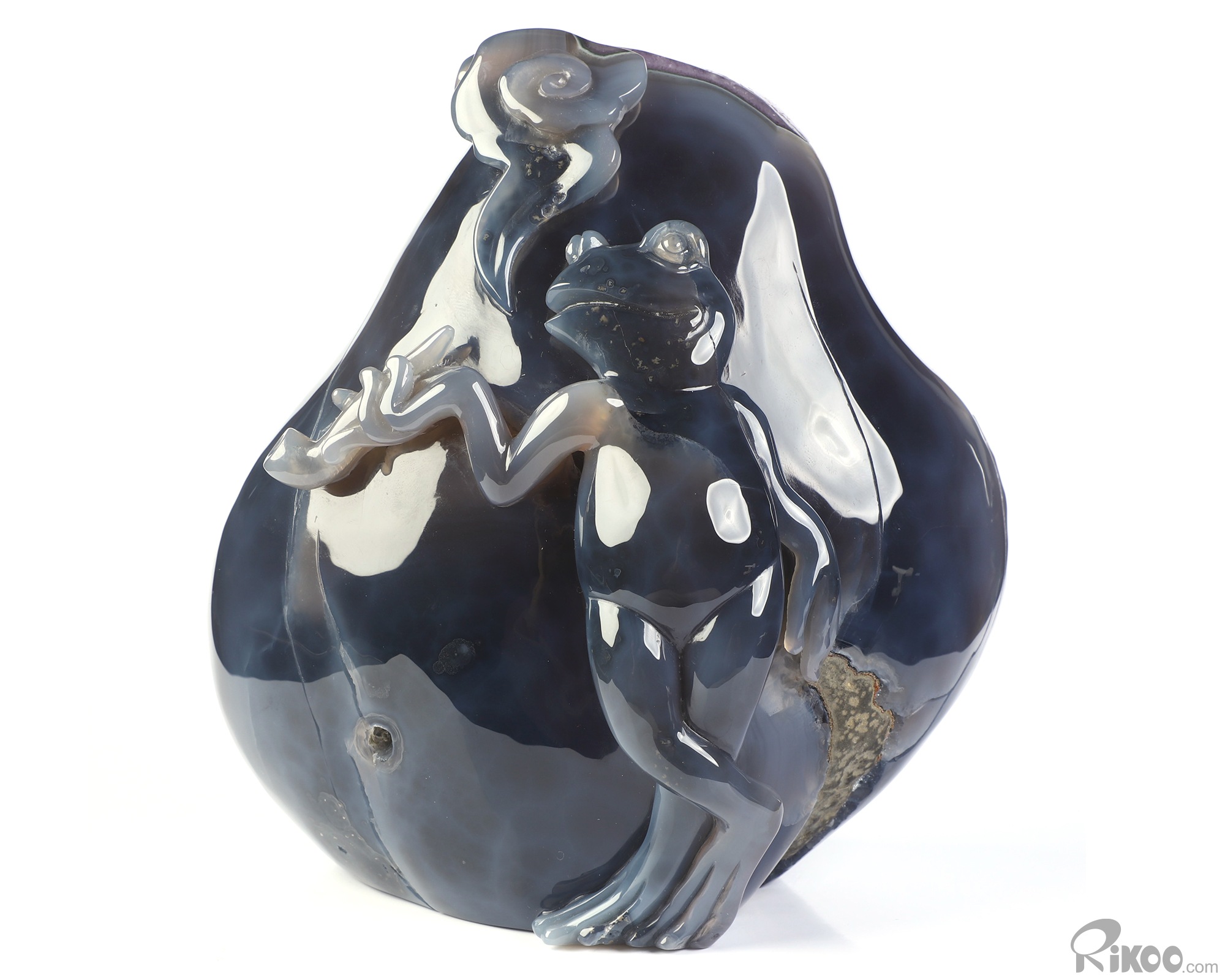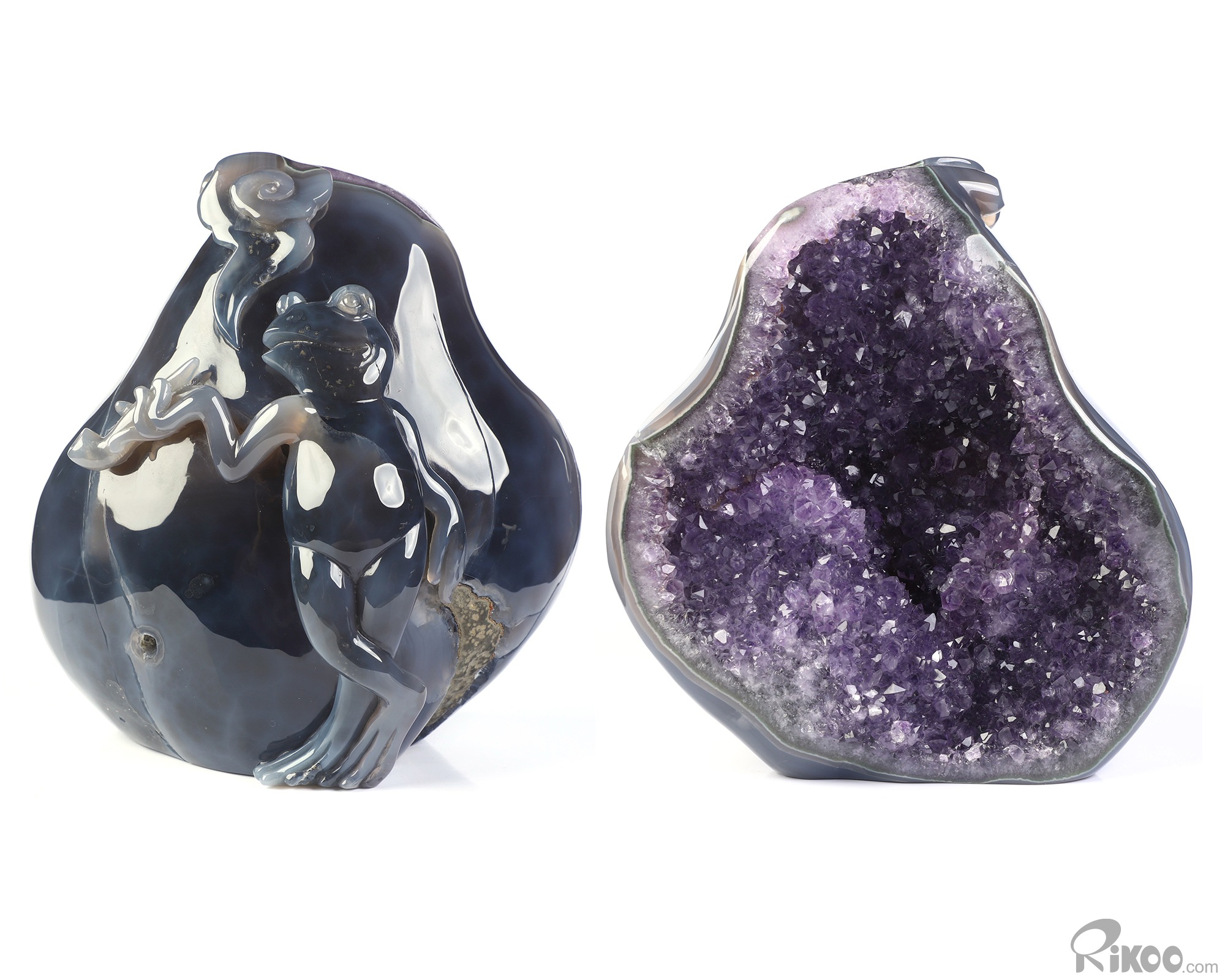 6.3" Agate Amethyst Geode Hand Carved Crystal Frog Sculpture, Crystal Healing