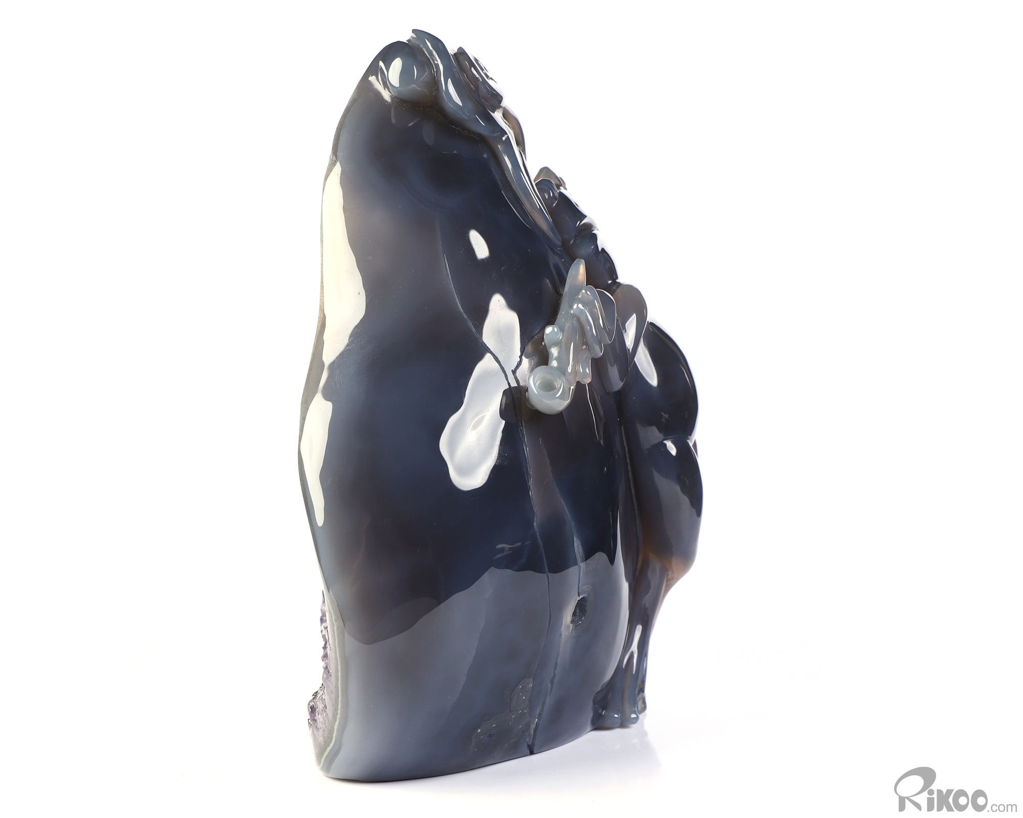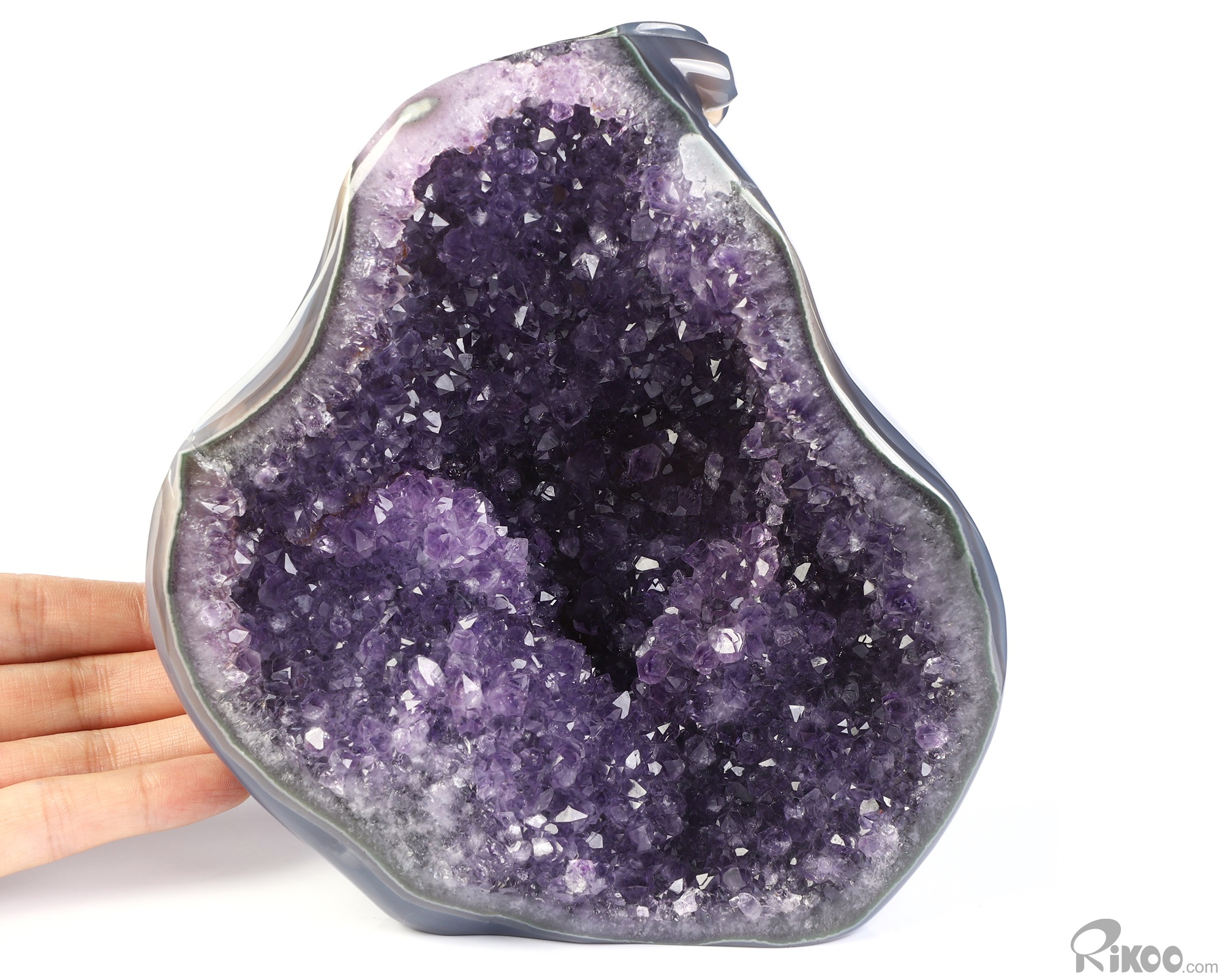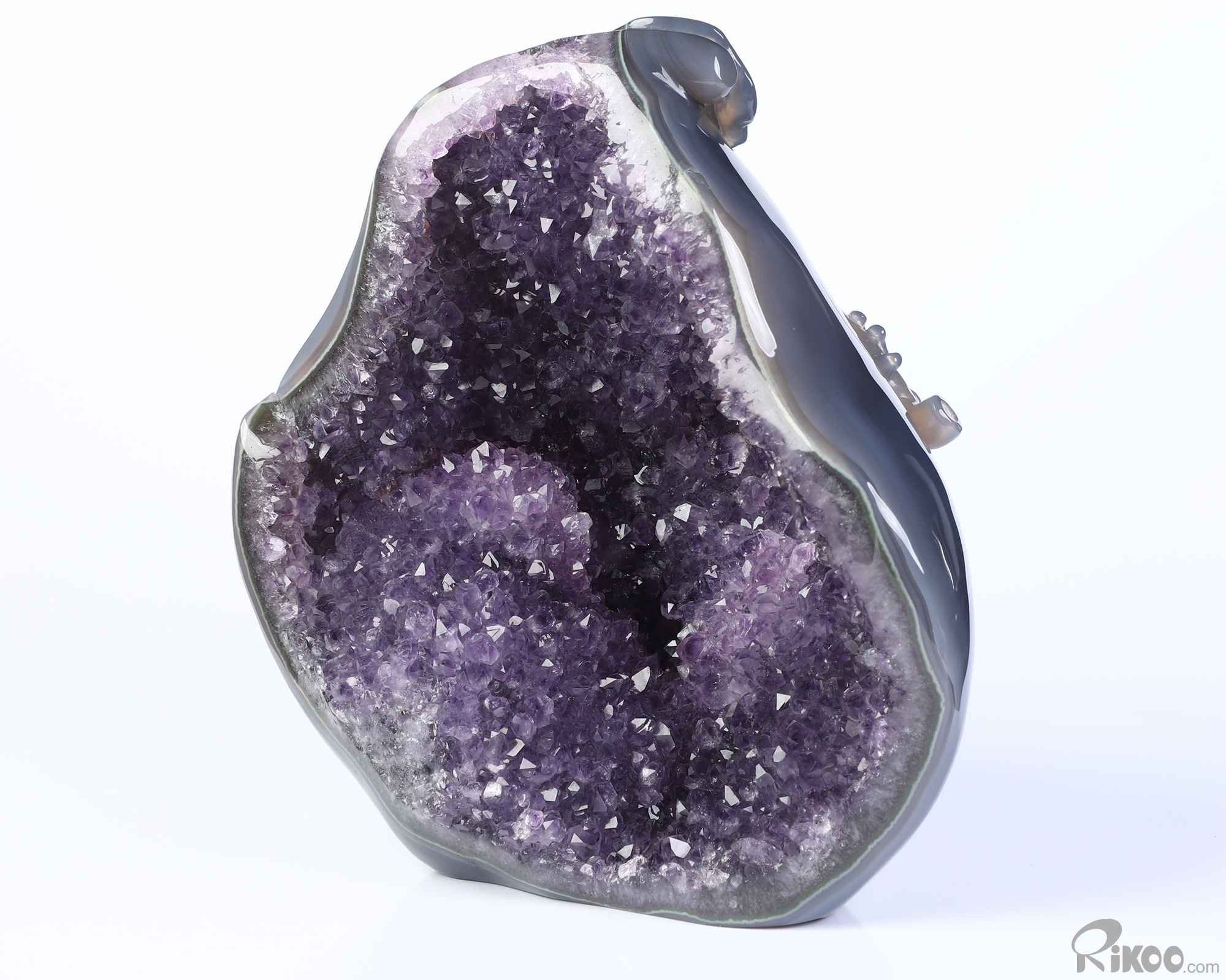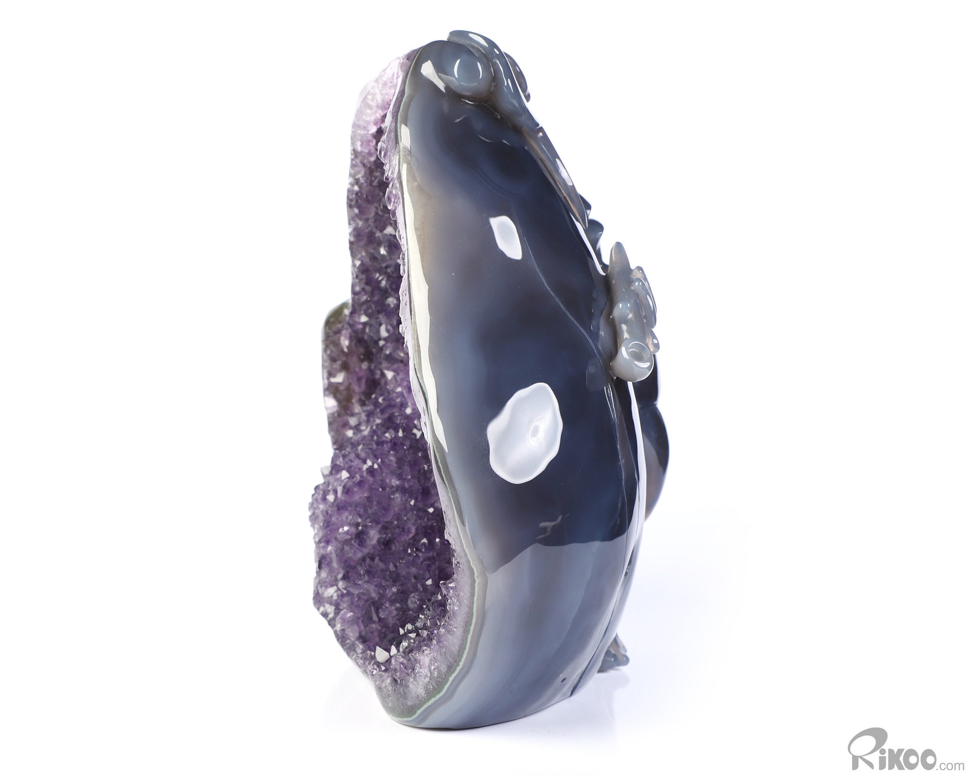 You are looking at a Agate Amethyst Geode sculpture. The sculpture is 6.3 inches long.