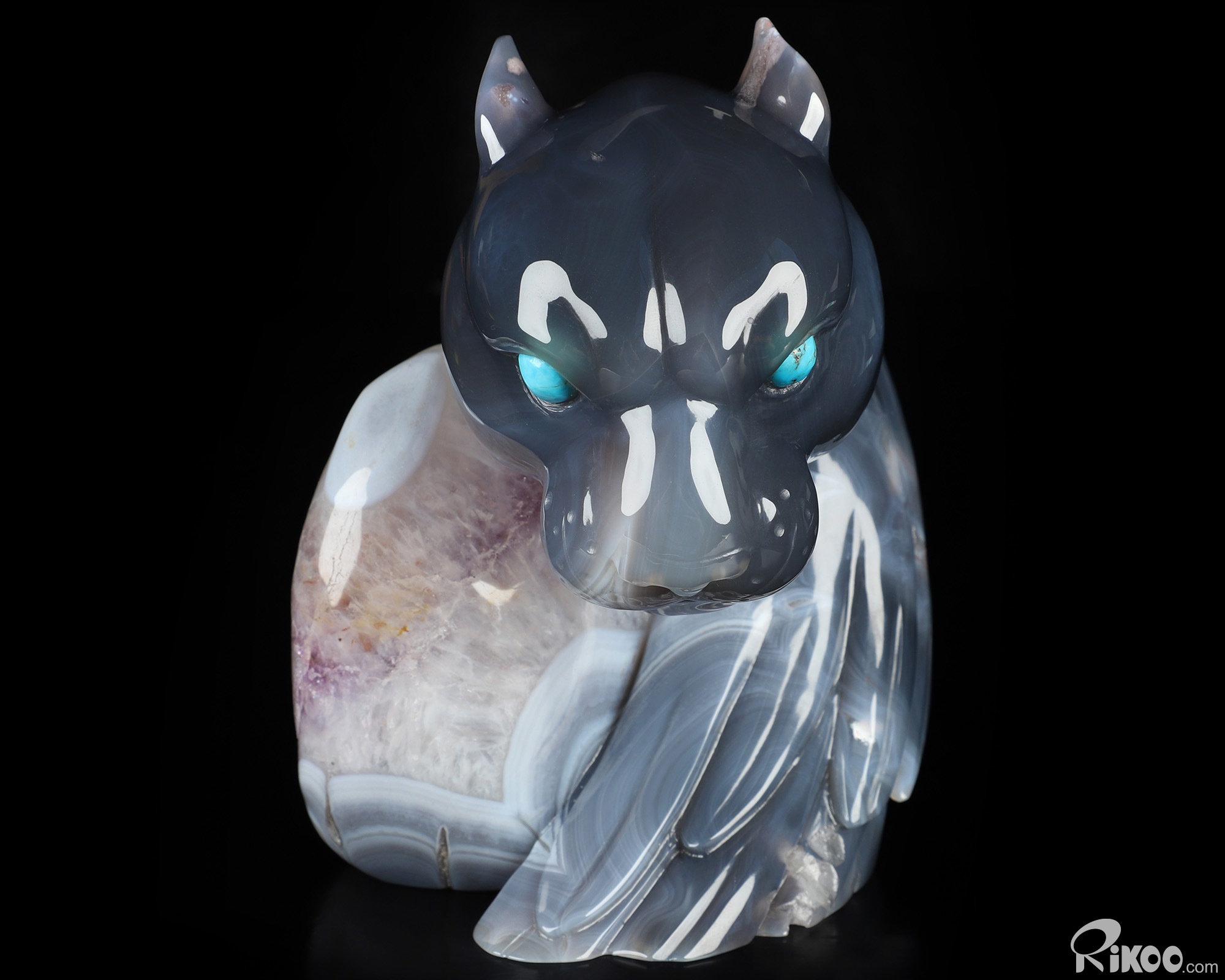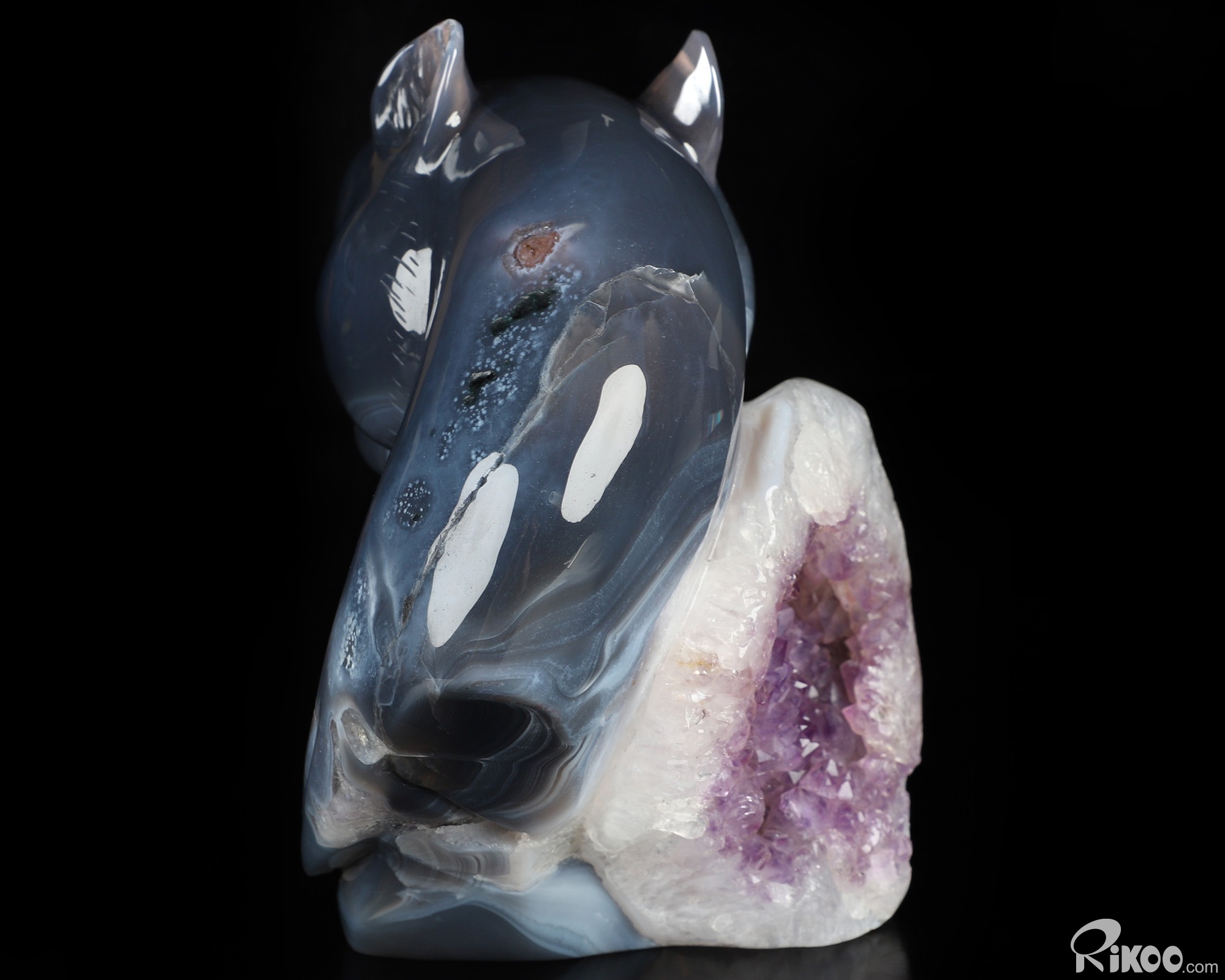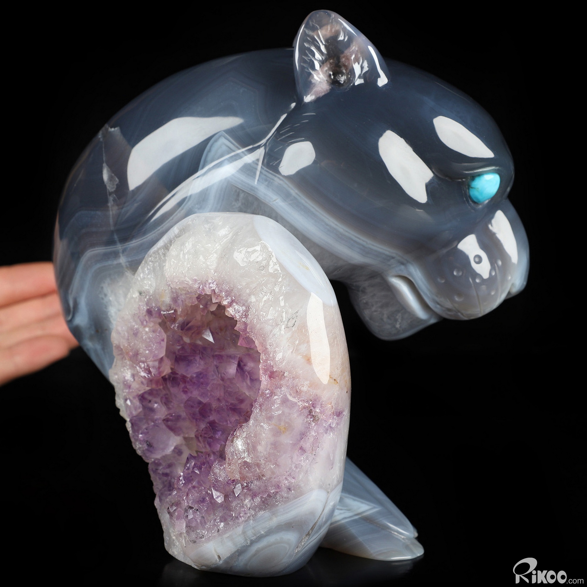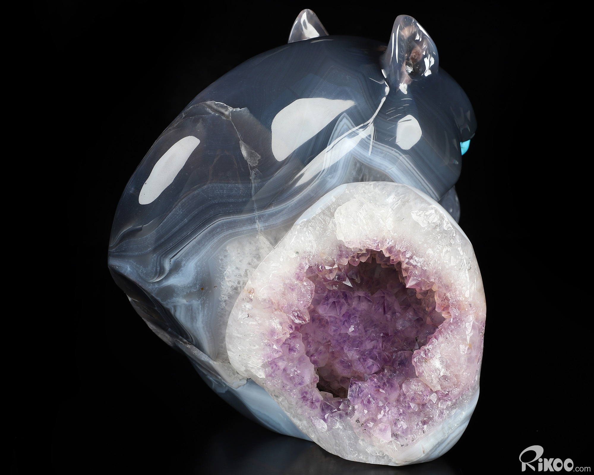 You are looking at an Agate Amethyst Geode sculpture. The sculpture is 6.3 inches long.