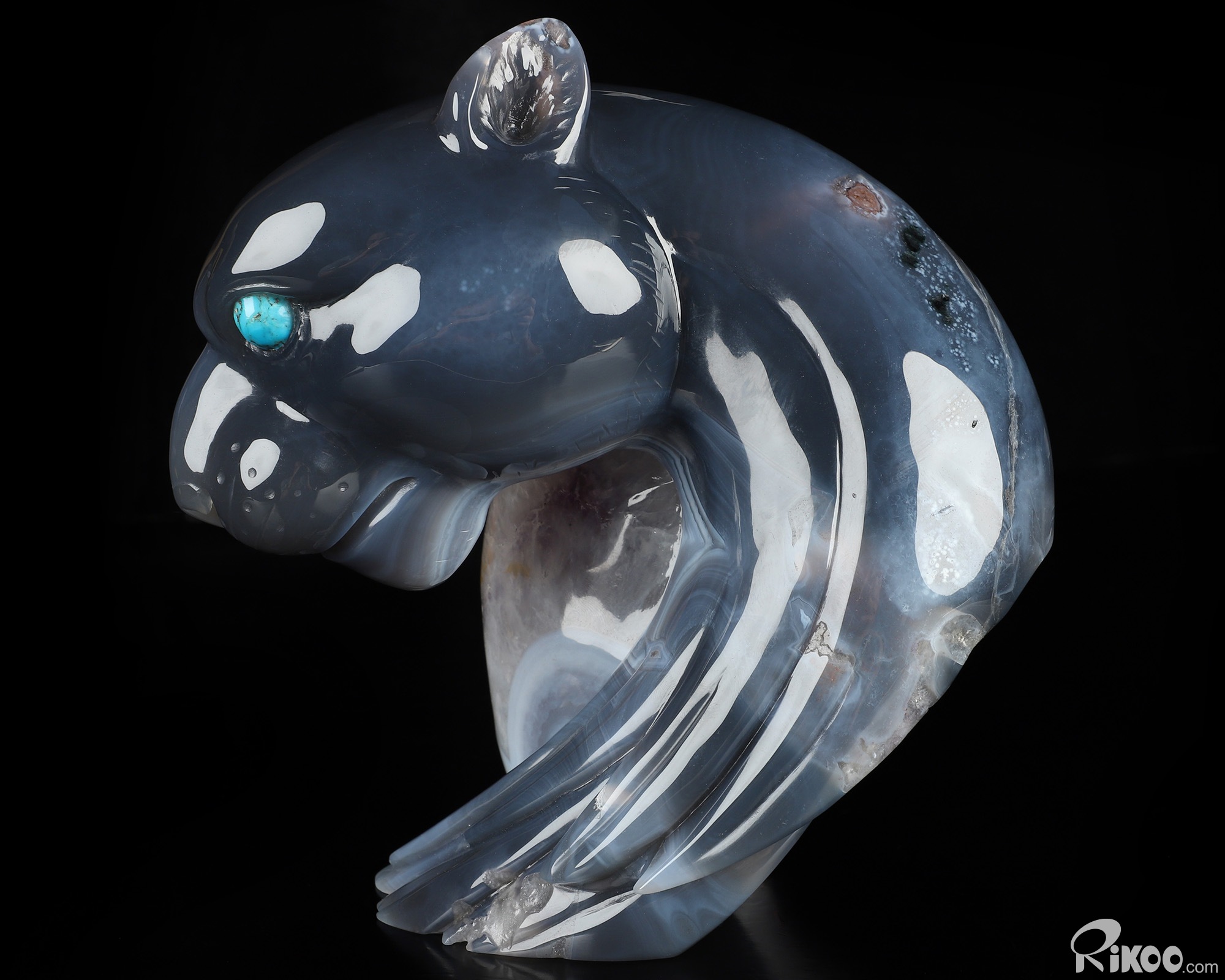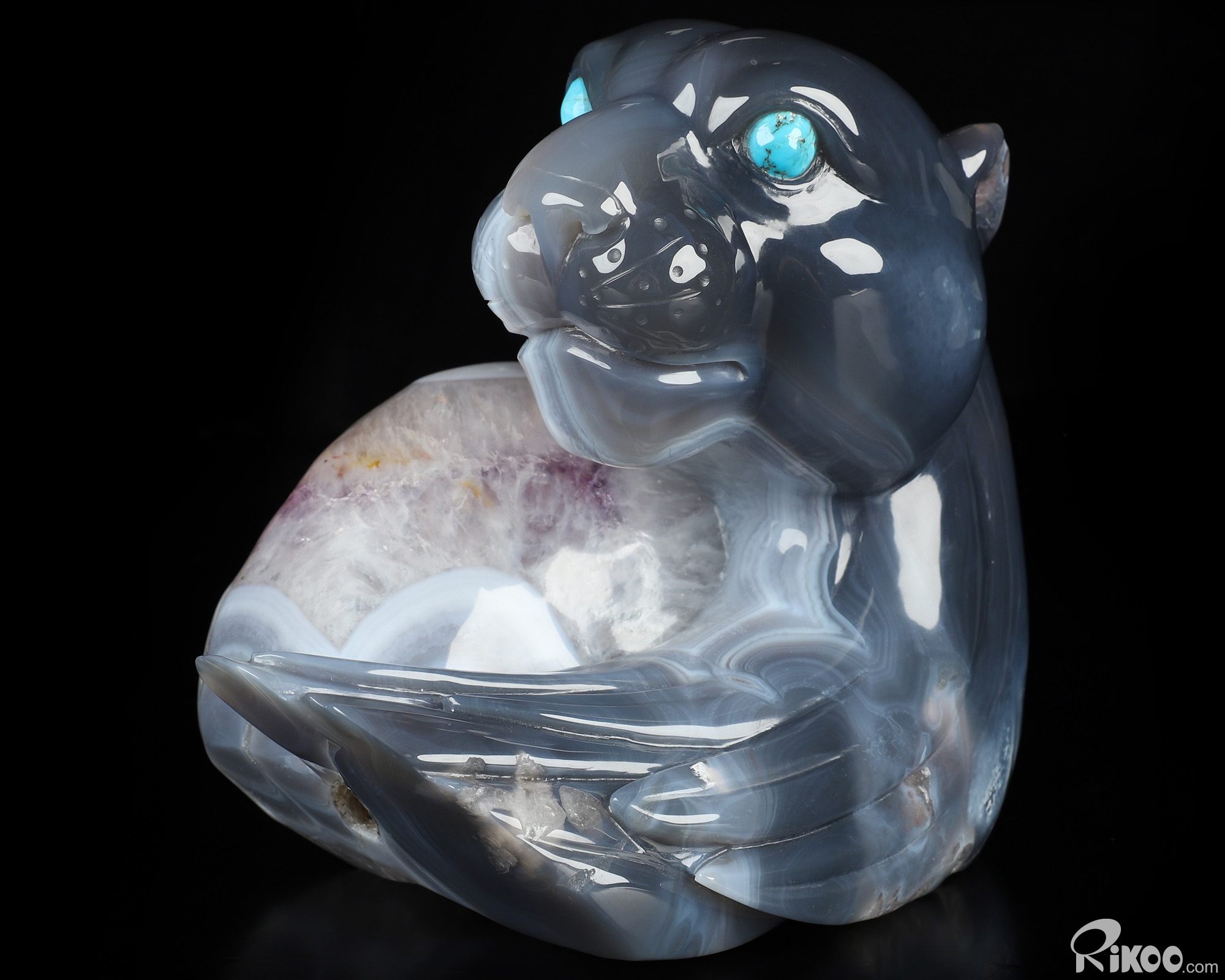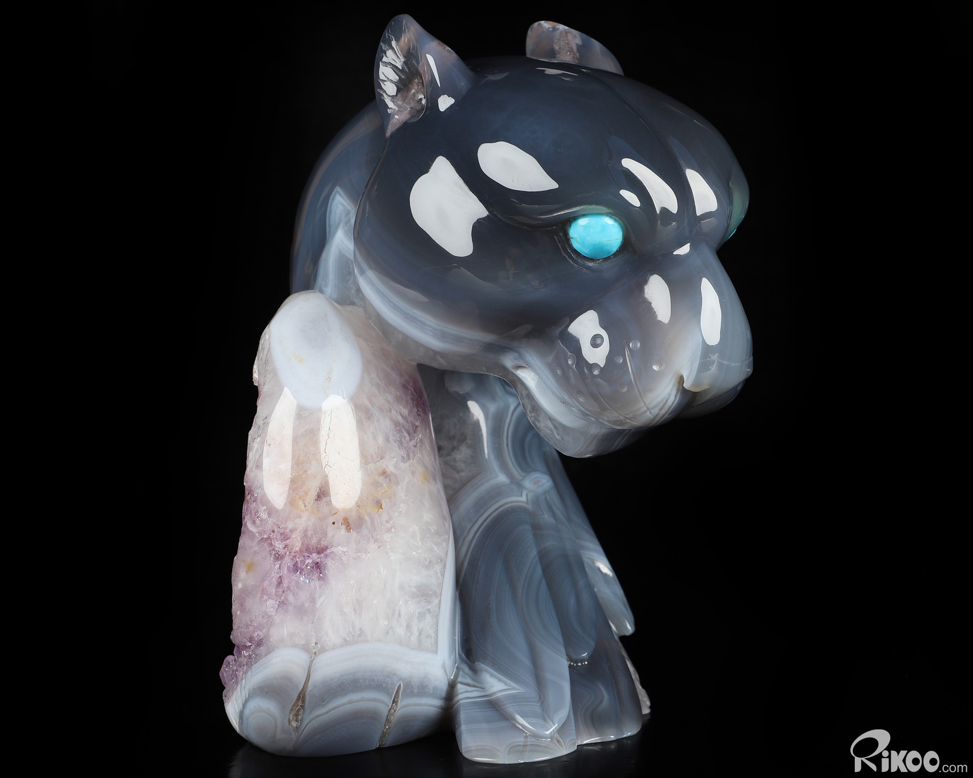 6.3" Agate Amethyst Geode Hand Carved Crystal Leopard Sculpture, Crystal Healing