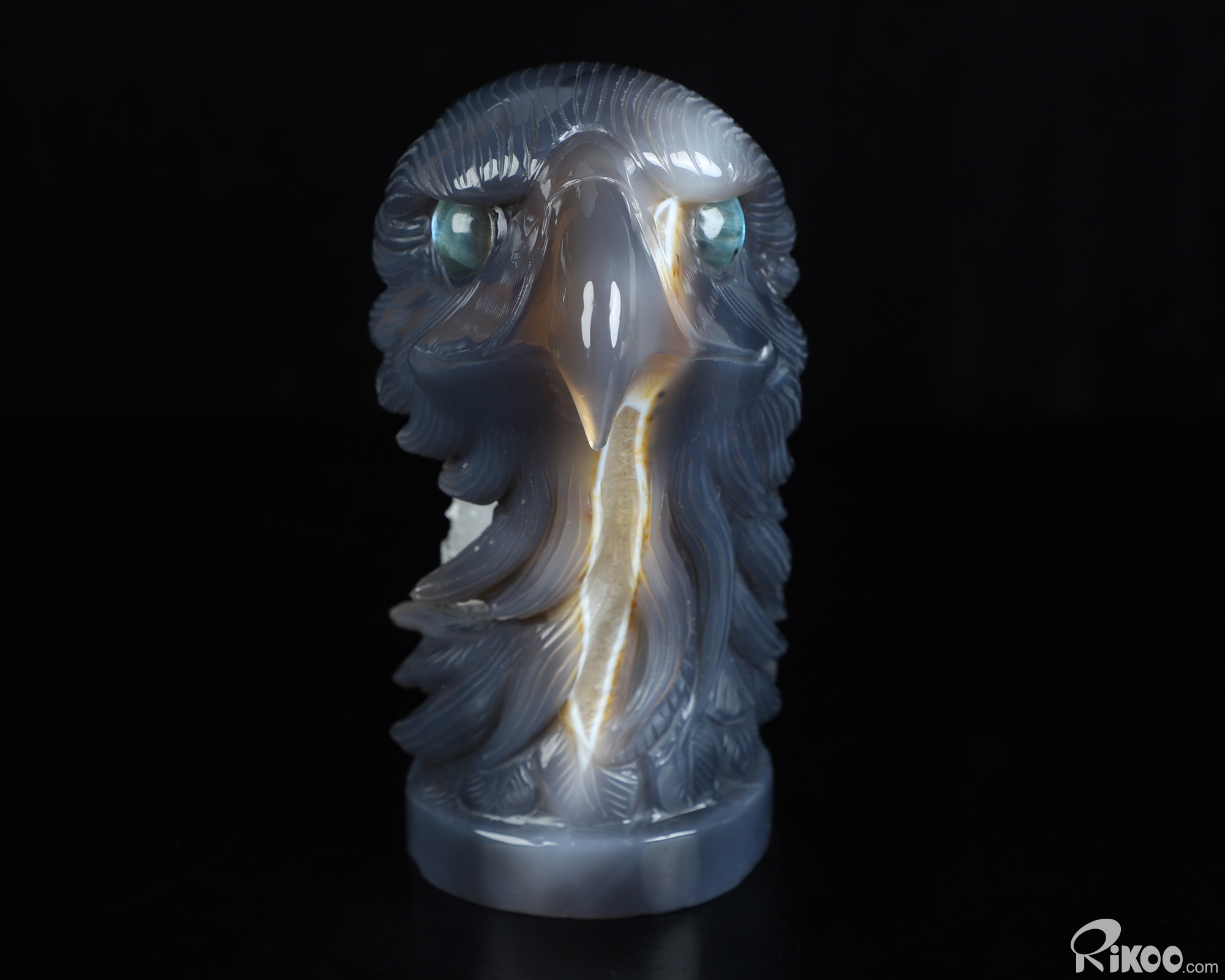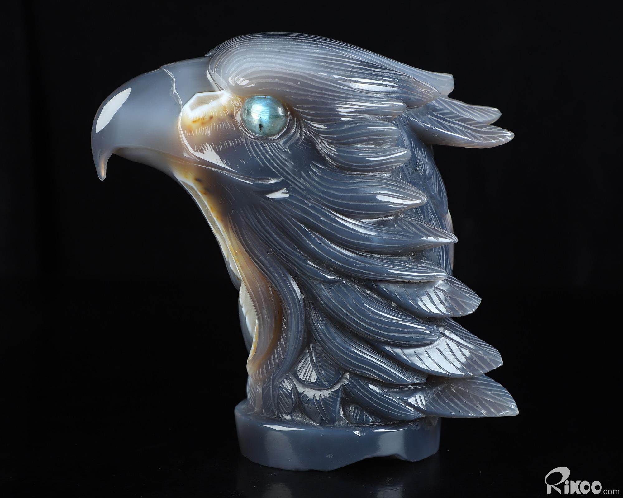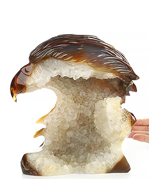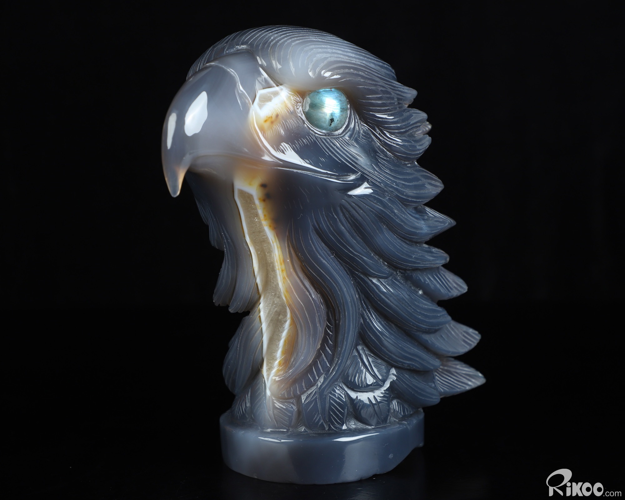 6.3" Agate Geode Hand Carved Crystal Eagle and Labradorite Eyes Sculpture, Crystal Healing