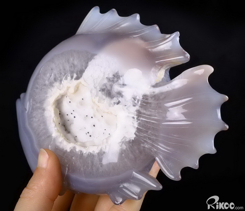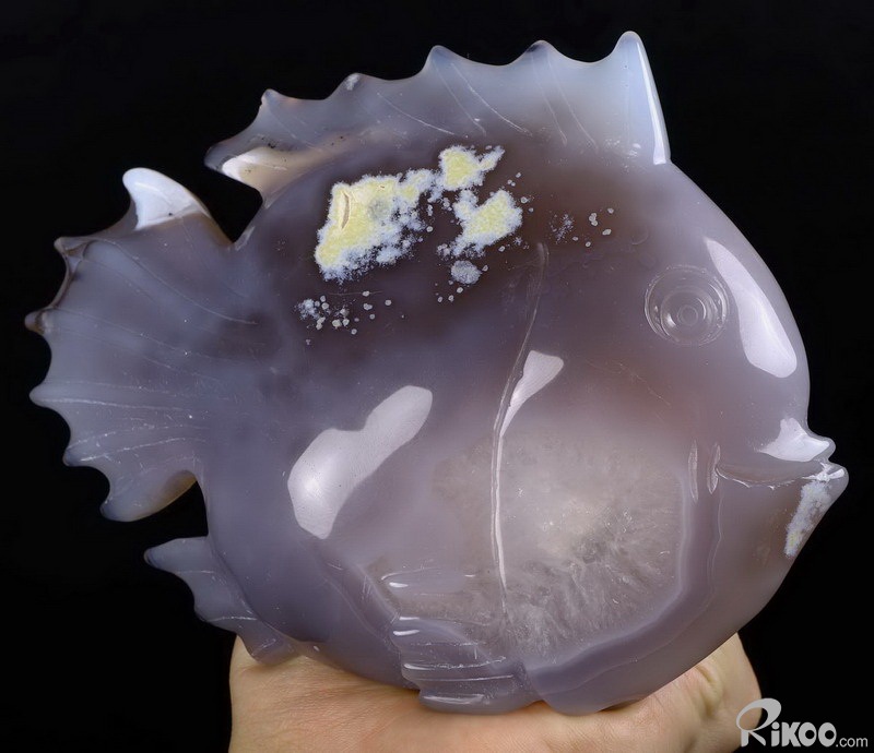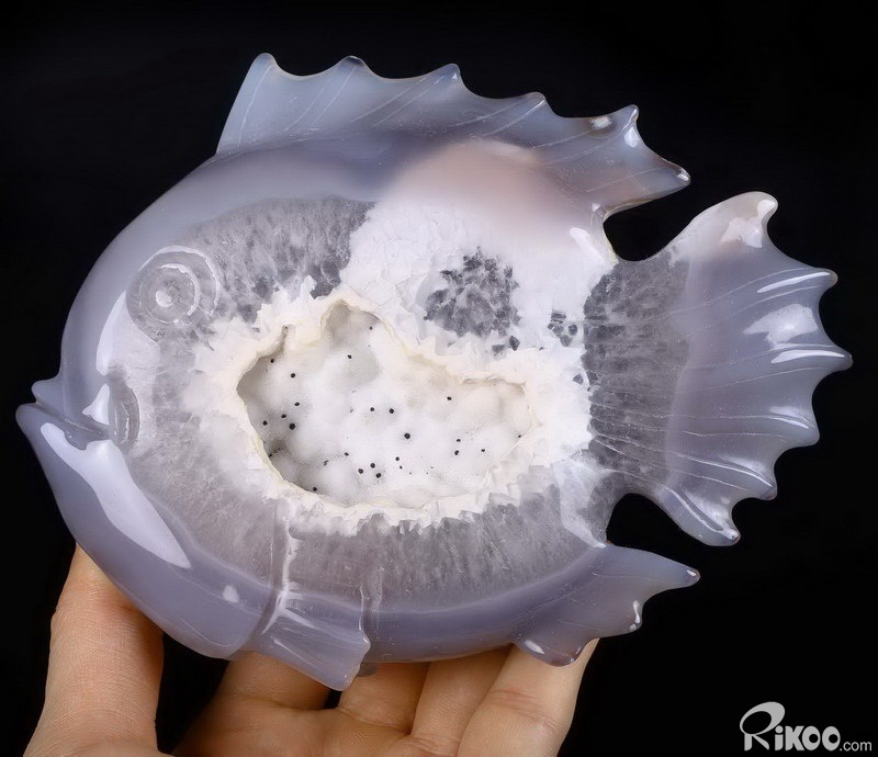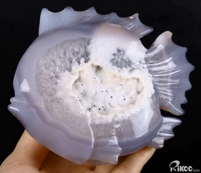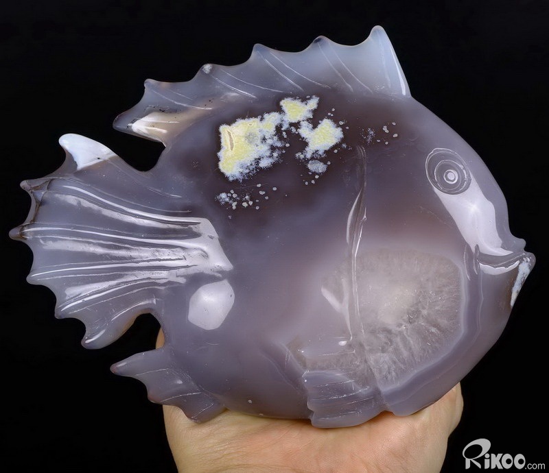 6.3" Agate Geode Hand Carved Crystal Fish Sculpture, Crystal Healing