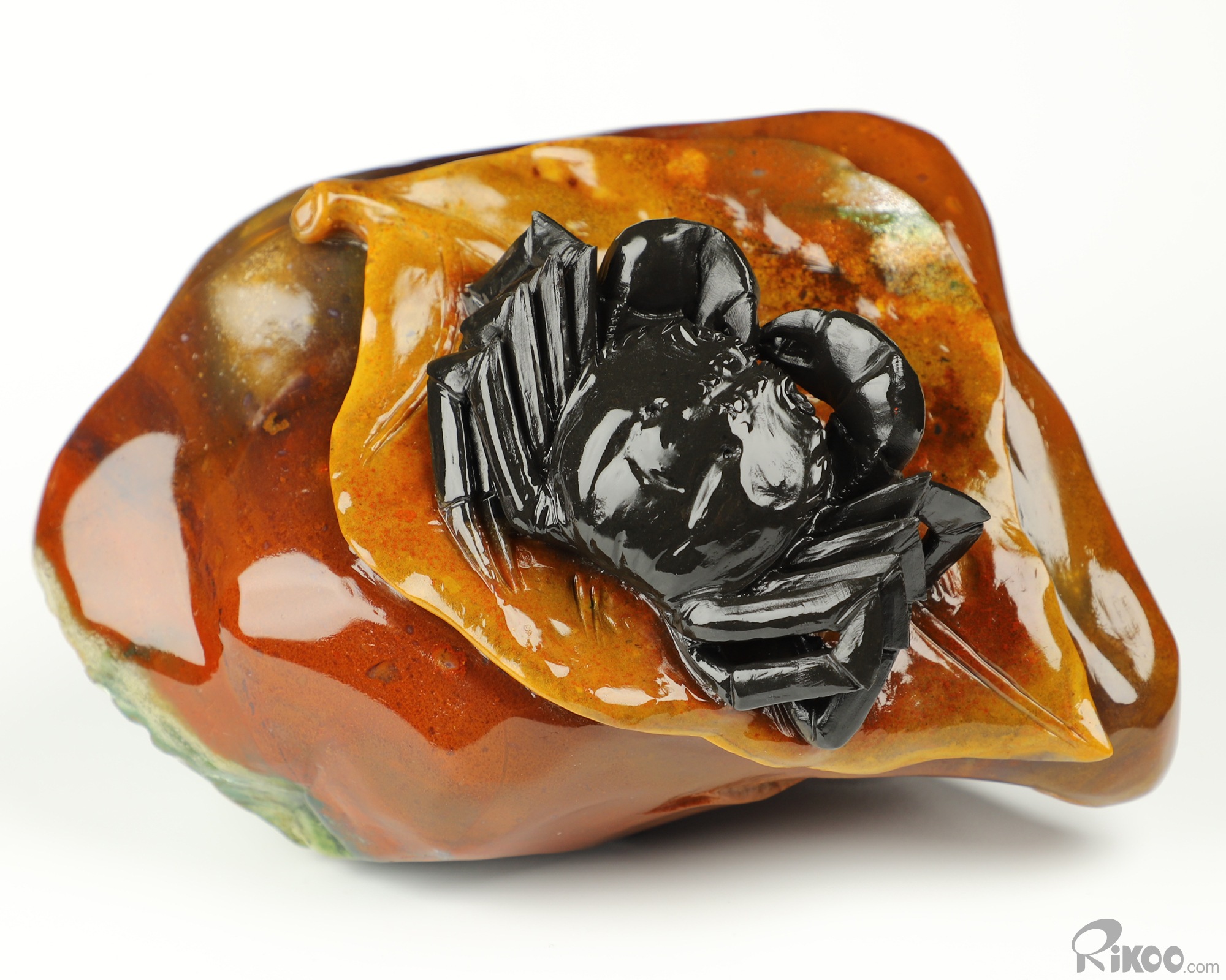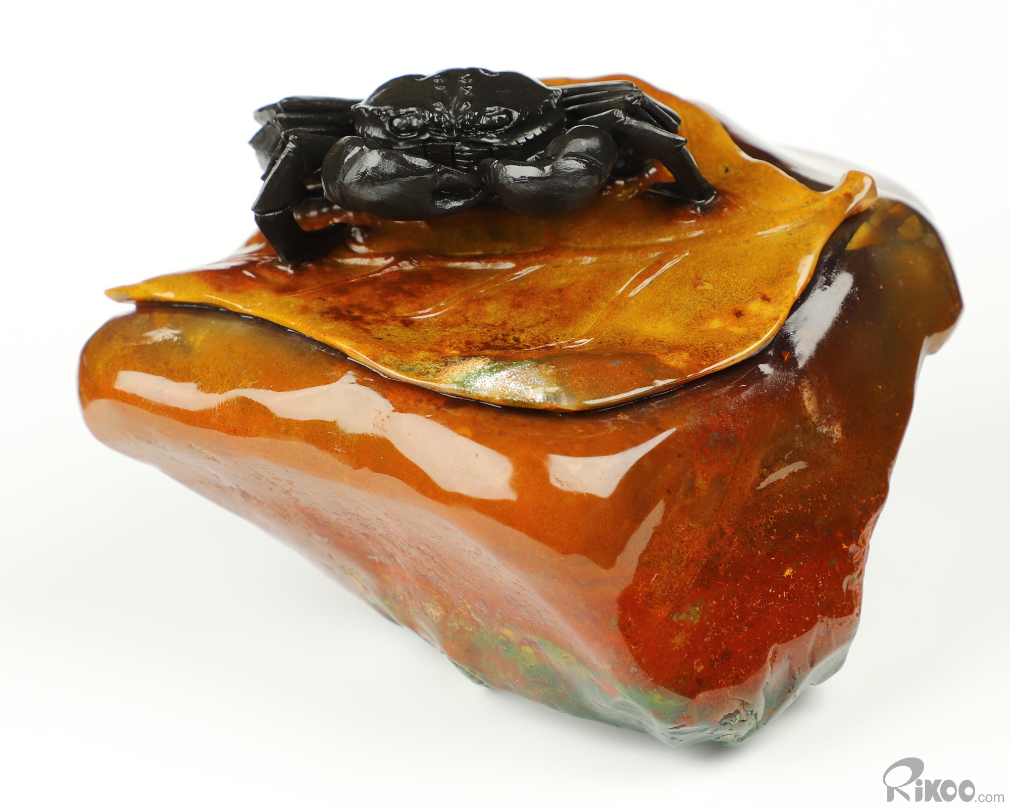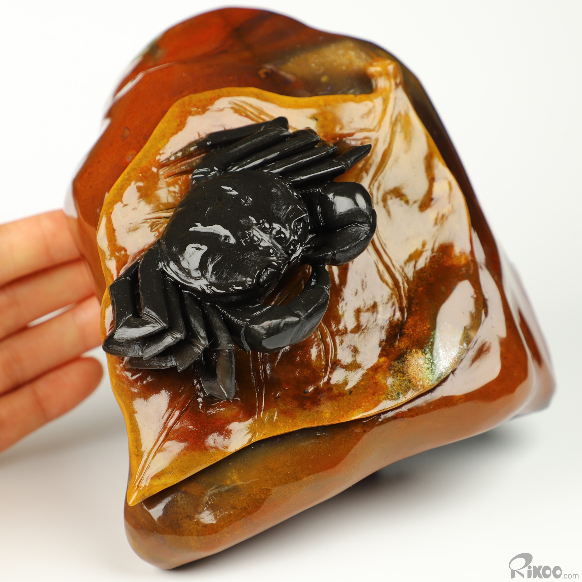 6.3" Indian Agate Hand Carved Crystal Crab Sculpture, Crystal Healing