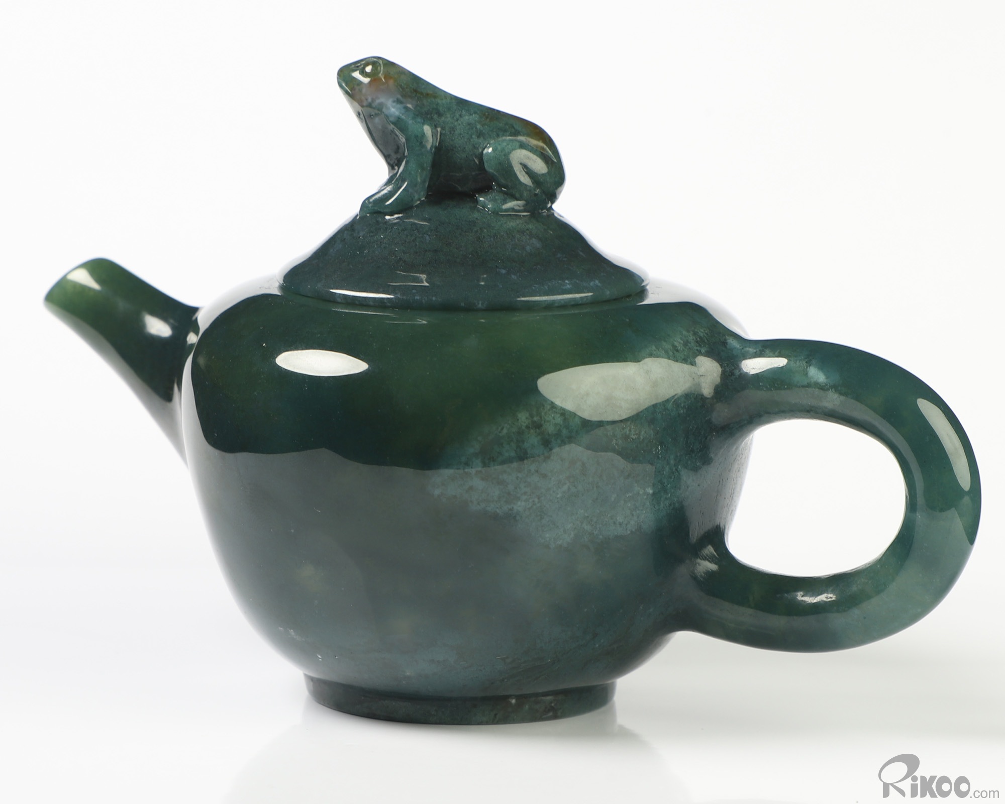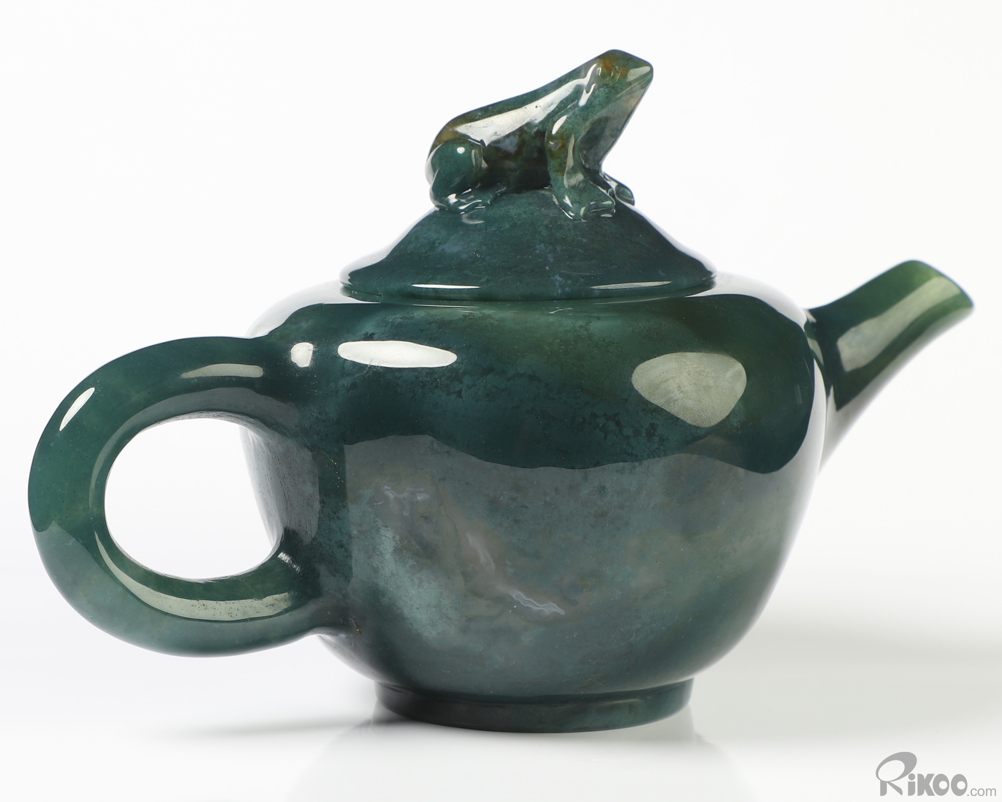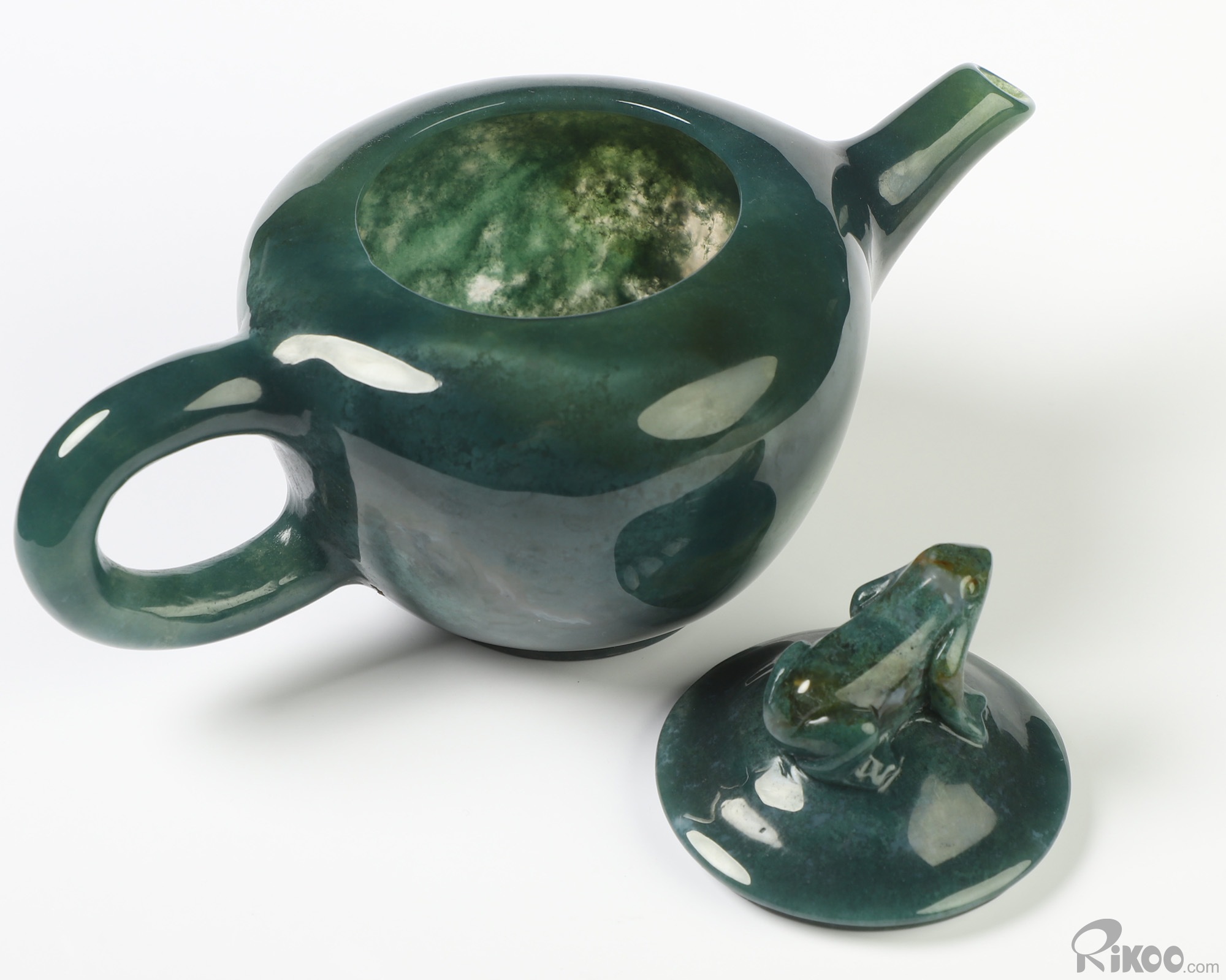 6.3" Indian Agate Hand Carved Crystal Pot and Frog, Crystal Healing