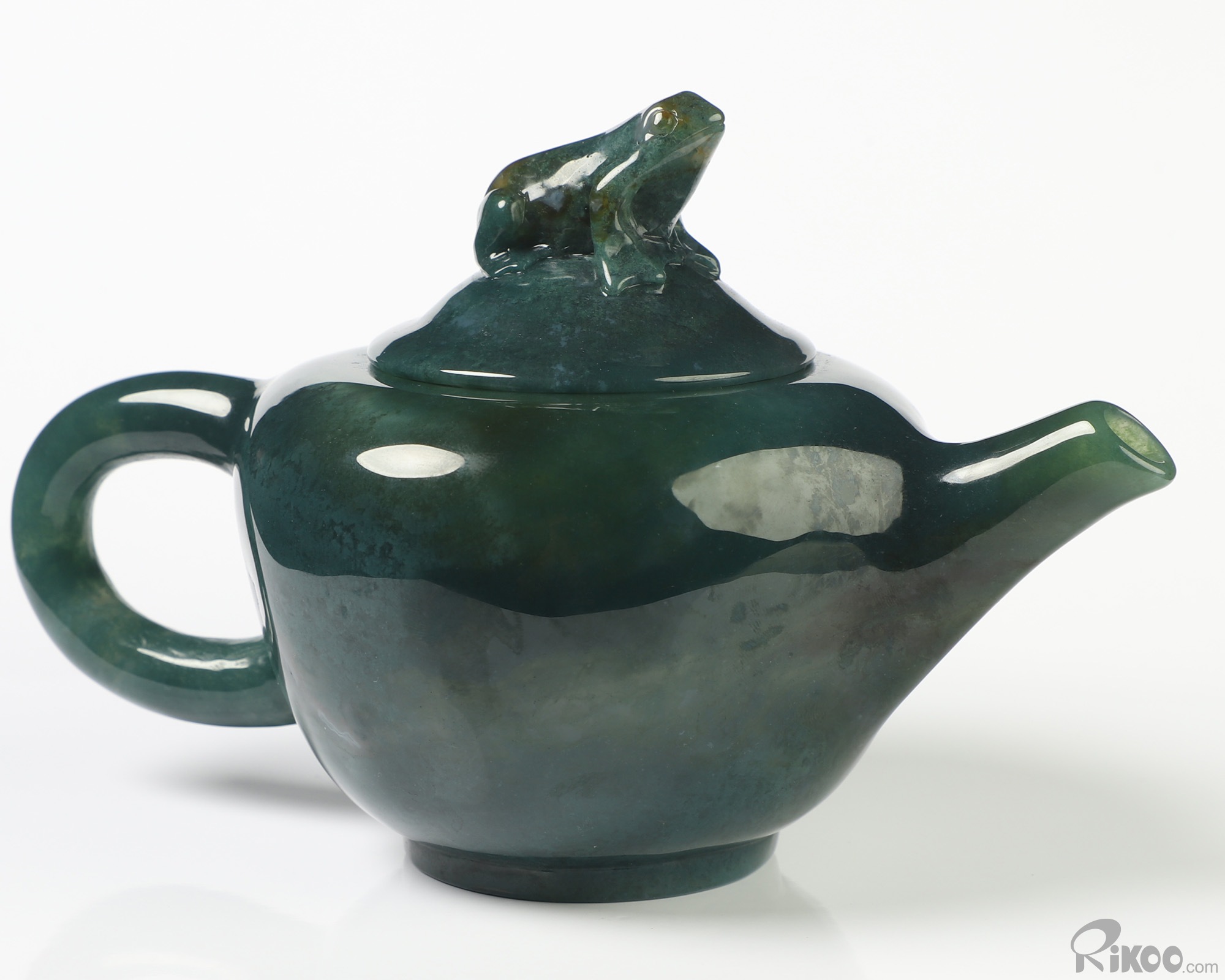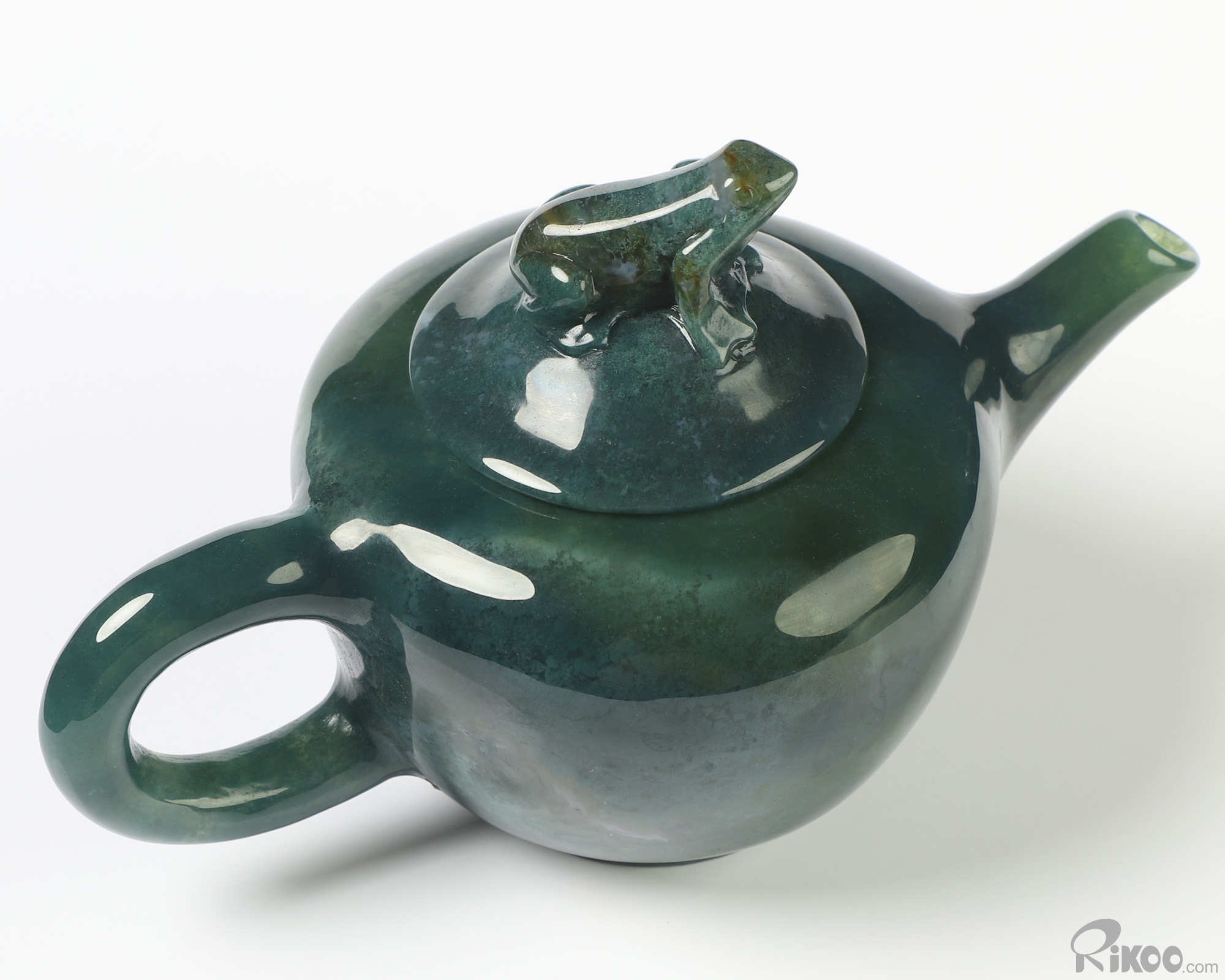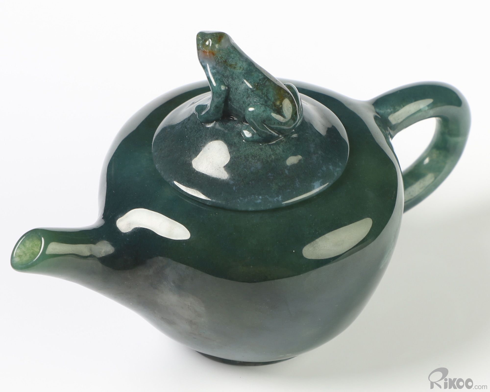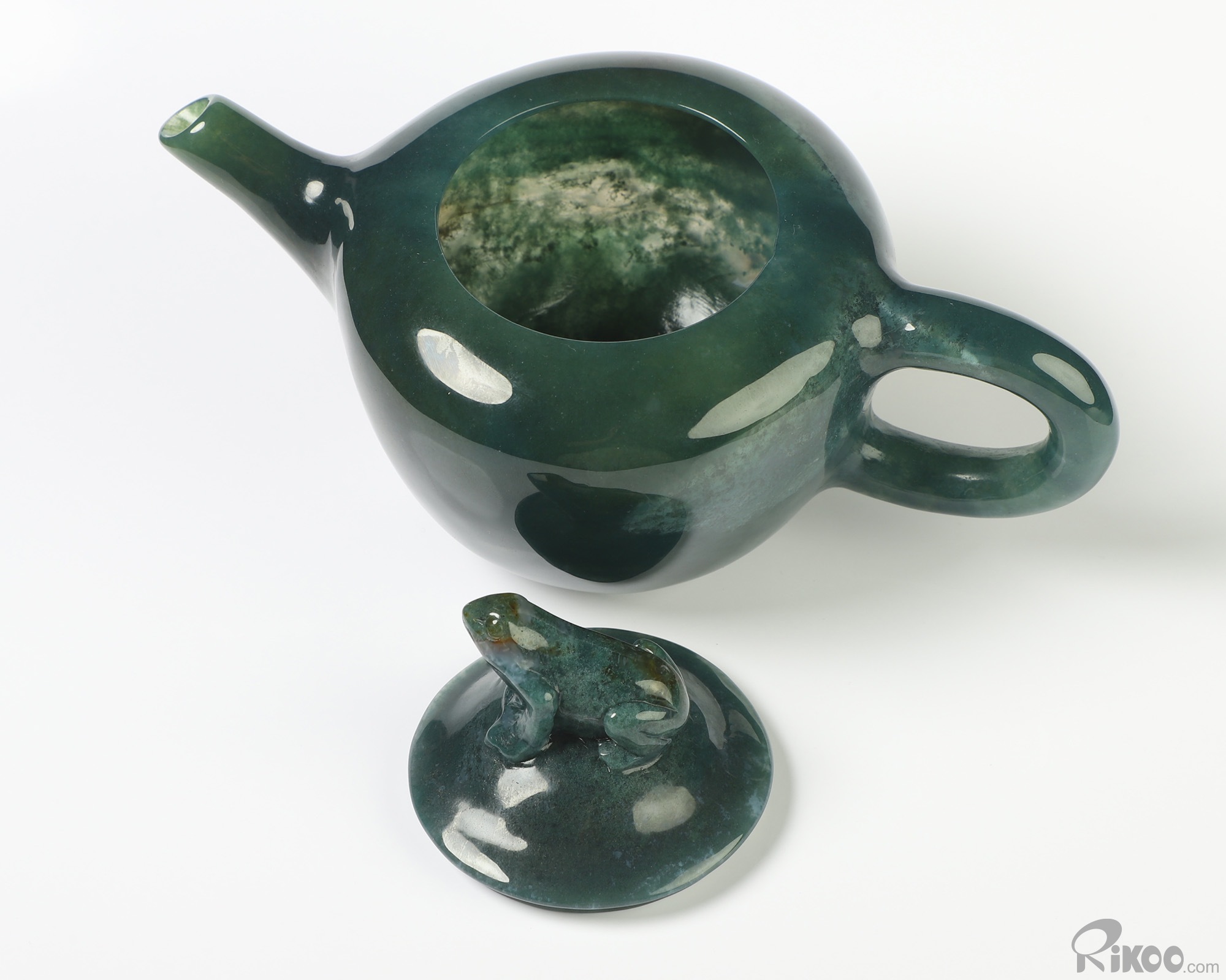 6.3" Indian Agate Hand Carved Crystal Pot and Frog, Crystal Healing
