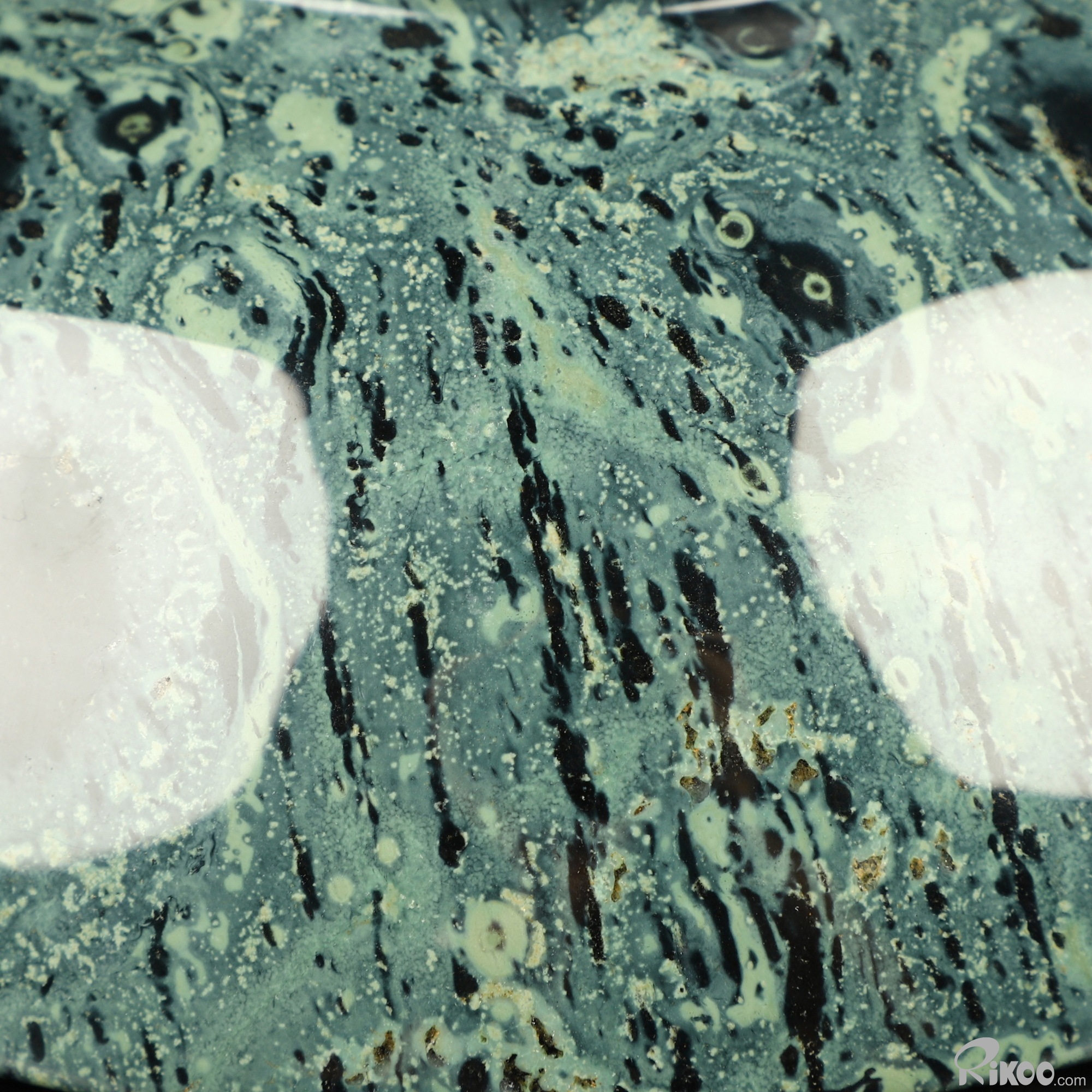 Also known as Brecciated Army Jasper, Camo Stone Kambaba Jasper is an exotic looking jasper from Africa, Its pattern includes speckles and concentric rings. It contains a jumbled jungle of forest green, mint green, black and brown. It is said to mystically soothe the nerves and state of mind. As with other jaspers, traditional lore says that it is good for grounding and protection. It is purported to be beneficial for plant growth and health, particularly in arid environments or where the soil is poor. Crystal healing lore says that Kambaba Jasper helps dietary stabilization, assimilation of vitamins and minerals, and cleansing the body of toxins.
