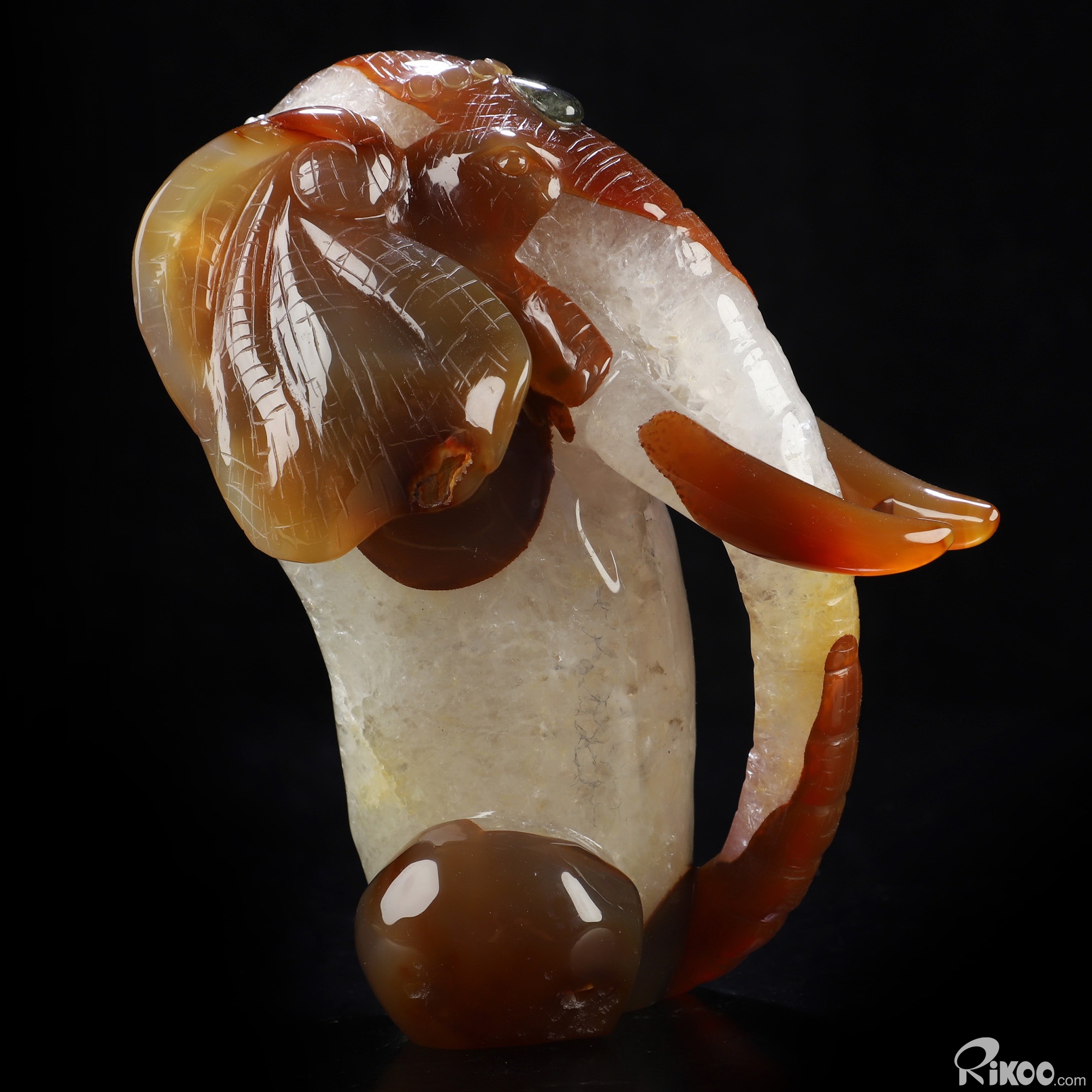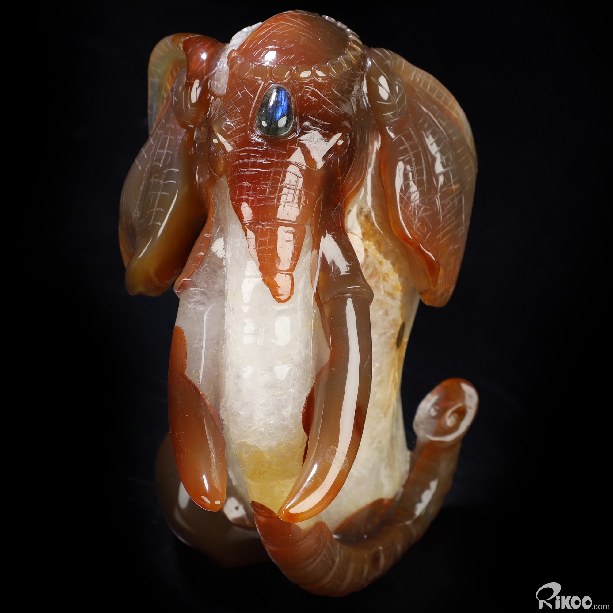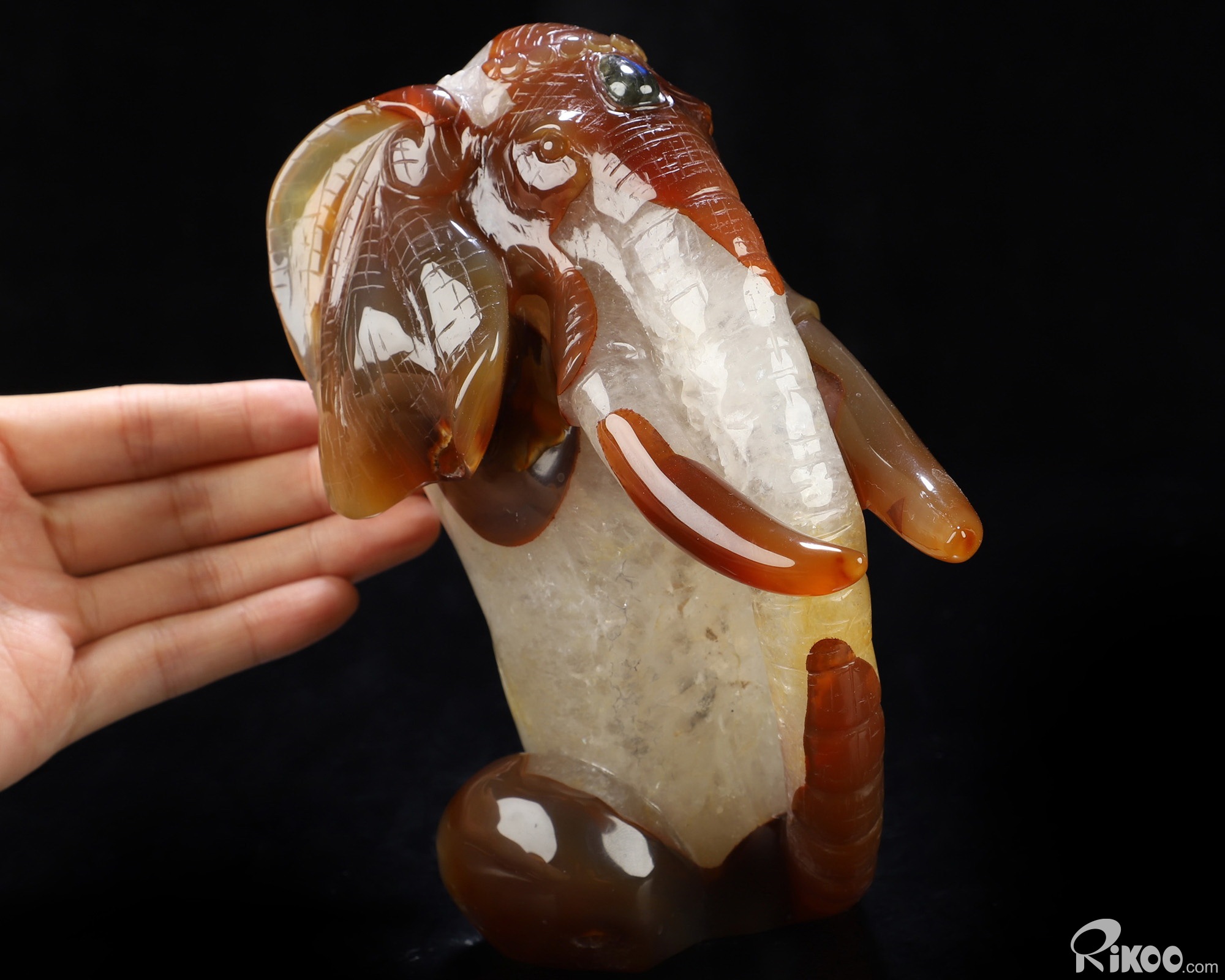 6.3" Premium Brazilian Agate Hand Carved Crystal Elephant Sculpture, Crystal Healing