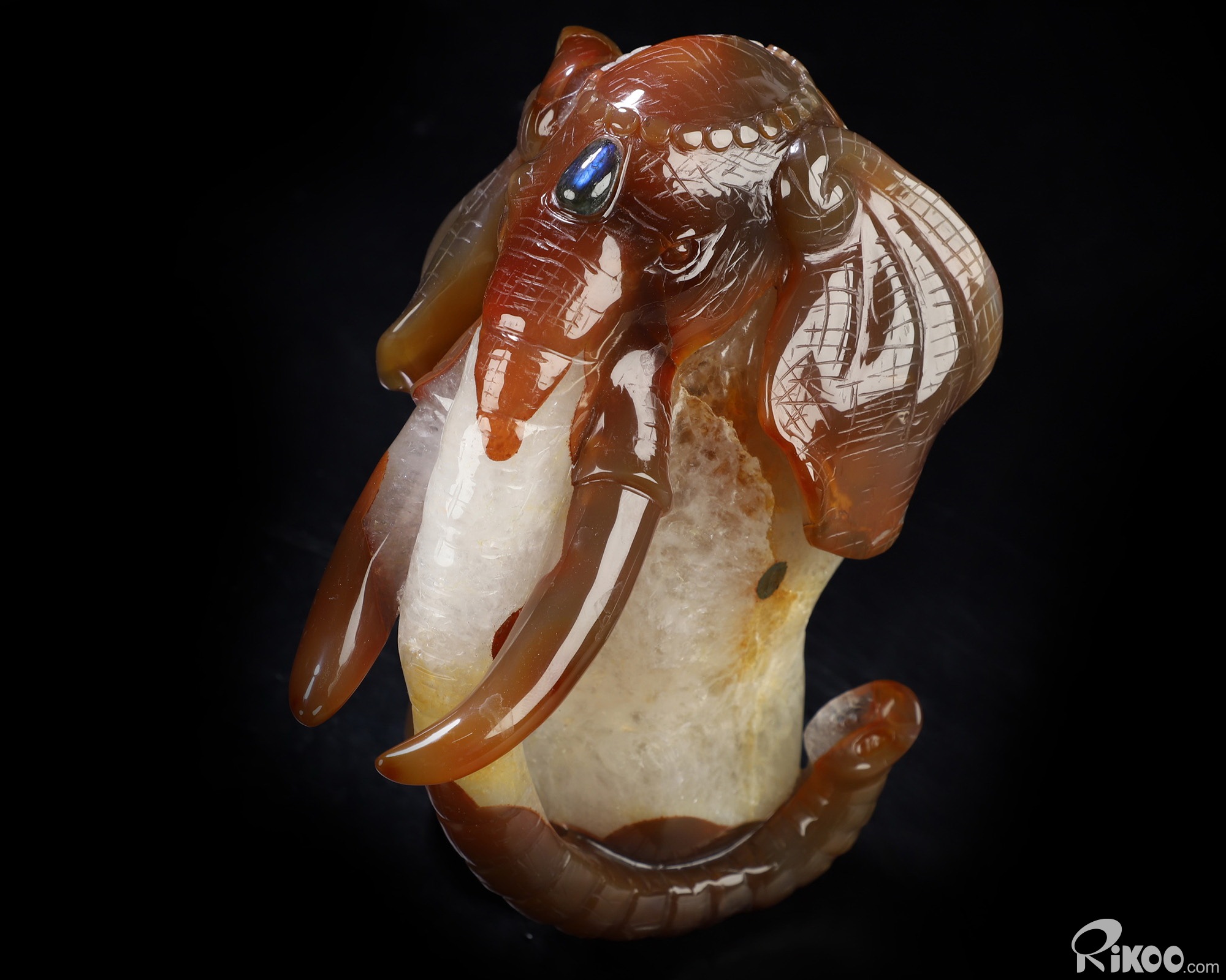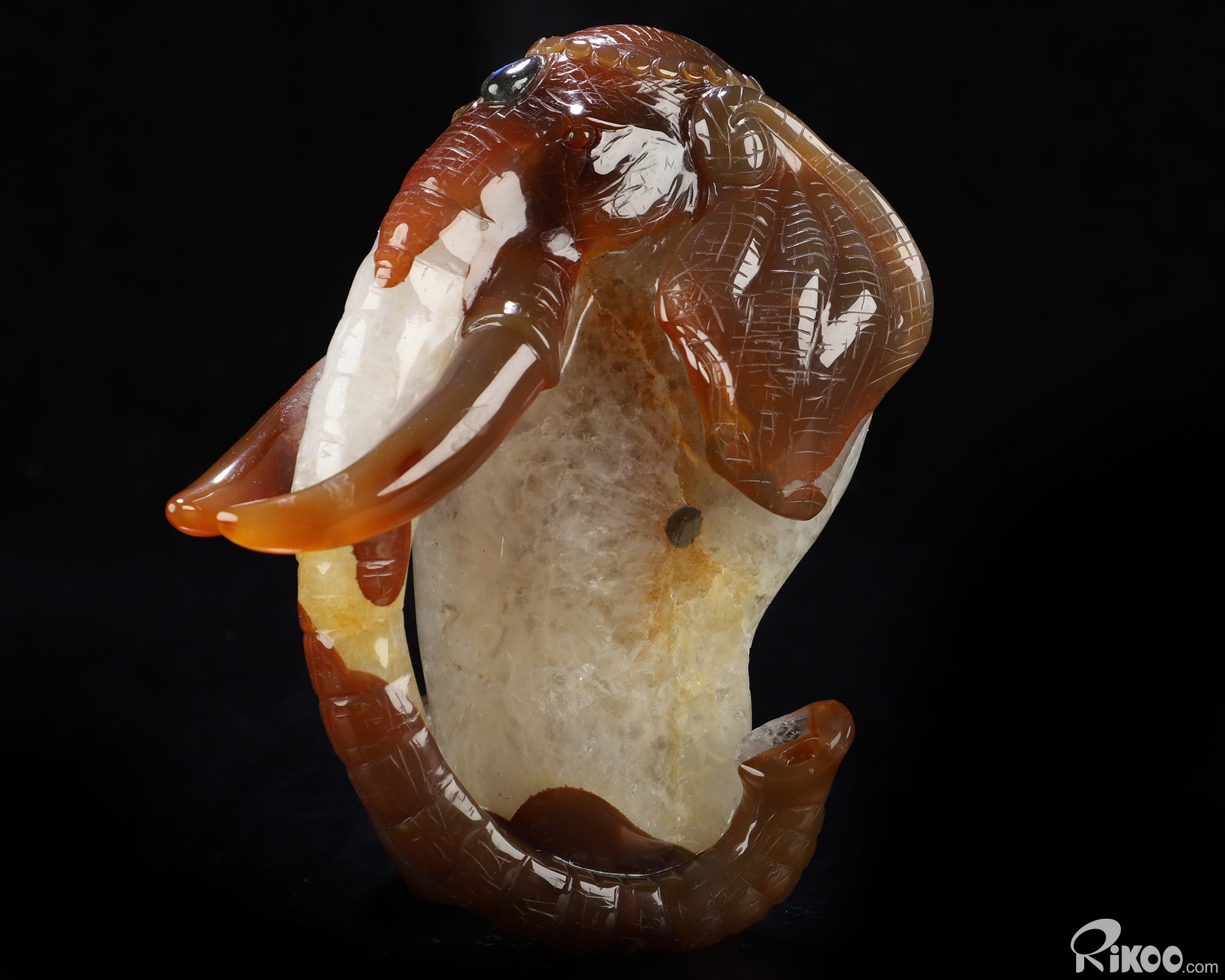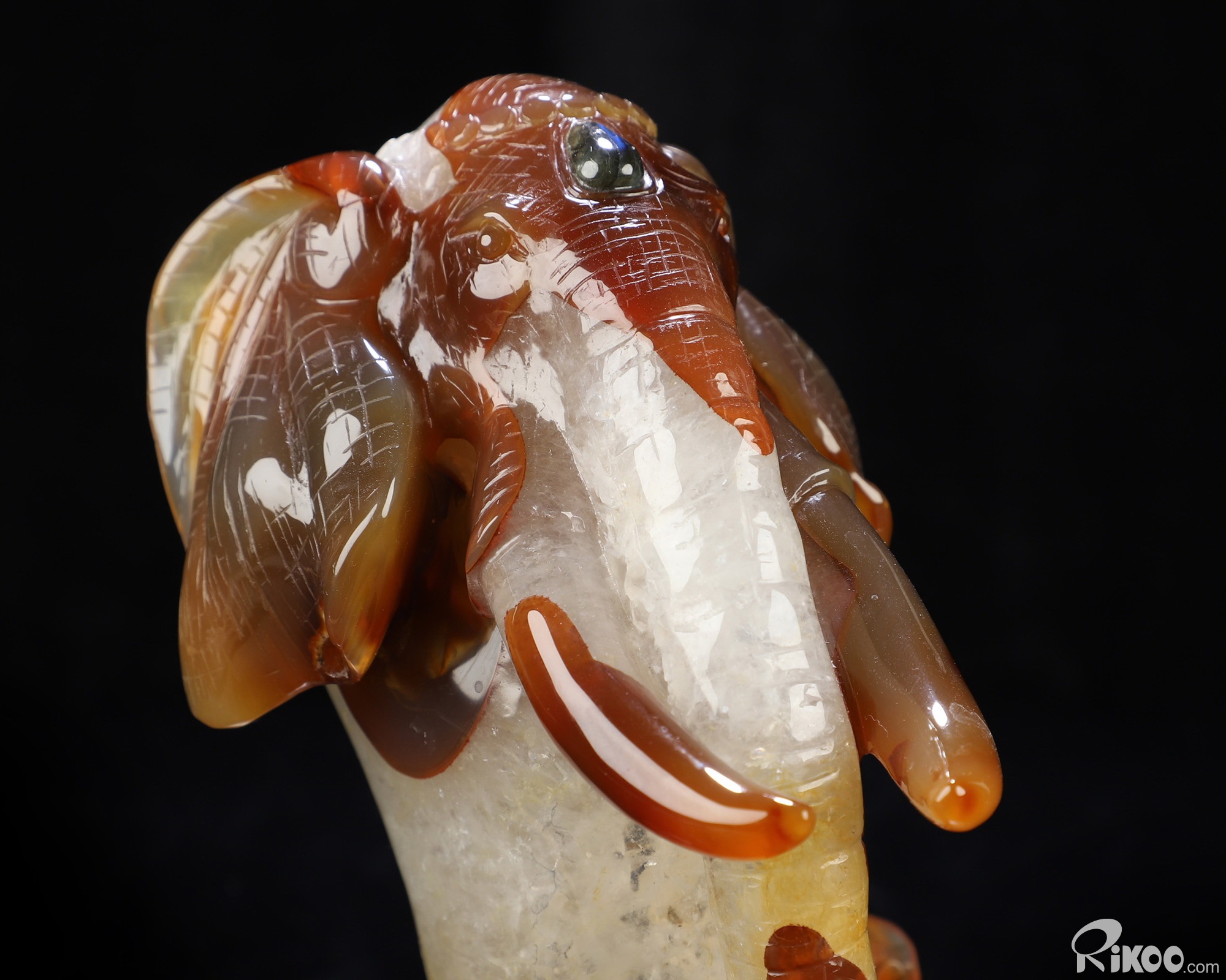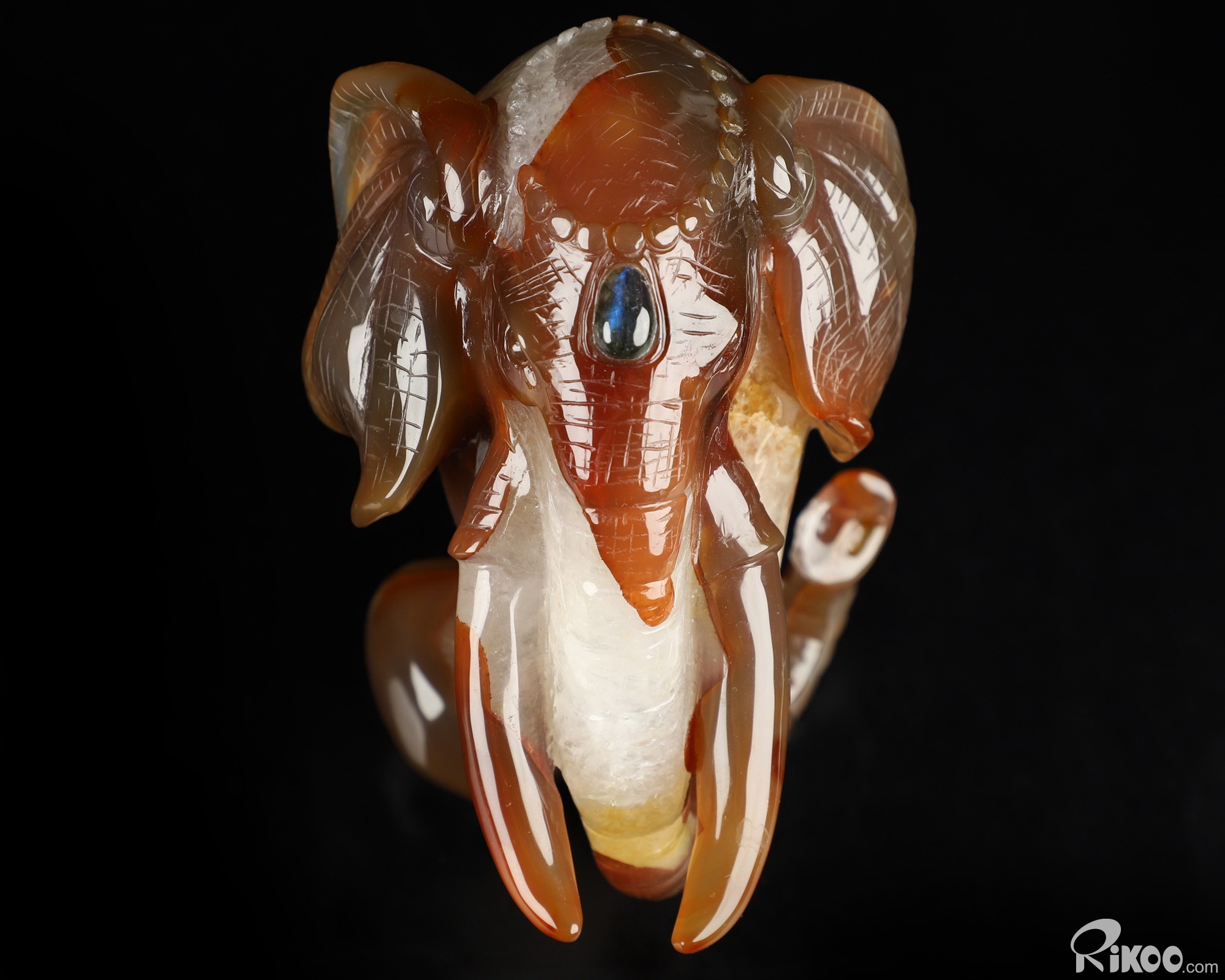 6.3" Premium Brazilian Agate Hand Carved Crystal Elephant Sculpture, Crystal Healing