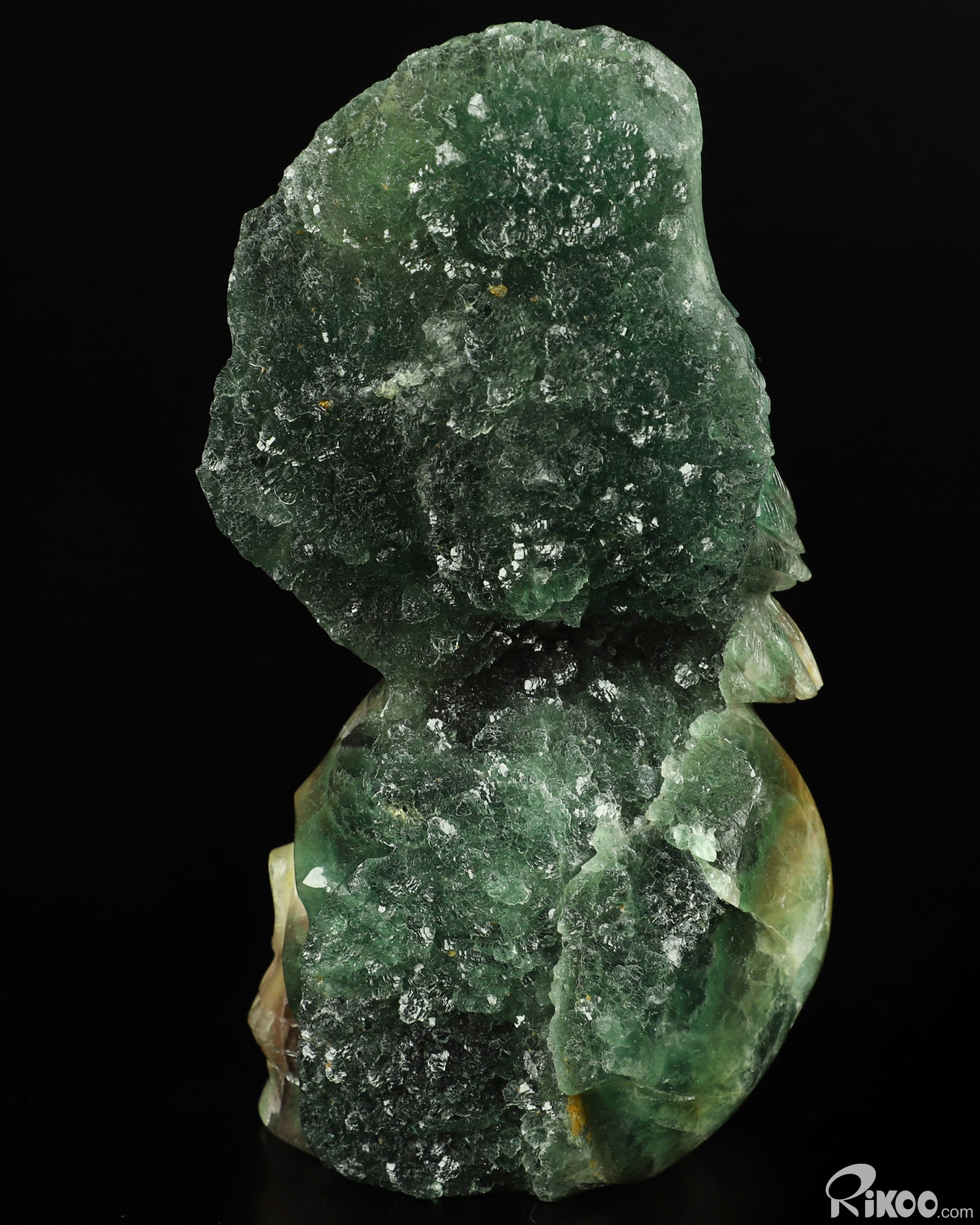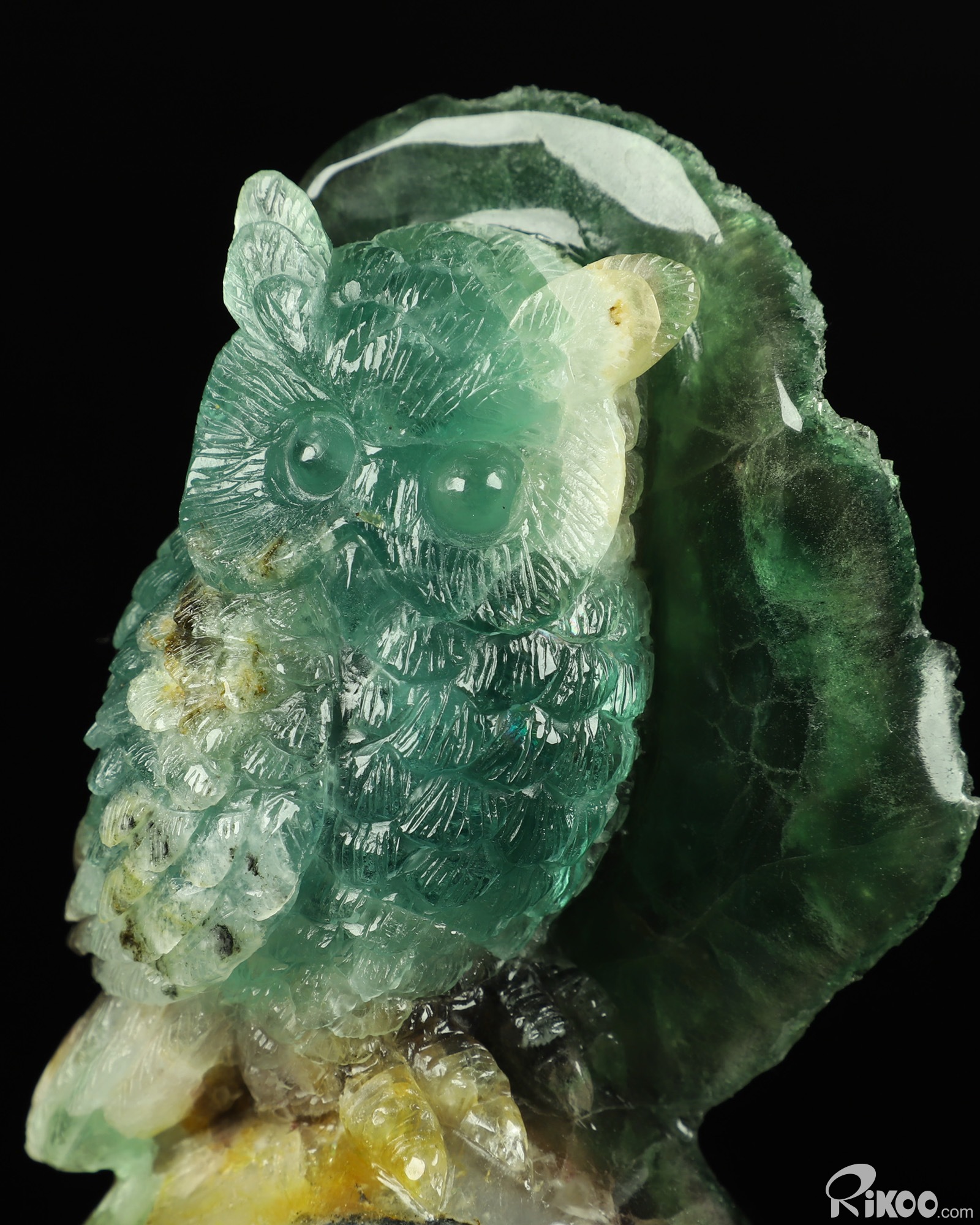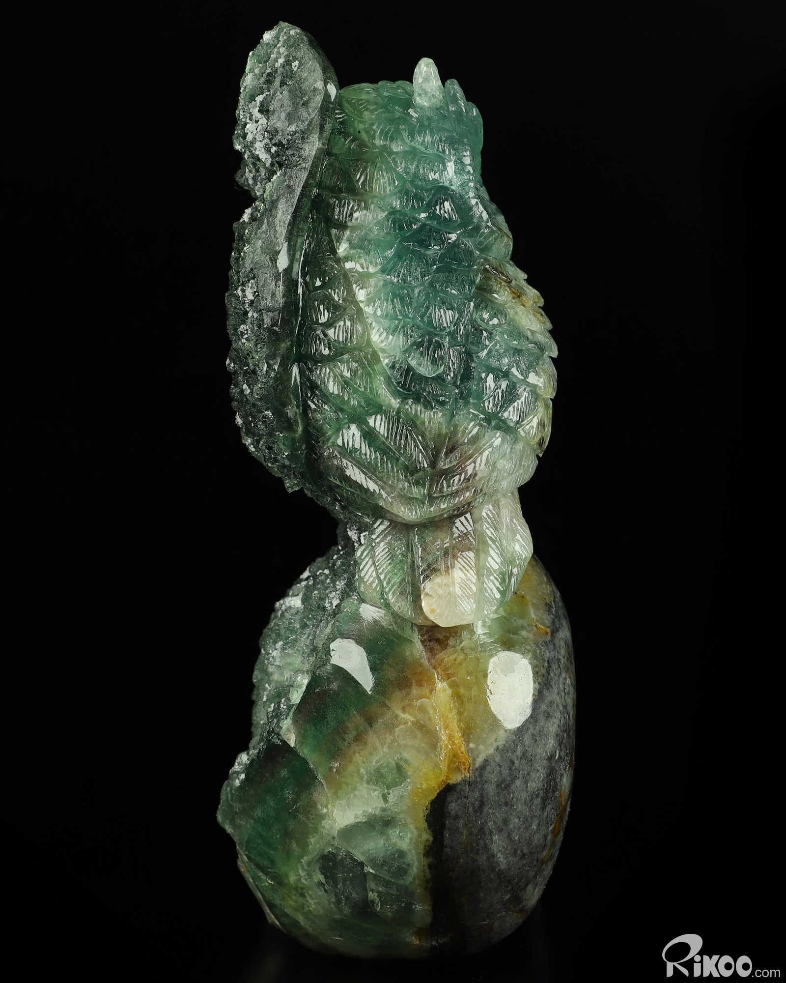 6.4" Fluorite Carved Crystal Owl & Skull Sculpture, Realistic, Crystal Healing