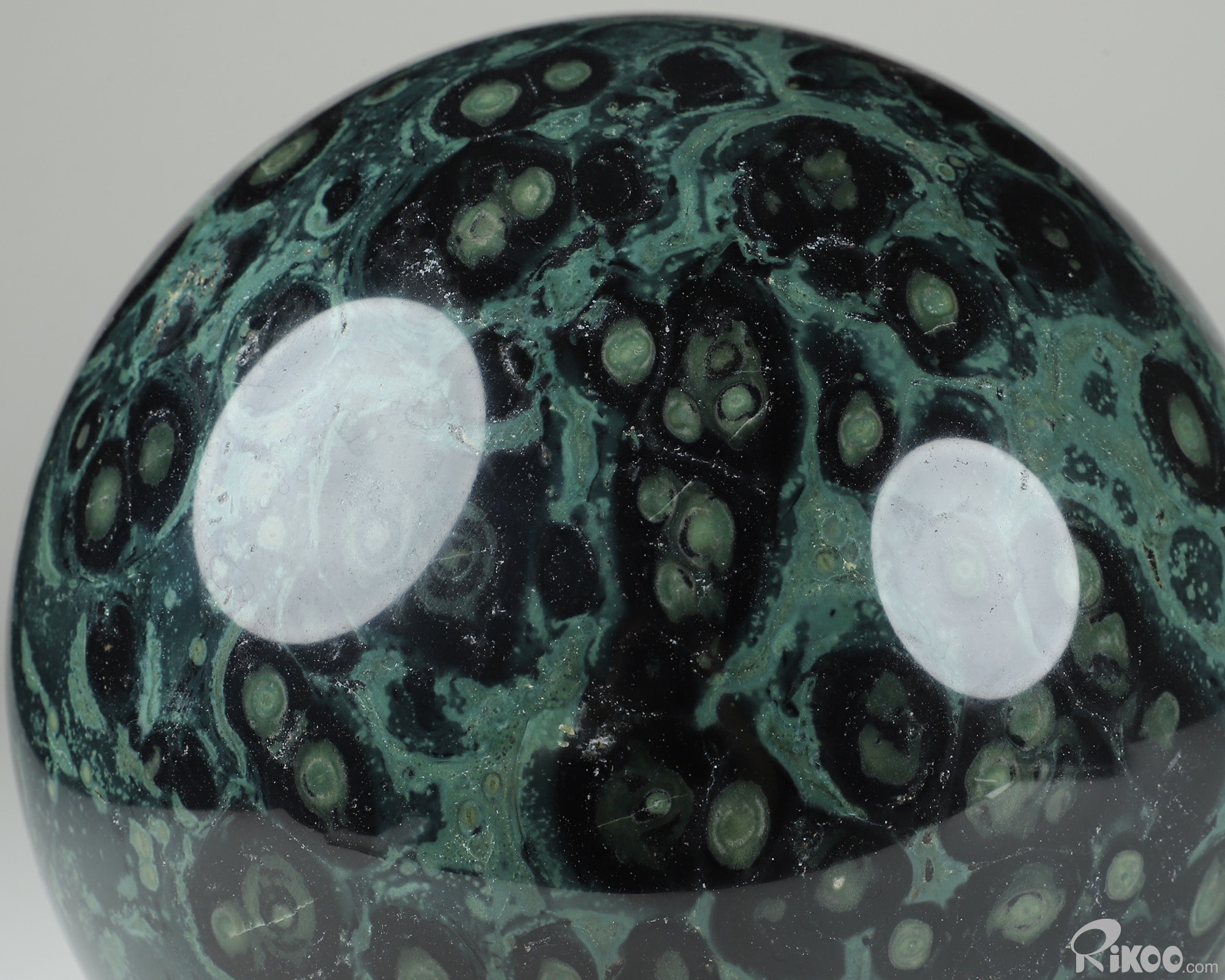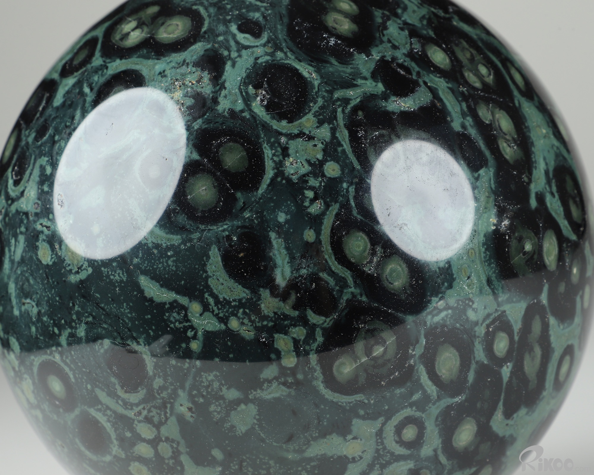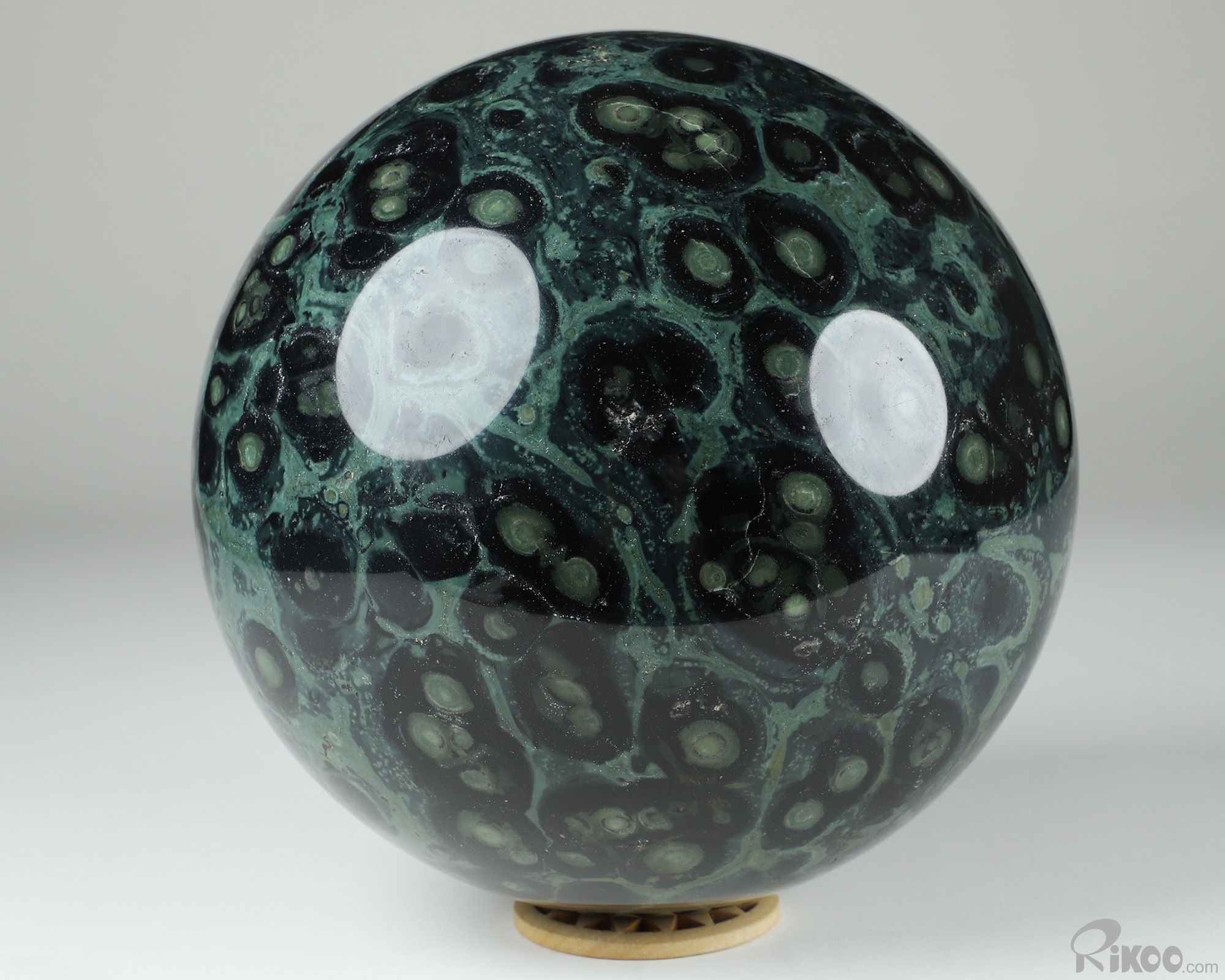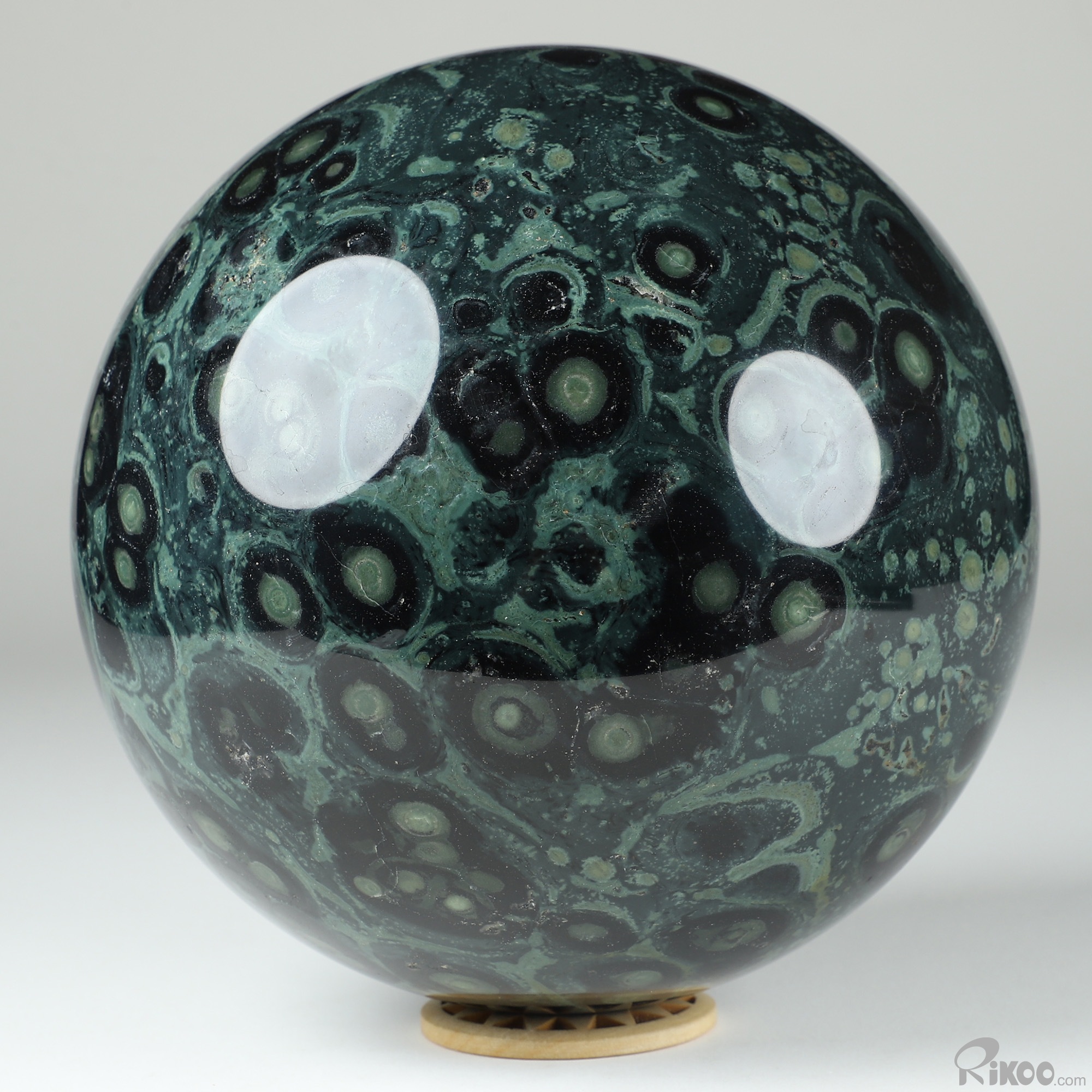 You are looking at a Kambaba Jasper Ball. The Ball is 6.4 inches long from front to back.
