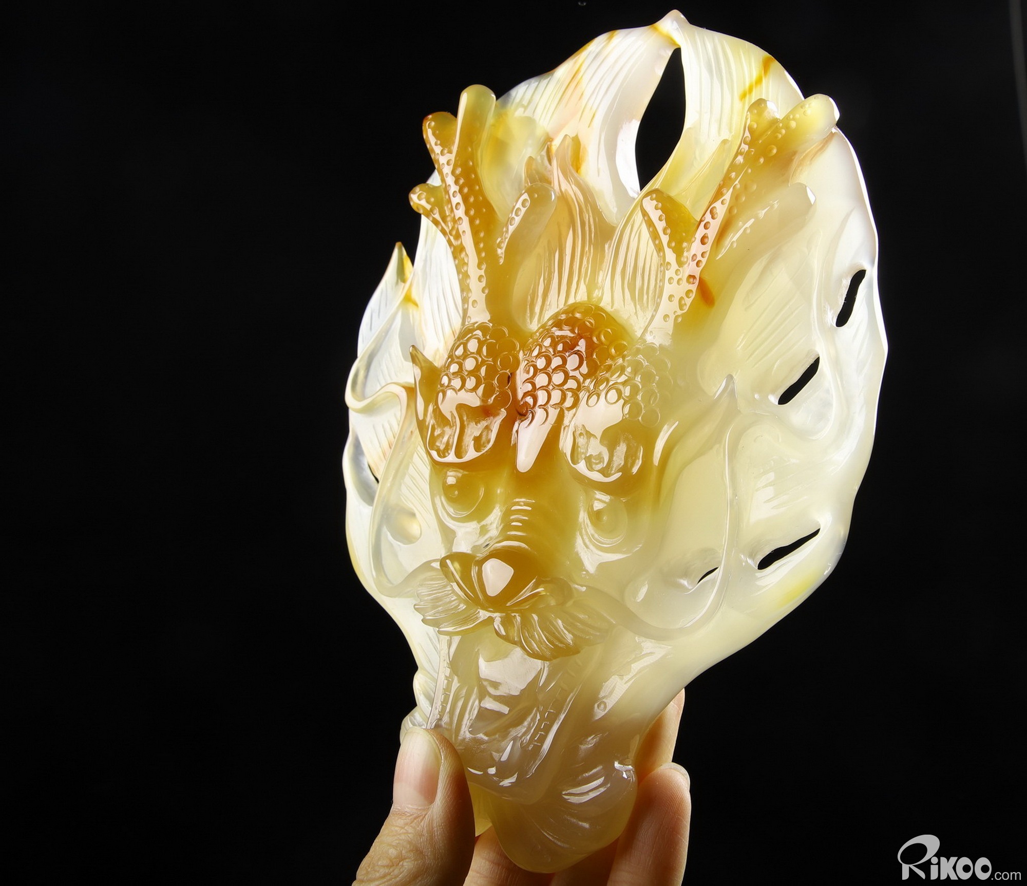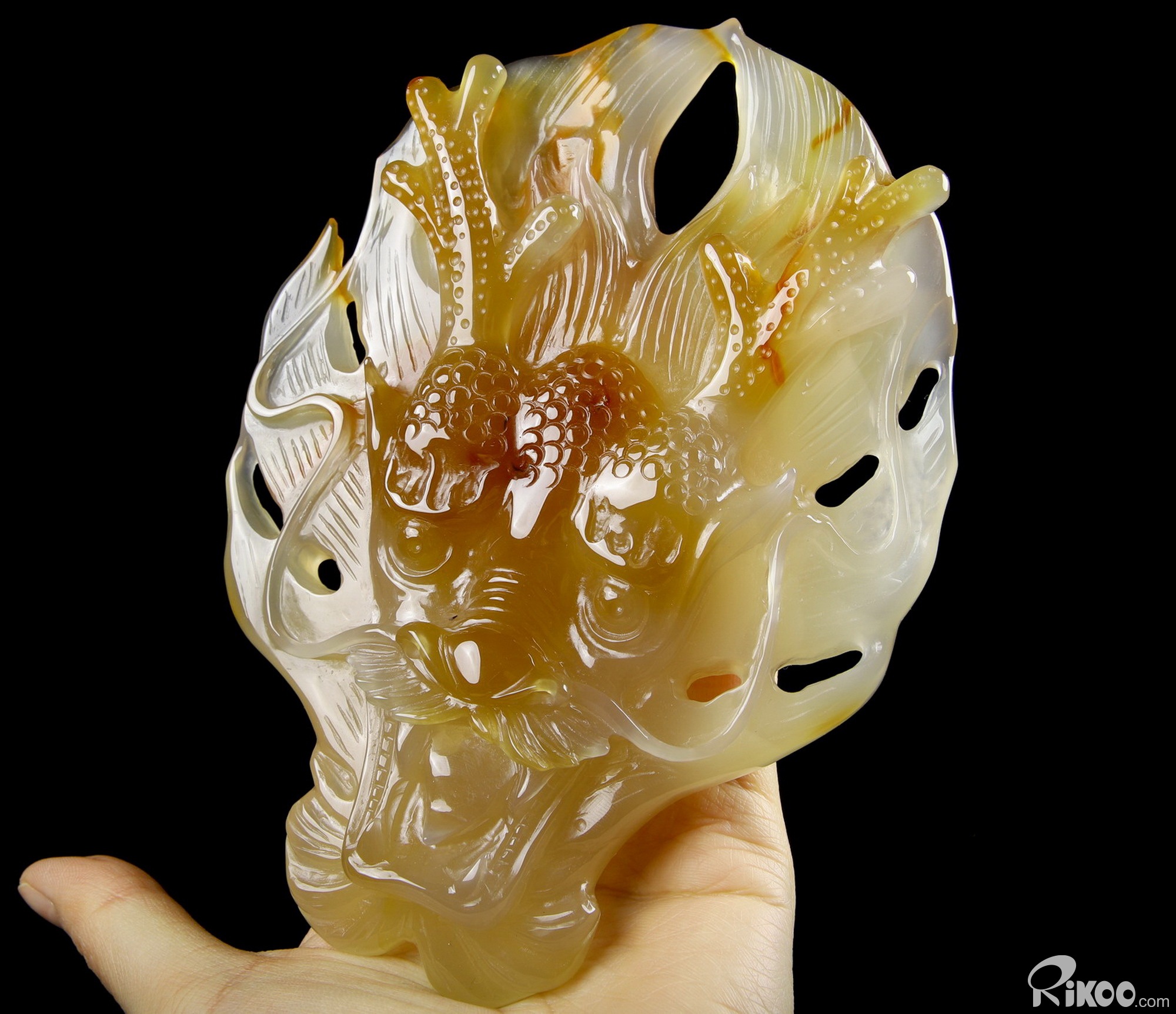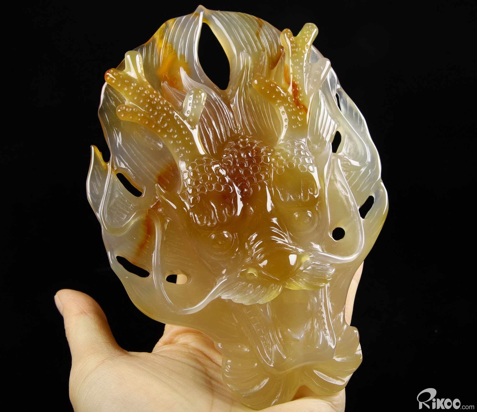 Huge 6.5" Agate Carved Crystal Dragon Sculpture, Crystal Healing