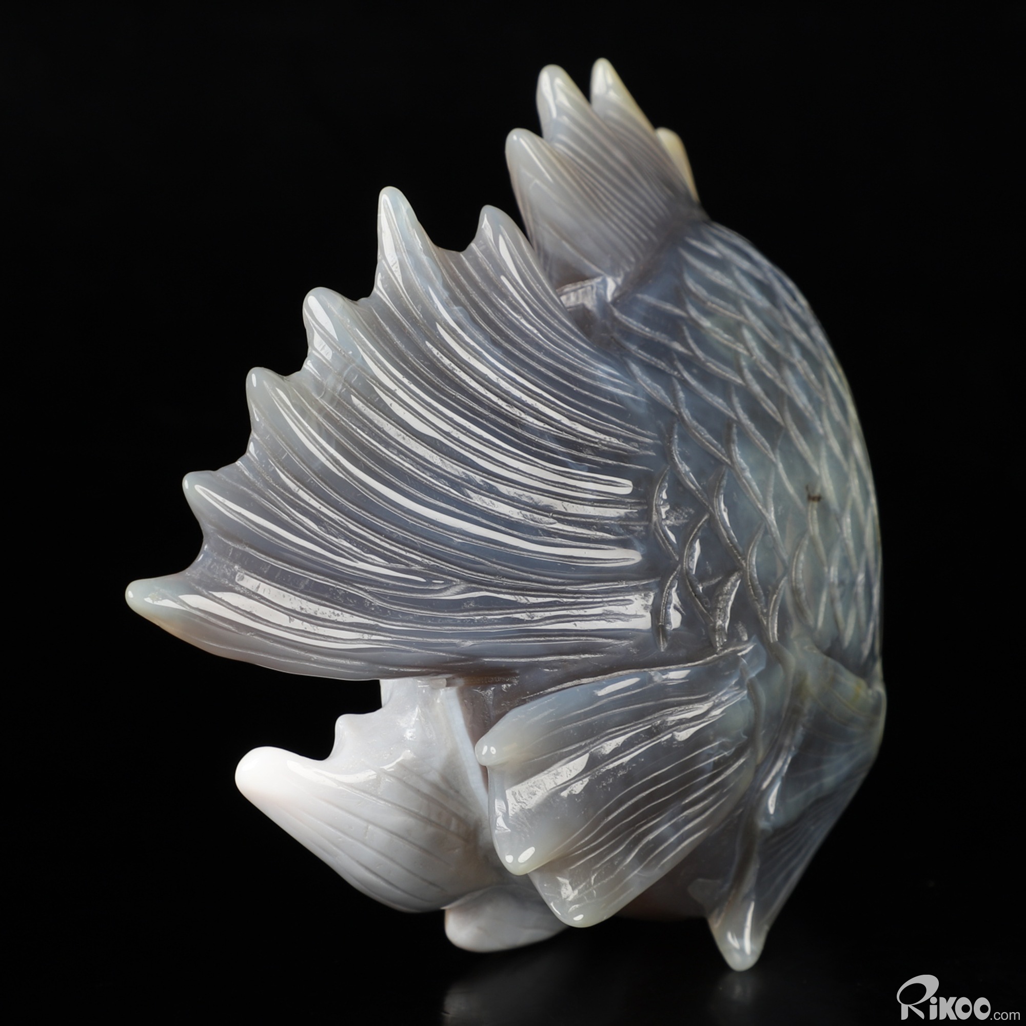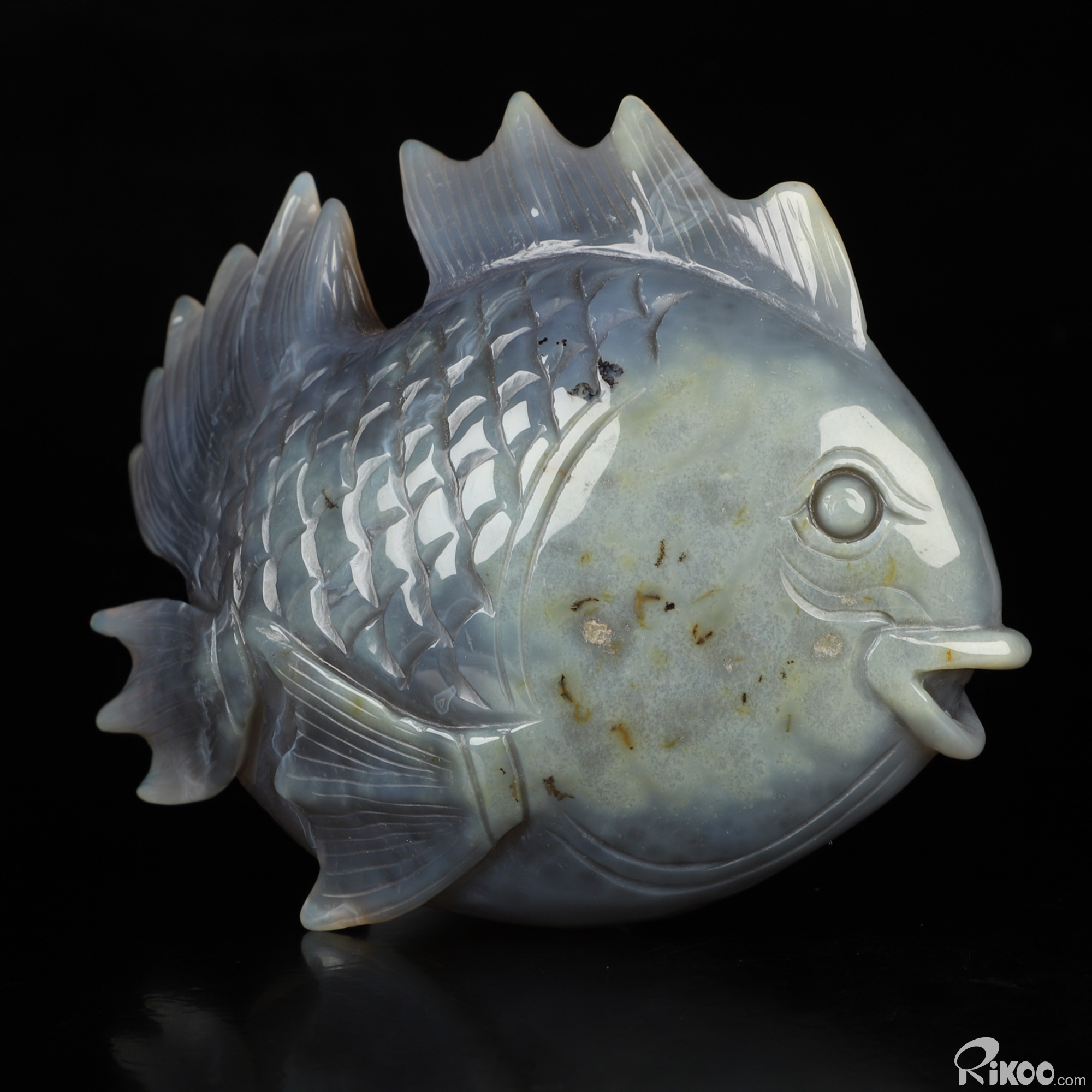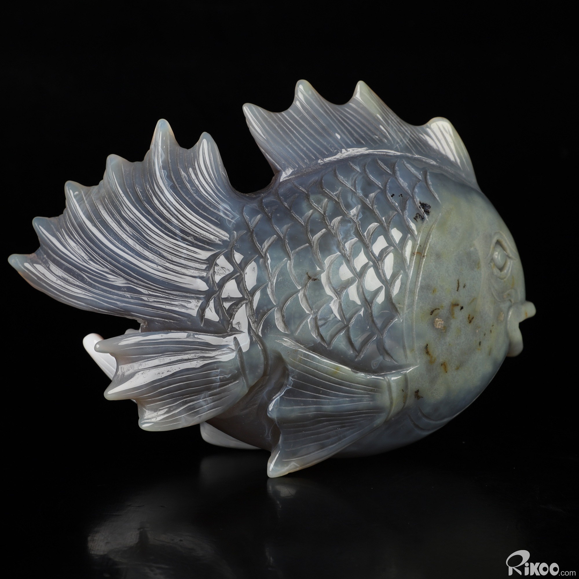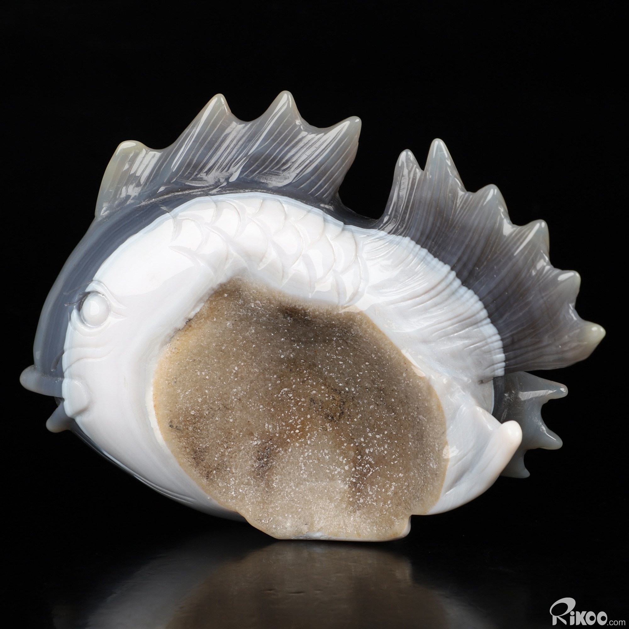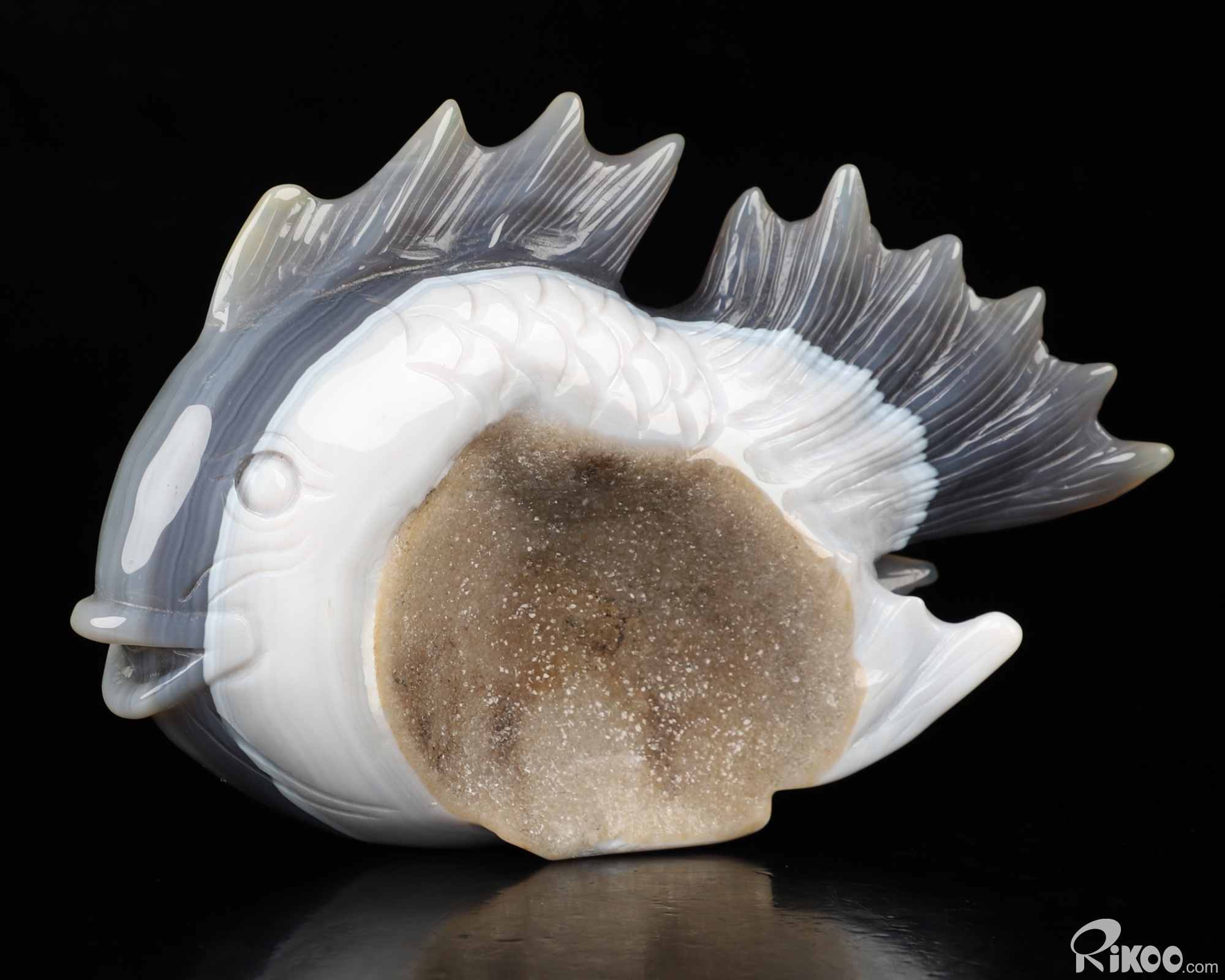 6.5" Agate Geode Hand Carved Crystal Fish Sculpture, Crystal Healing