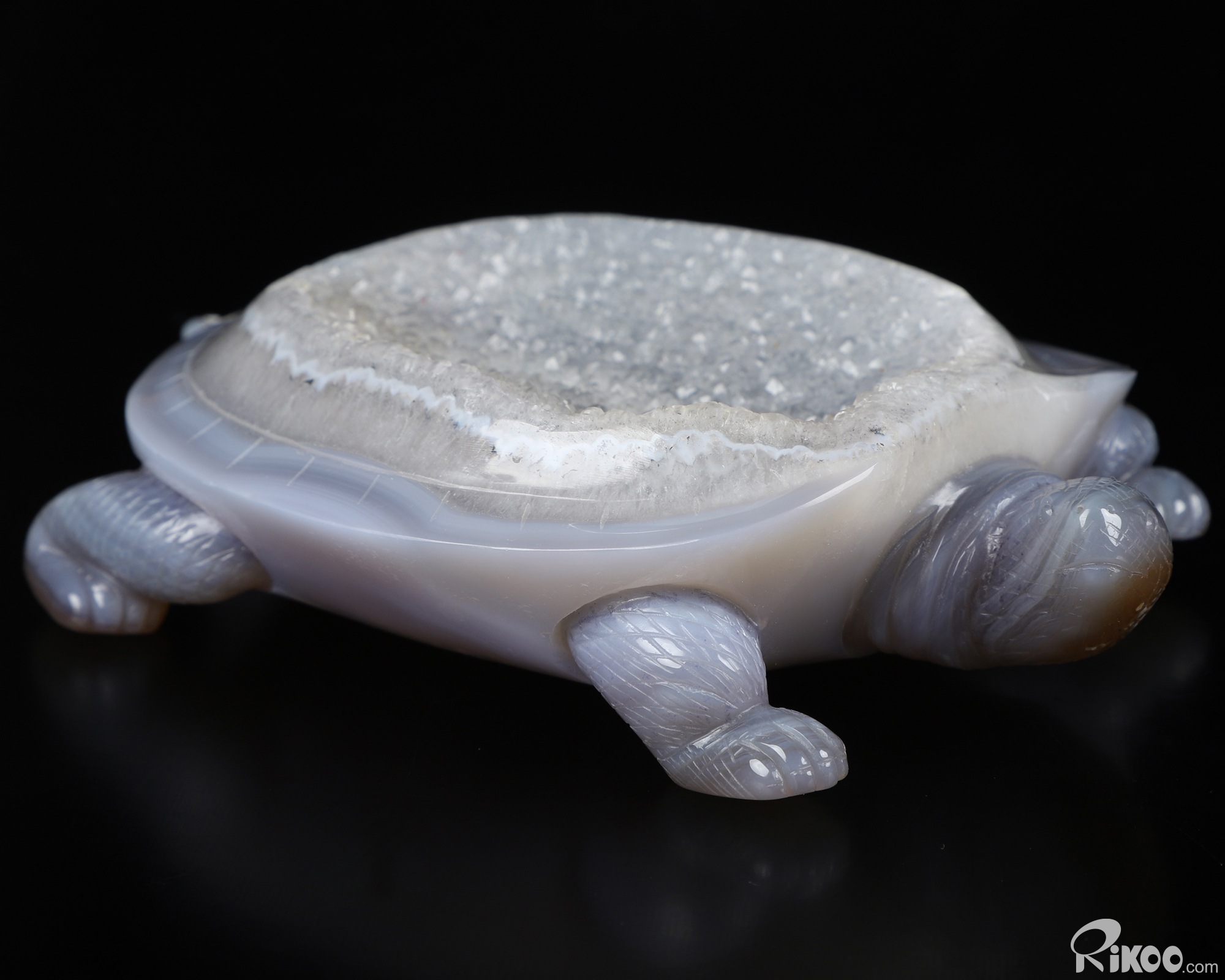 6.5" Agate Geode Hand Carved Crystal Turtle Sculpture, Crystal Healing