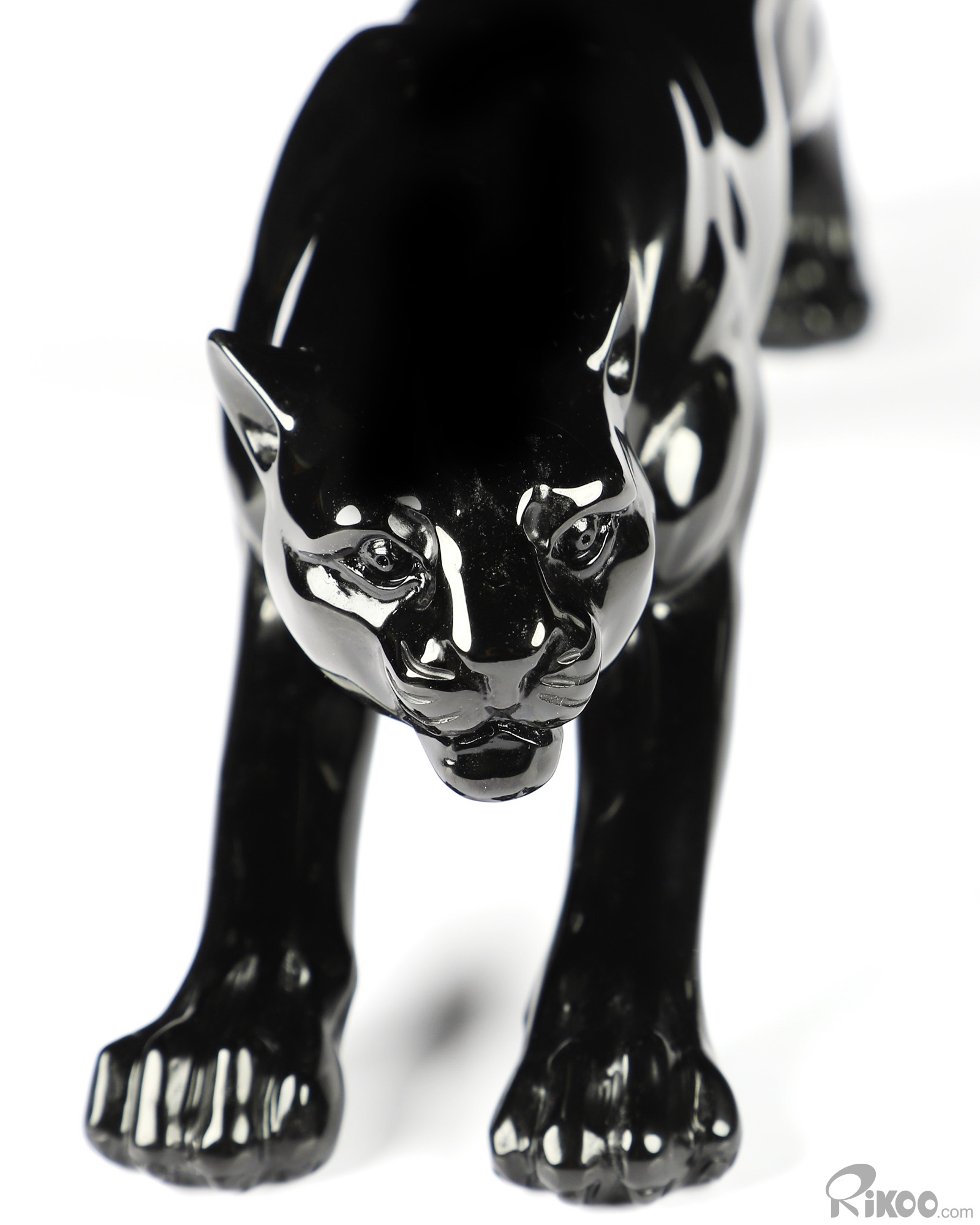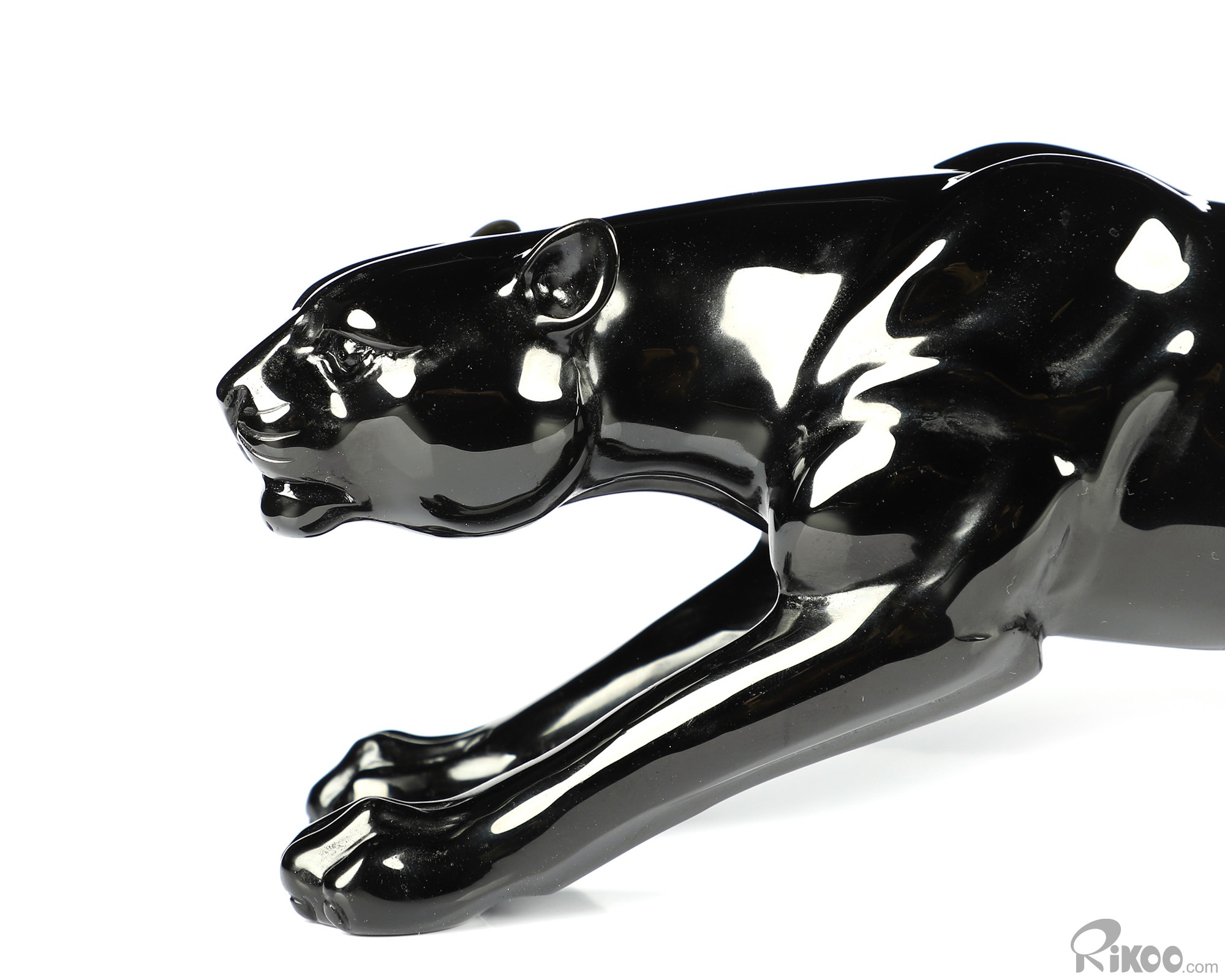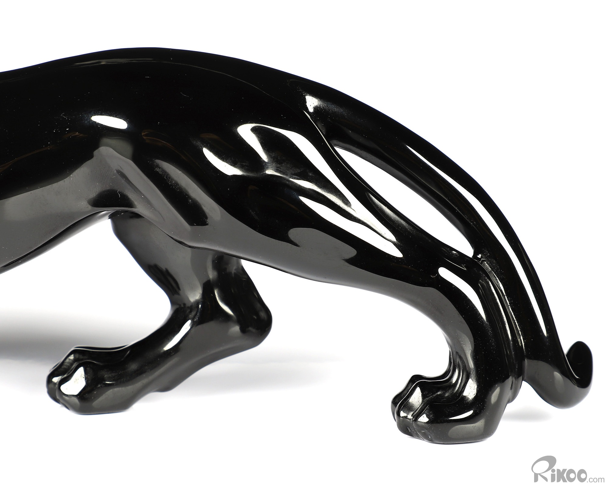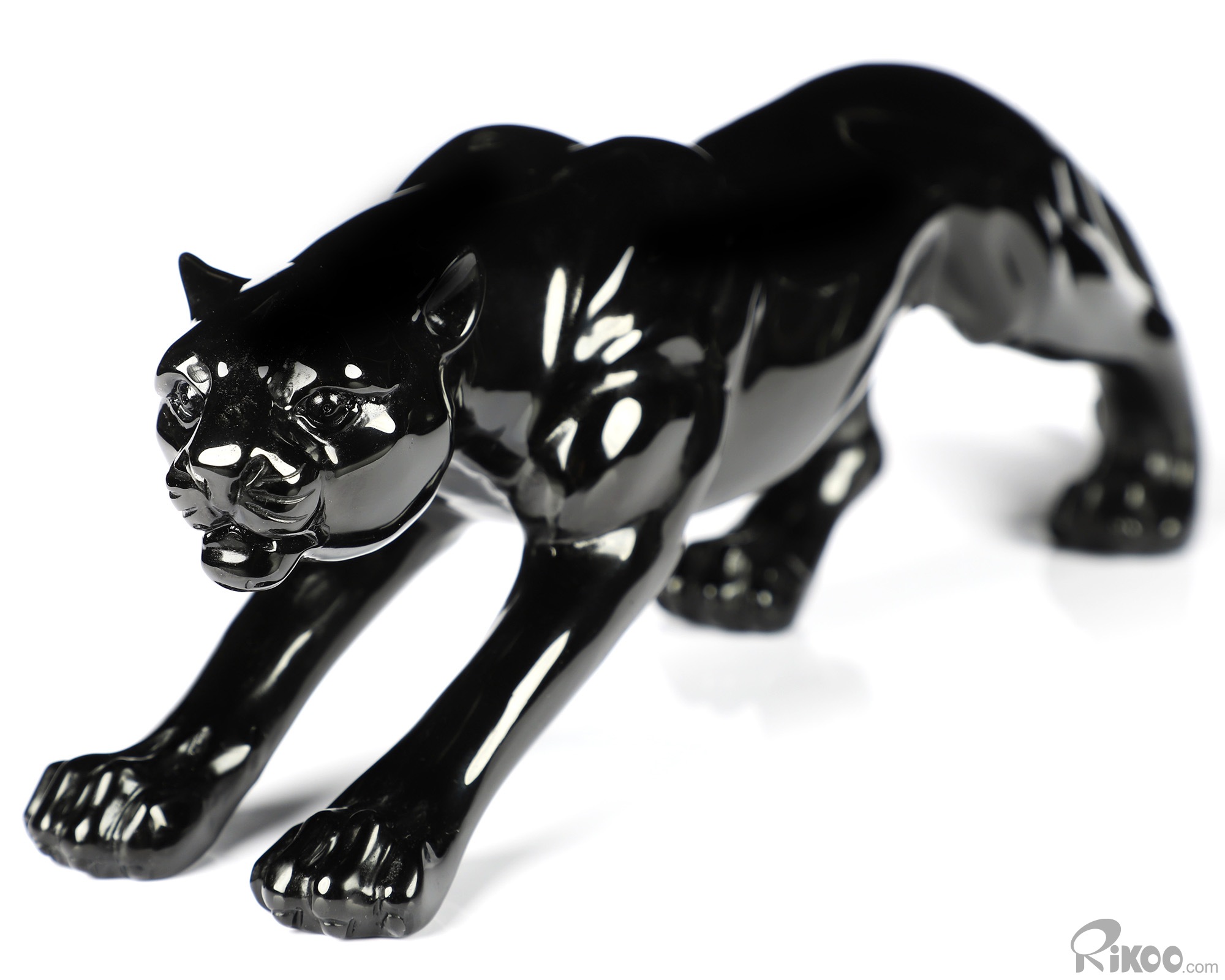 6.5" Black Obsidian Carved Crystal Leopard Sculpture, Realistic