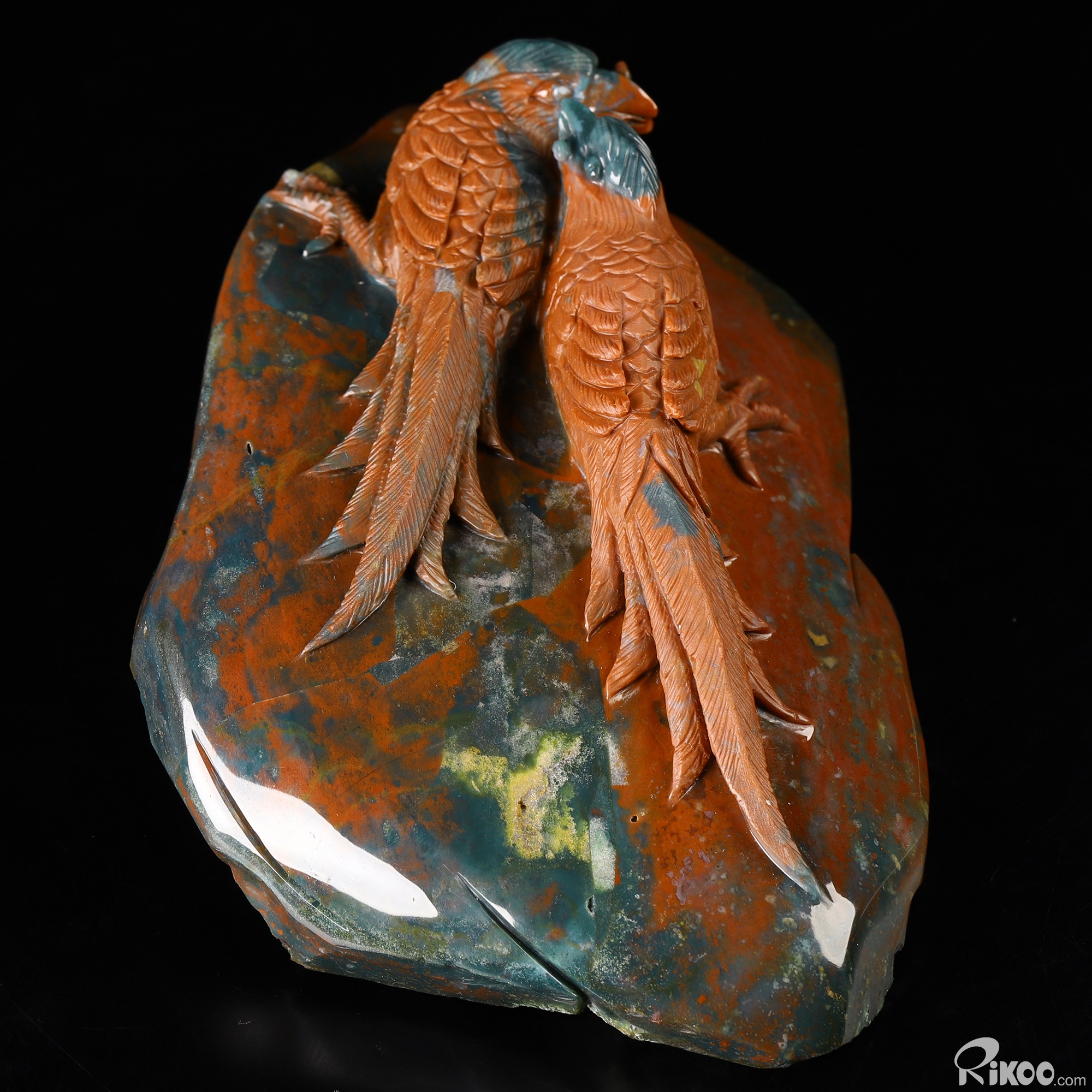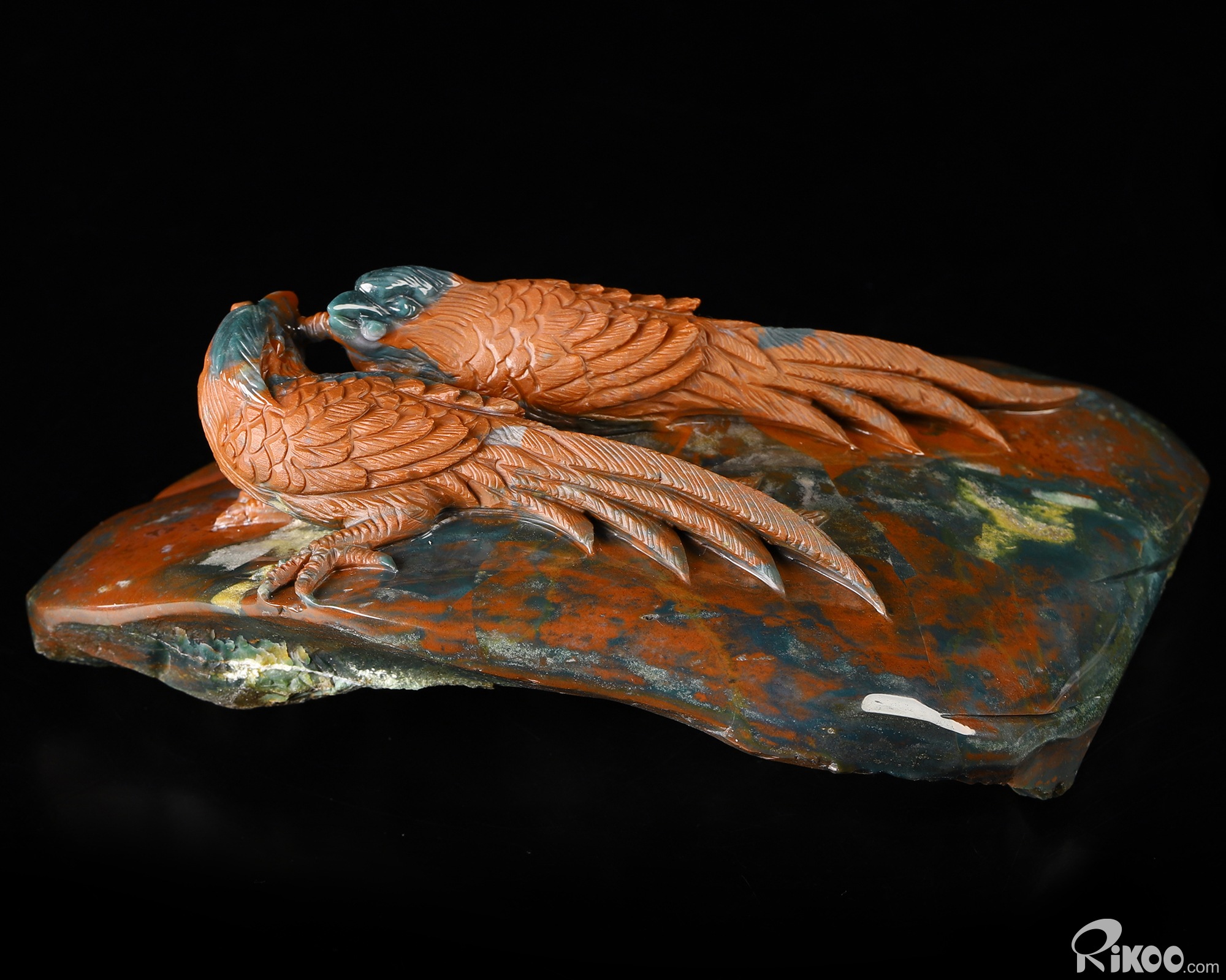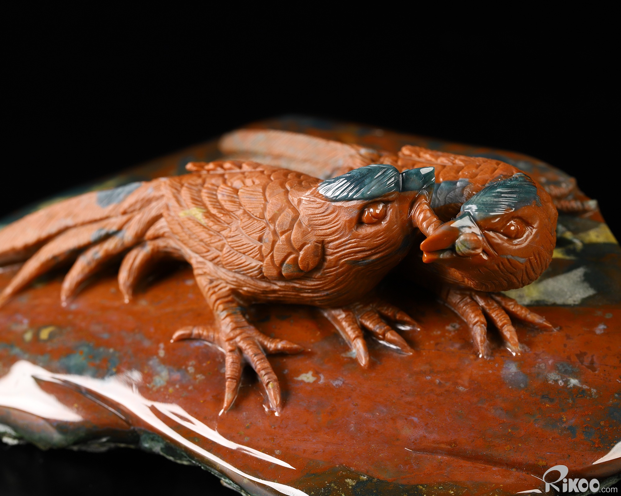 6.5" Bloodstone Hand Carved Crystal Birds Sculpture, Crystal Healing