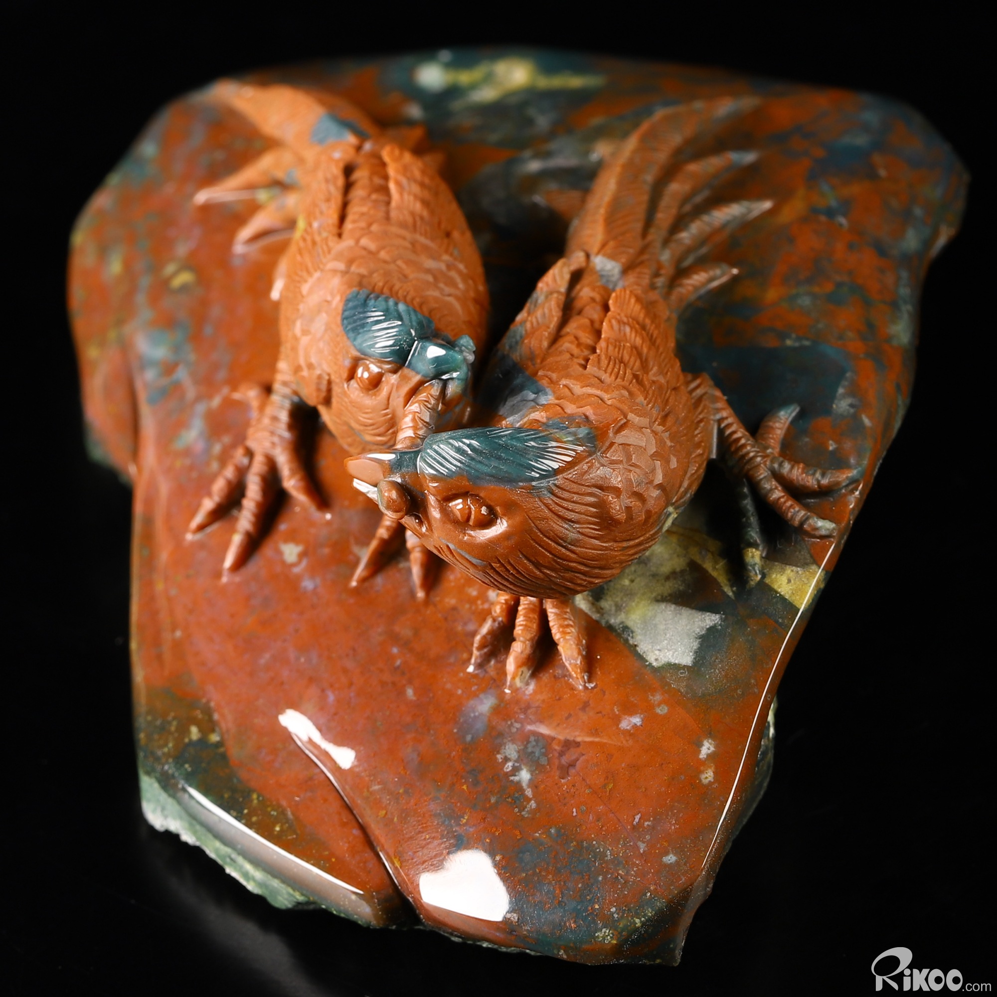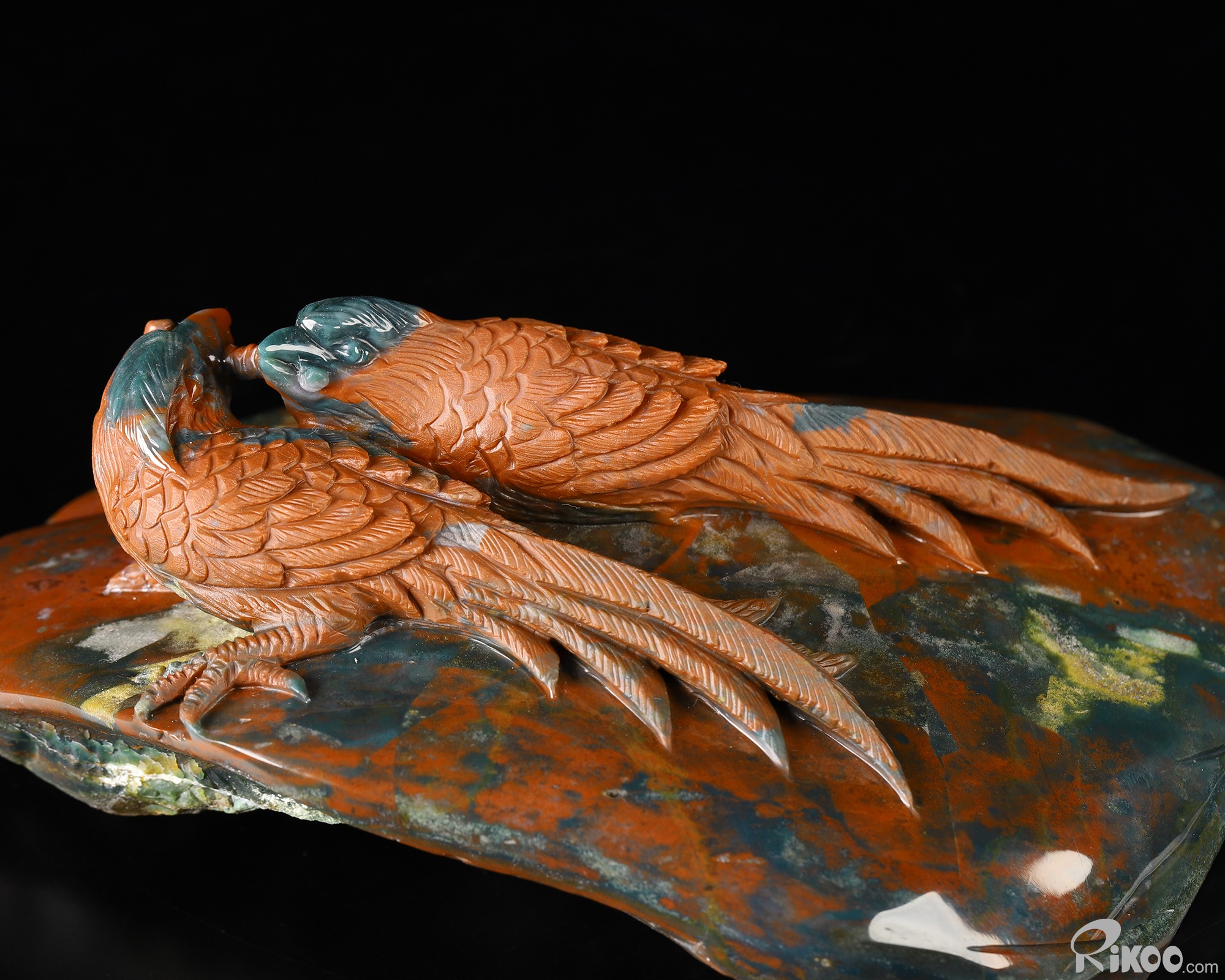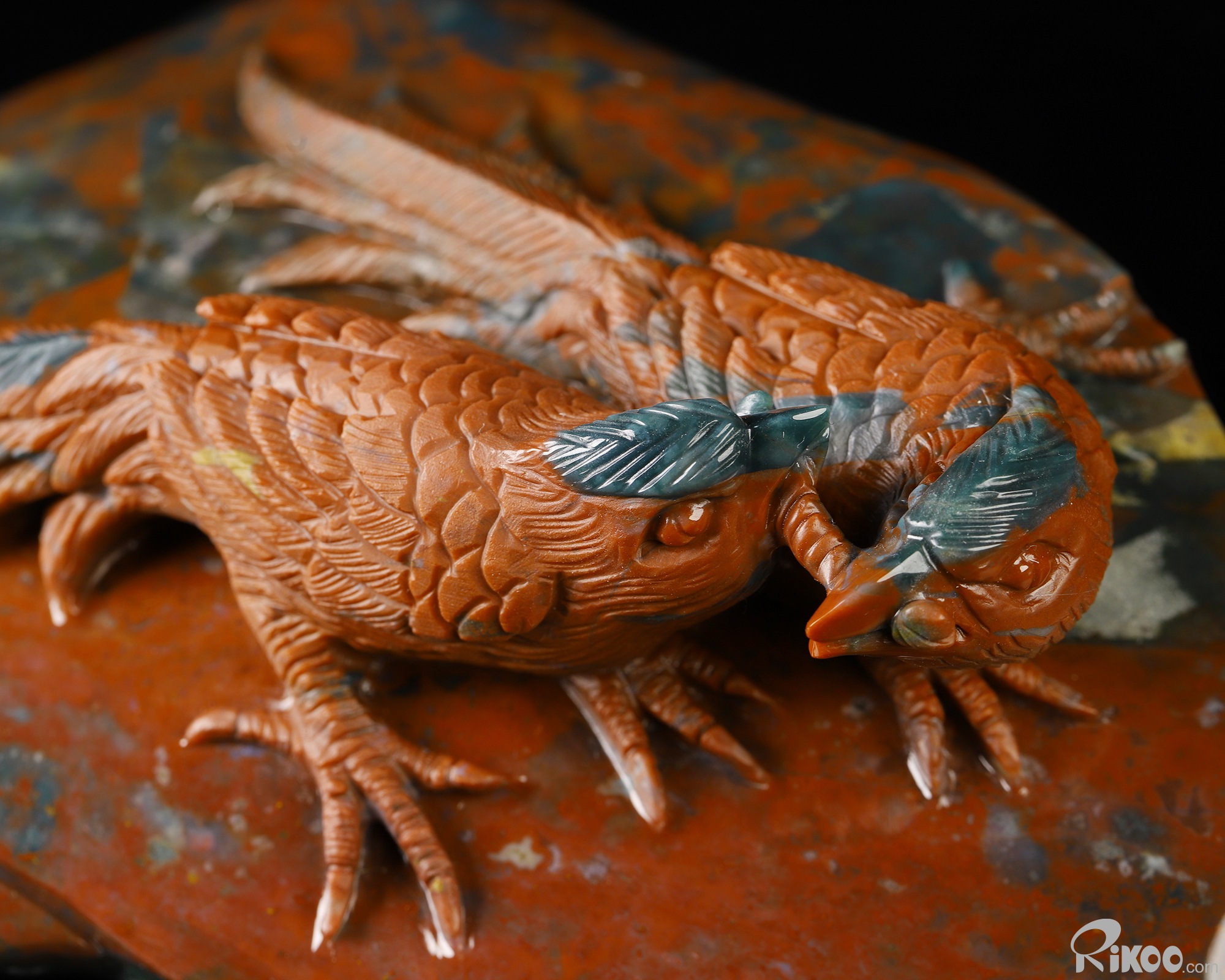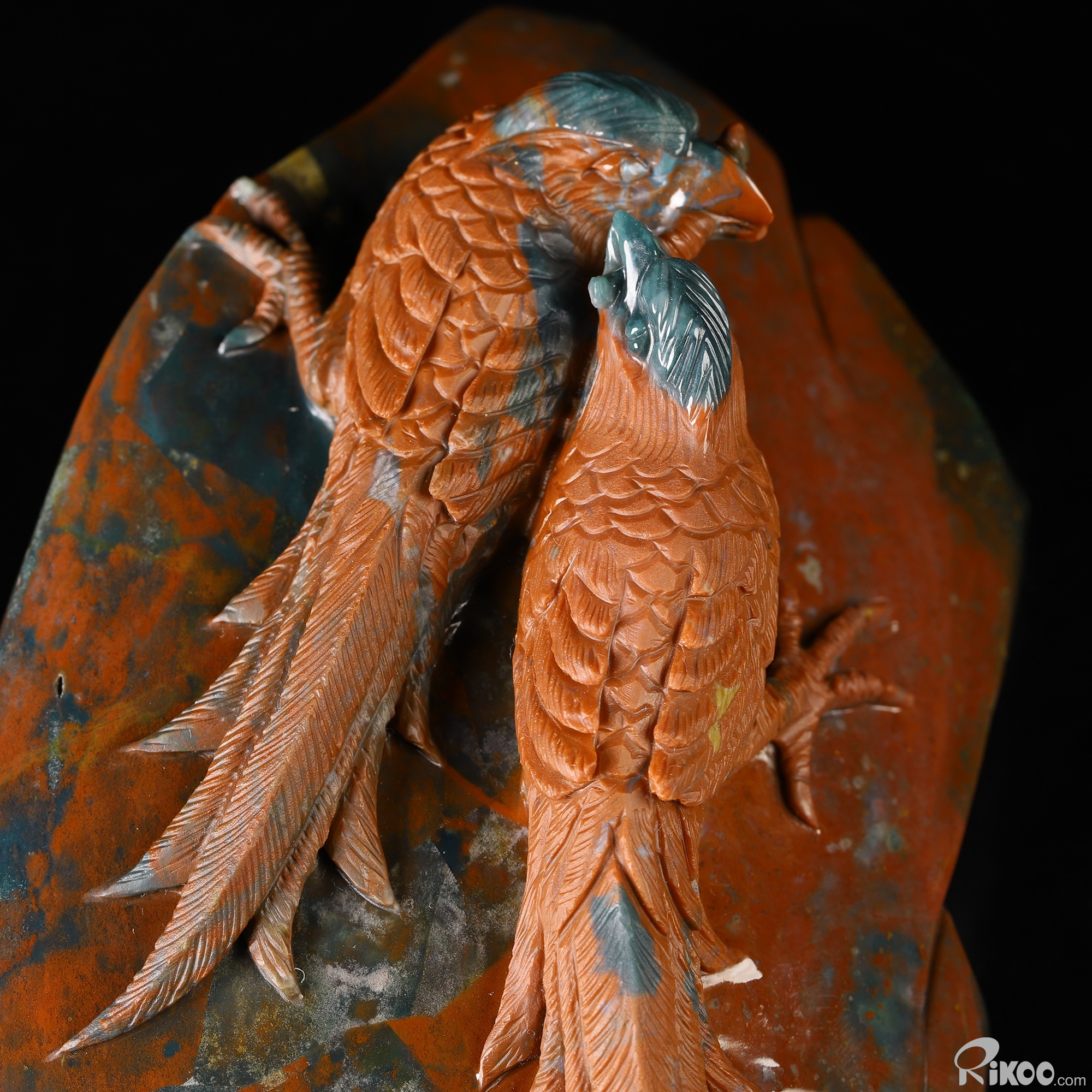 6.5" Bloodstone Hand Carved Crystal Birds Sculpture, Crystal Healing