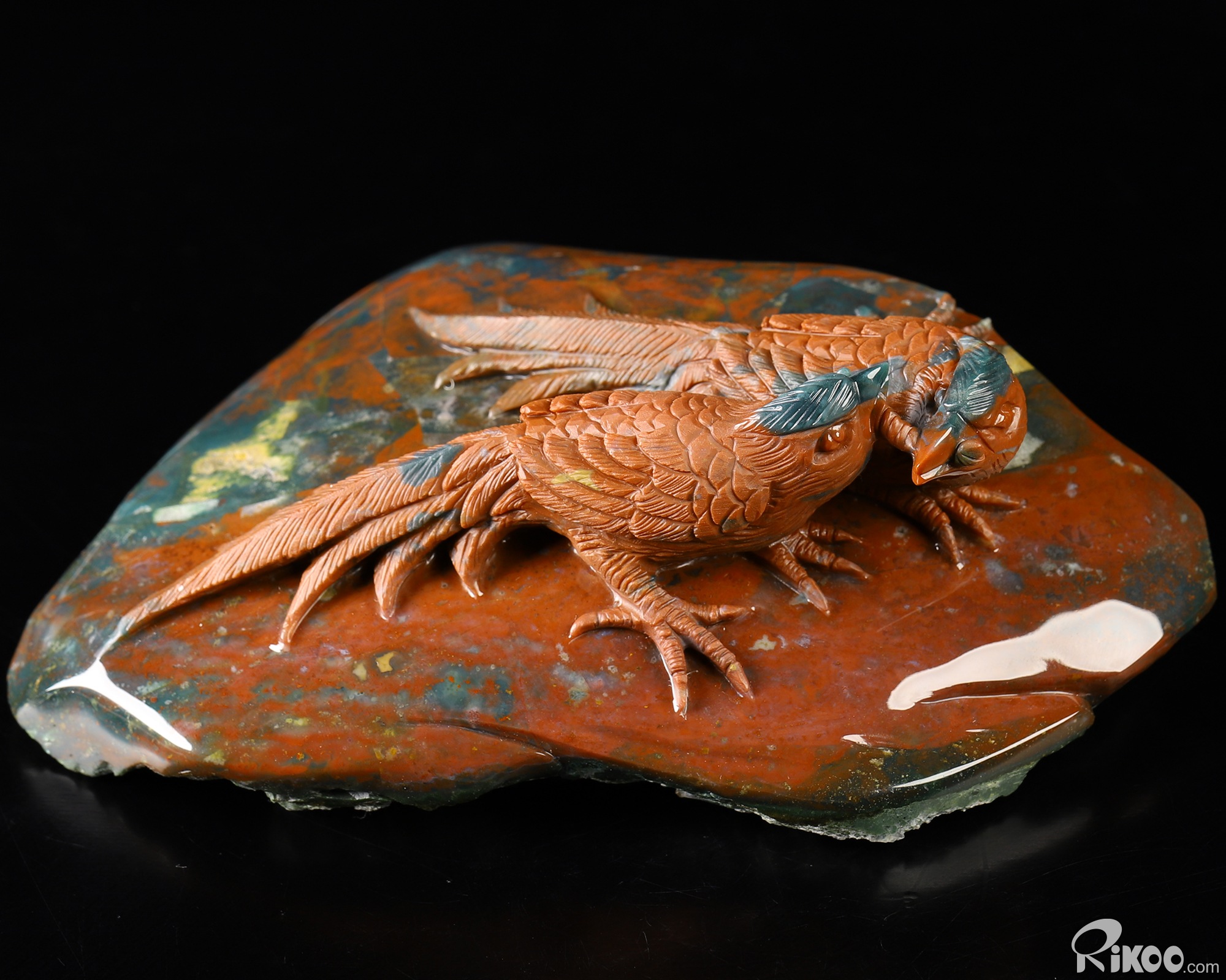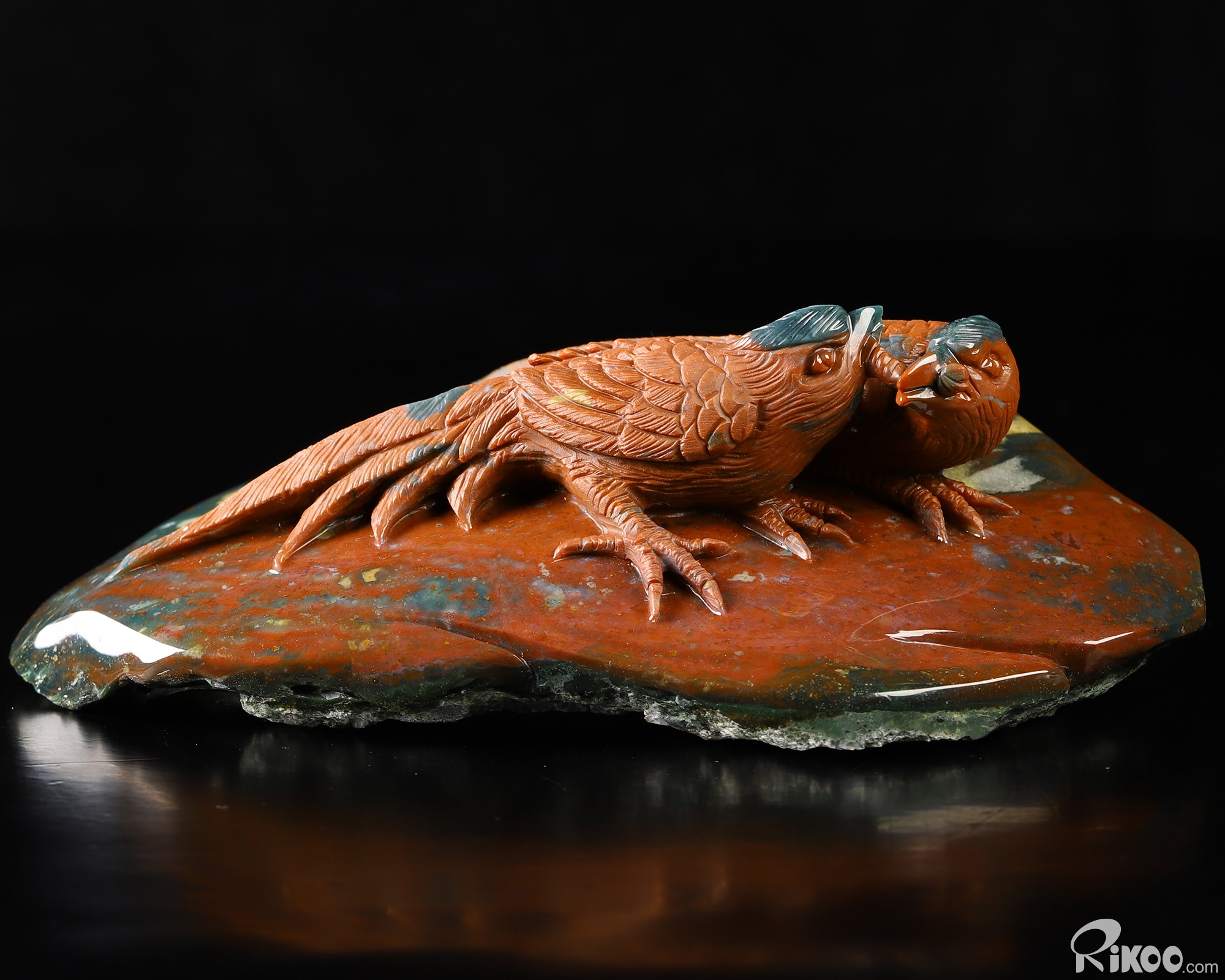 You are looking at a Bloodstone sculpture. The sculpture is 6.5 inches long.