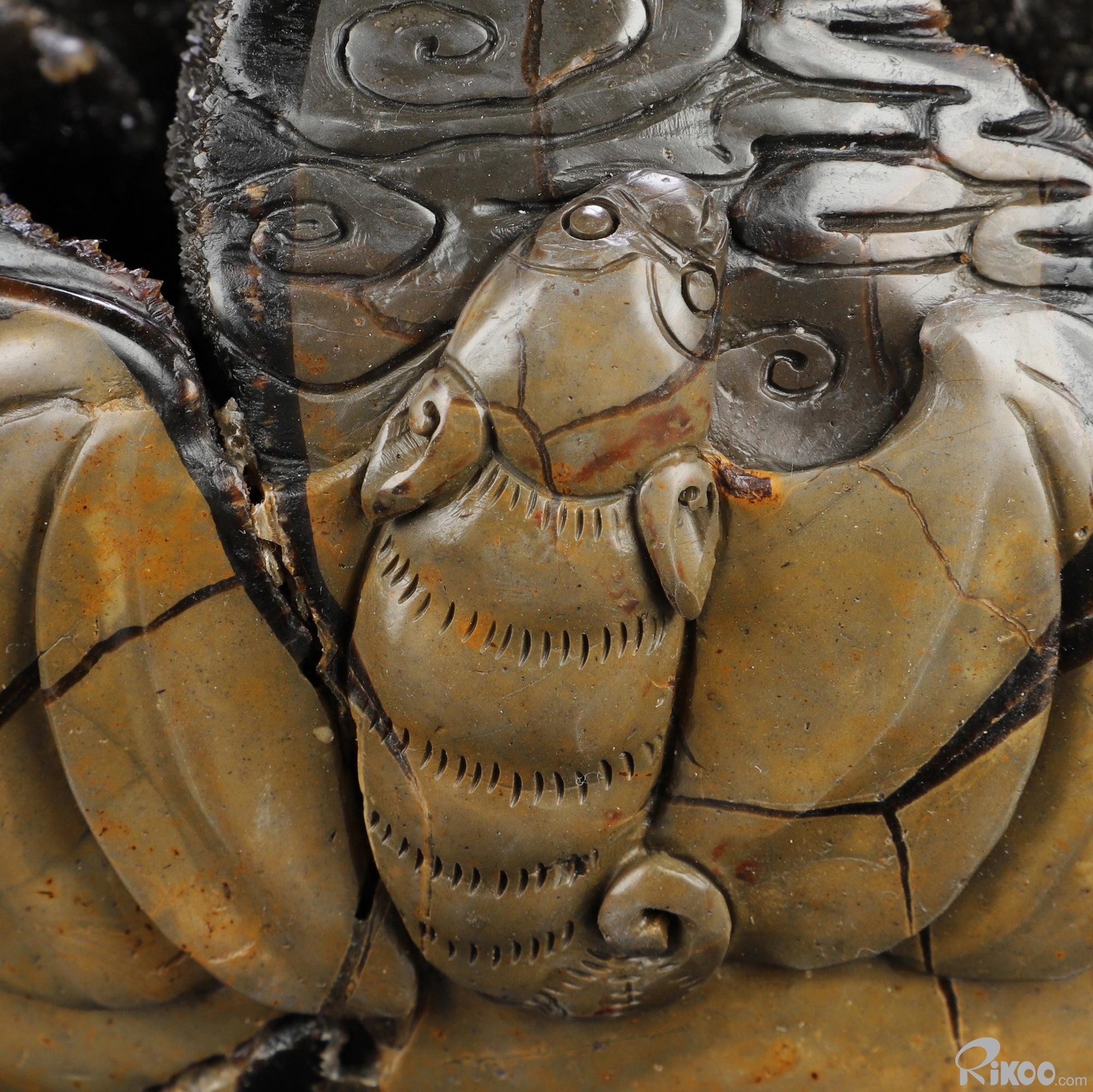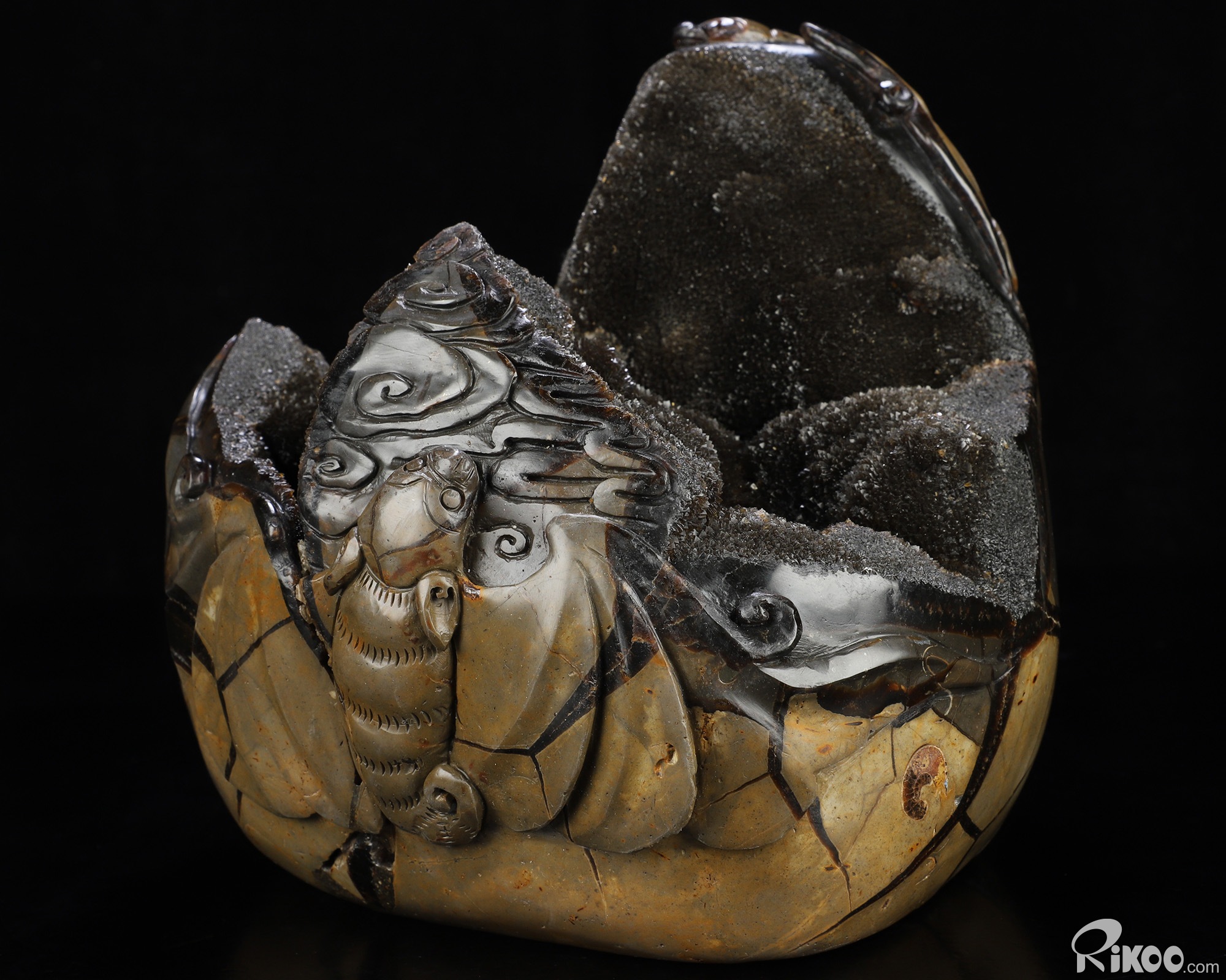 You are looking at a Dragon Septarian Stone sculpture. The sculpture is 6.5 inches long.