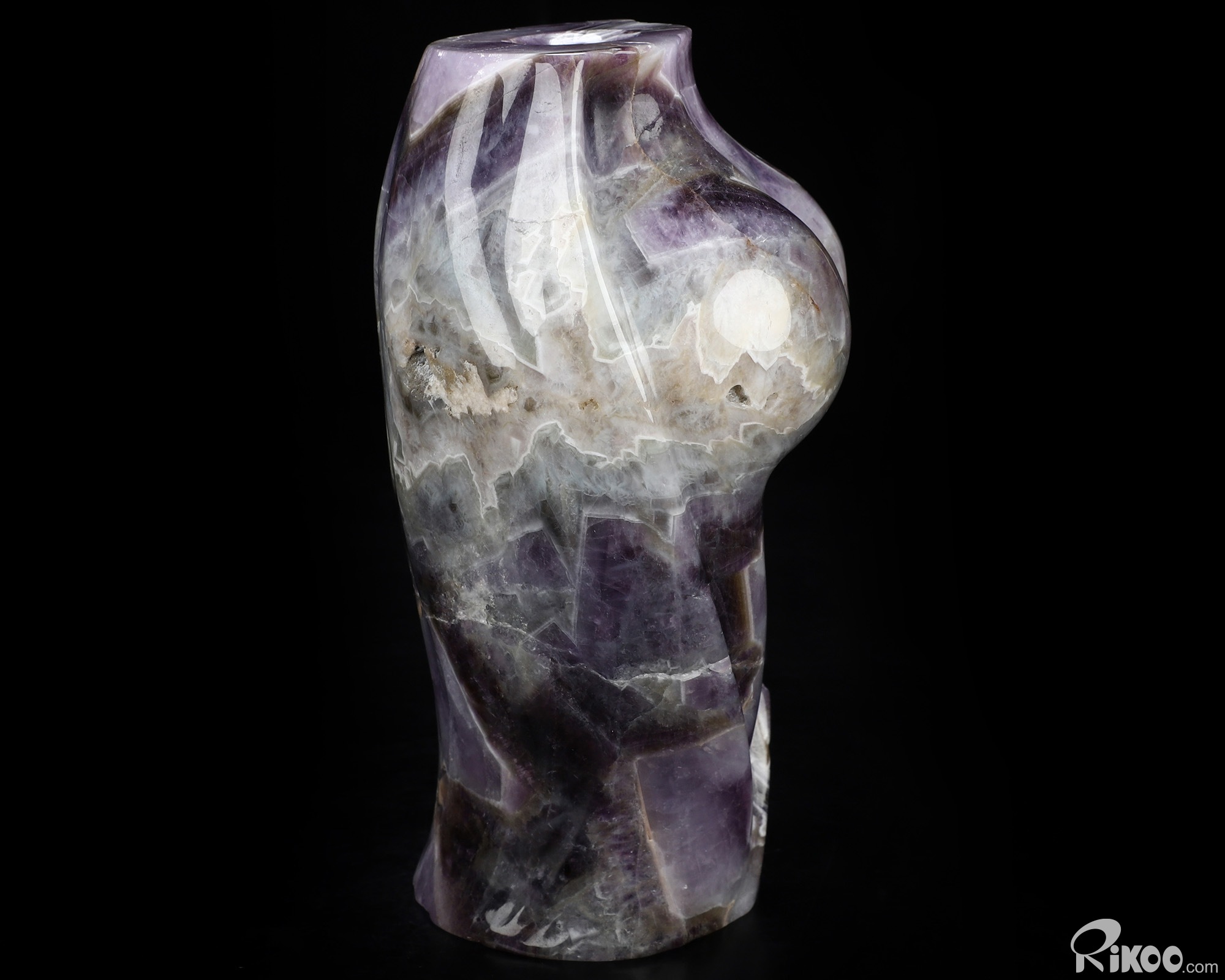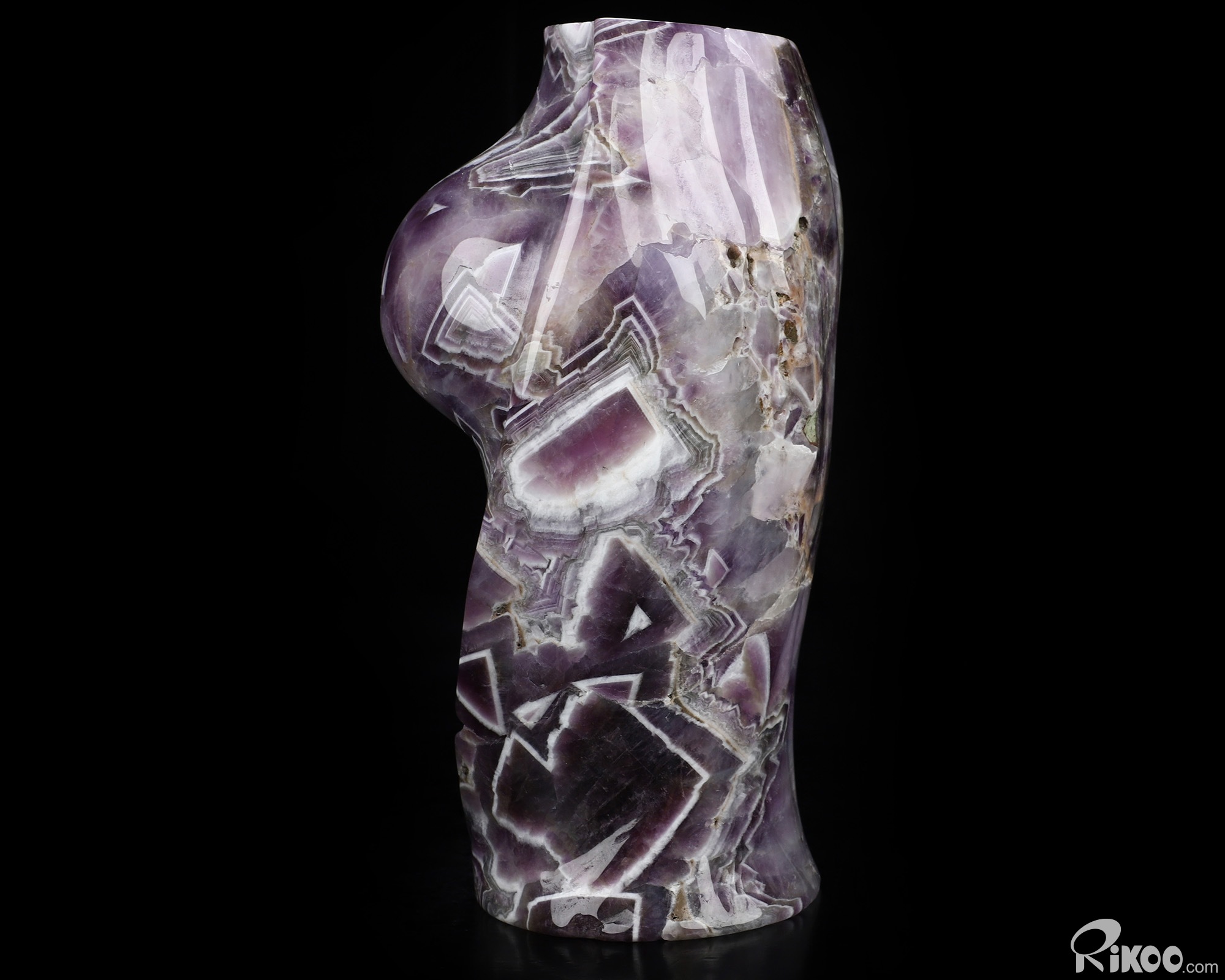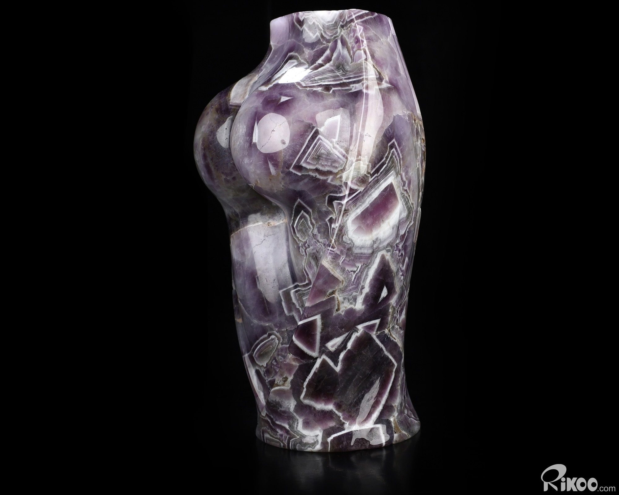 6.5" Dream Chevron Amethyst Hand Carved Crystal Body Vase Sculpture, Crystal Healing