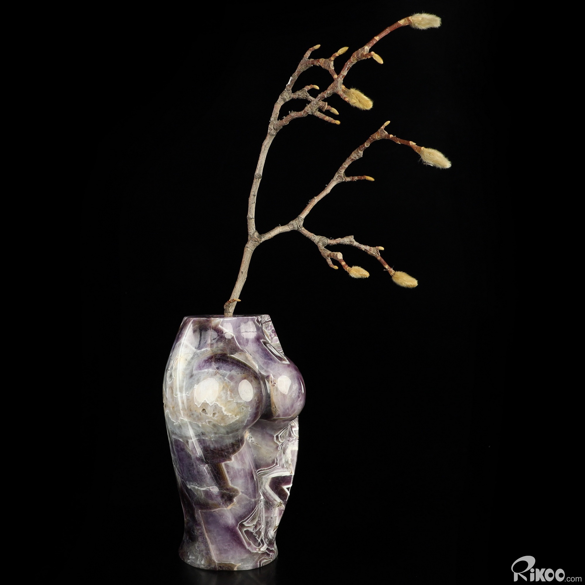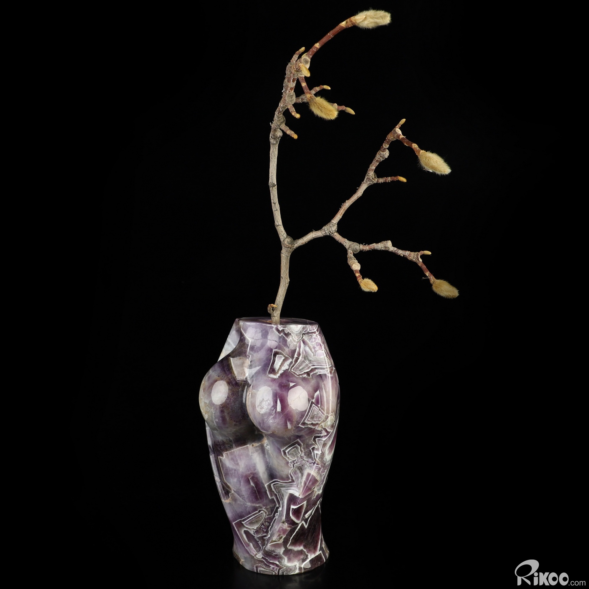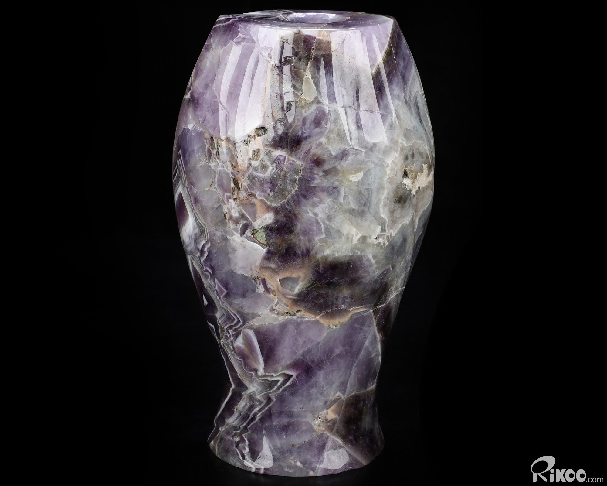 6.5" Dream Chevron Amethyst Hand Carved Crystal Body Vase Sculpture, Crystal Healing