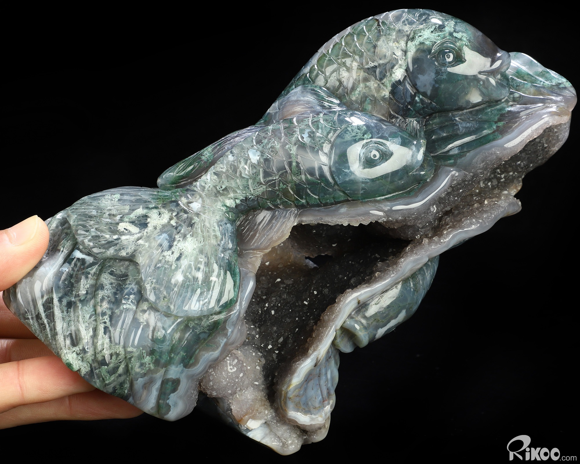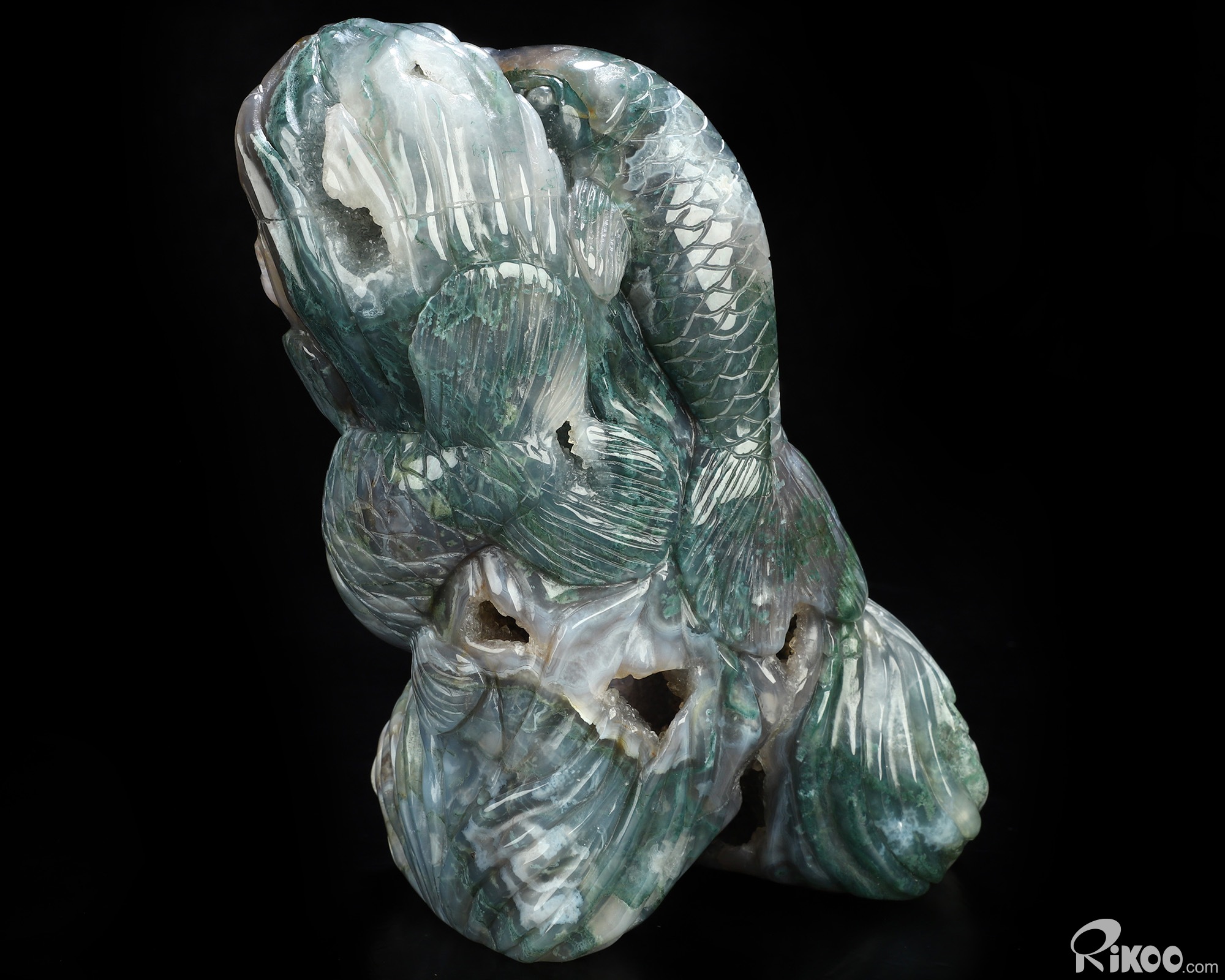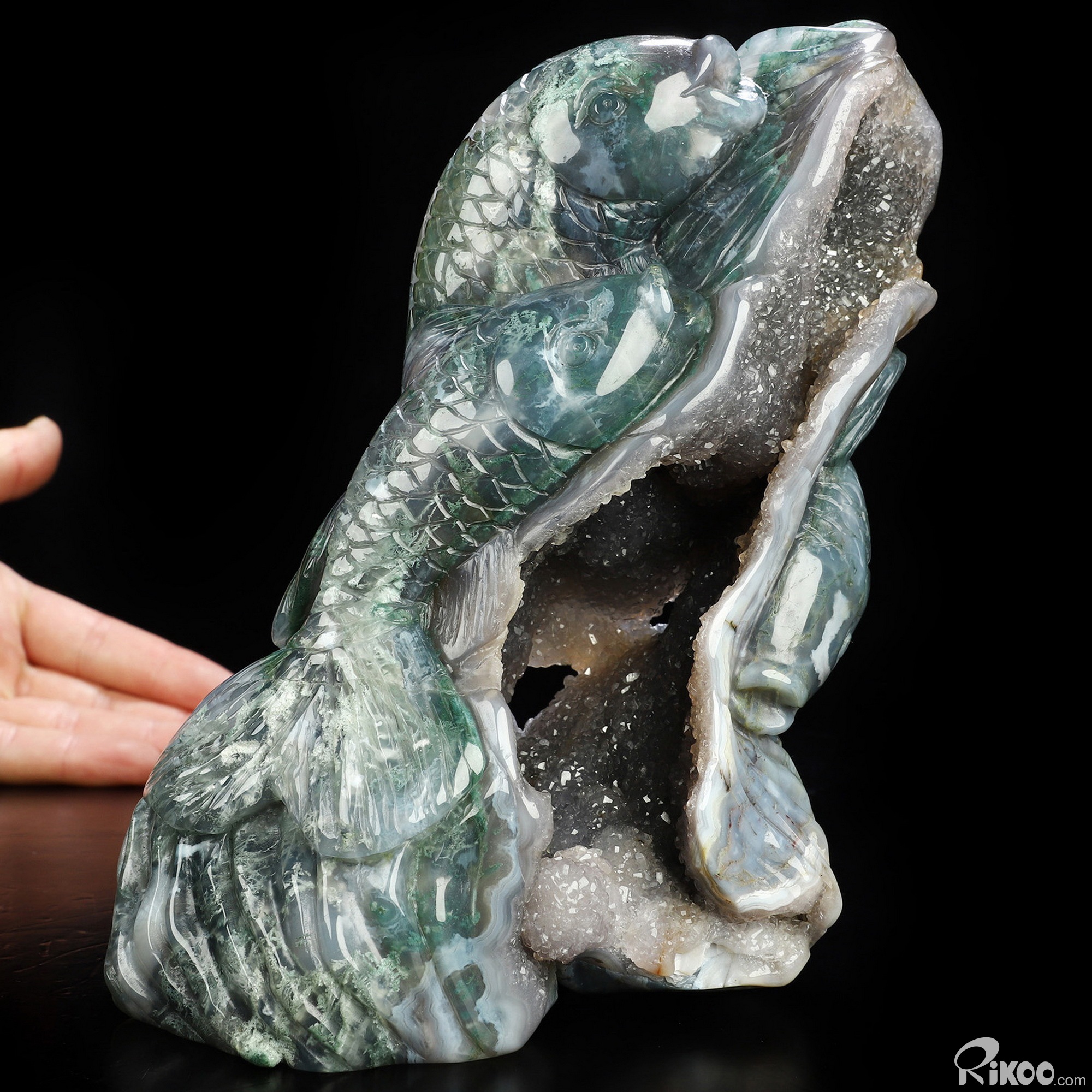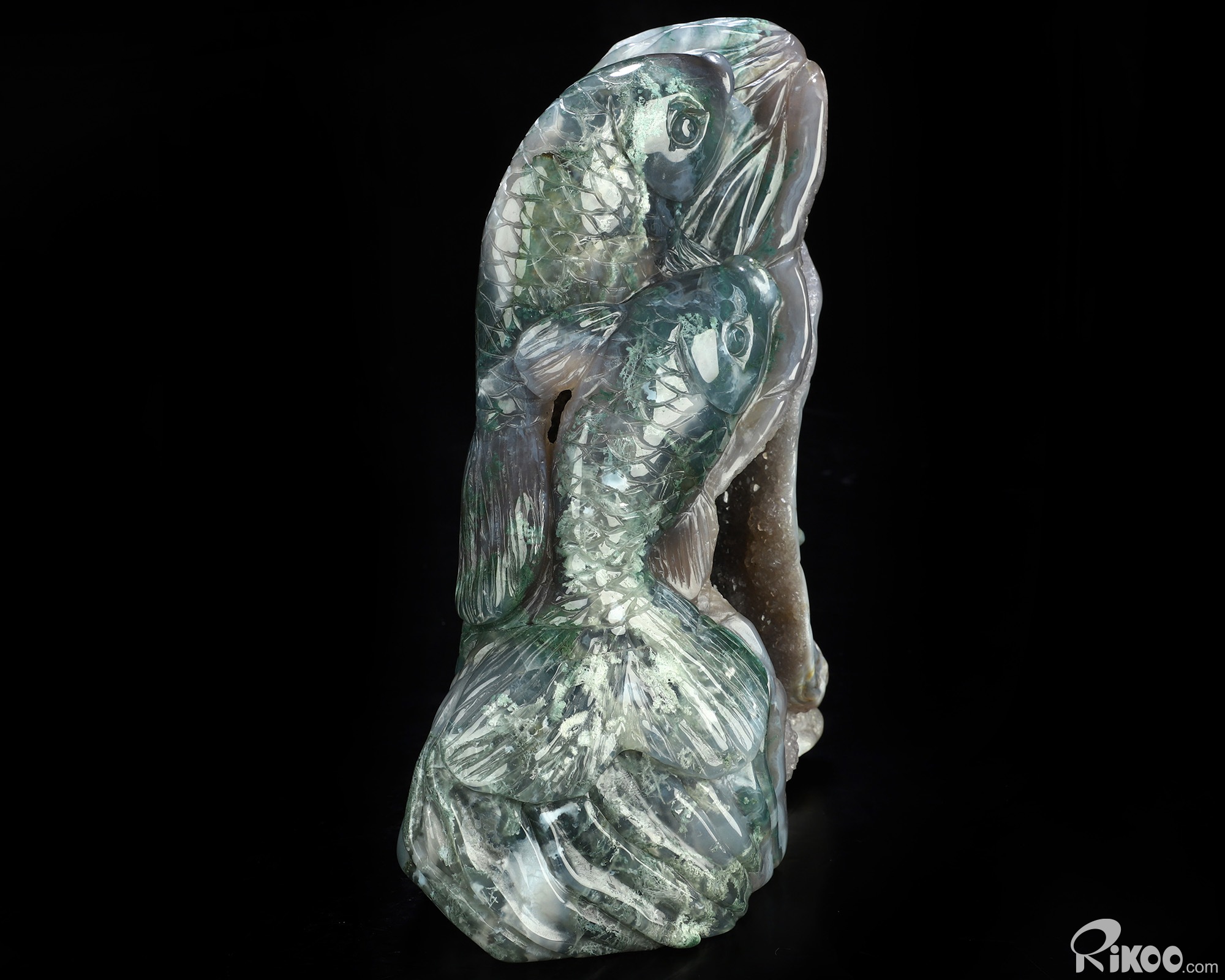 6.5" Green Moss Agate Hand Carved Crystal Fish Sculpture, Crystal Healing