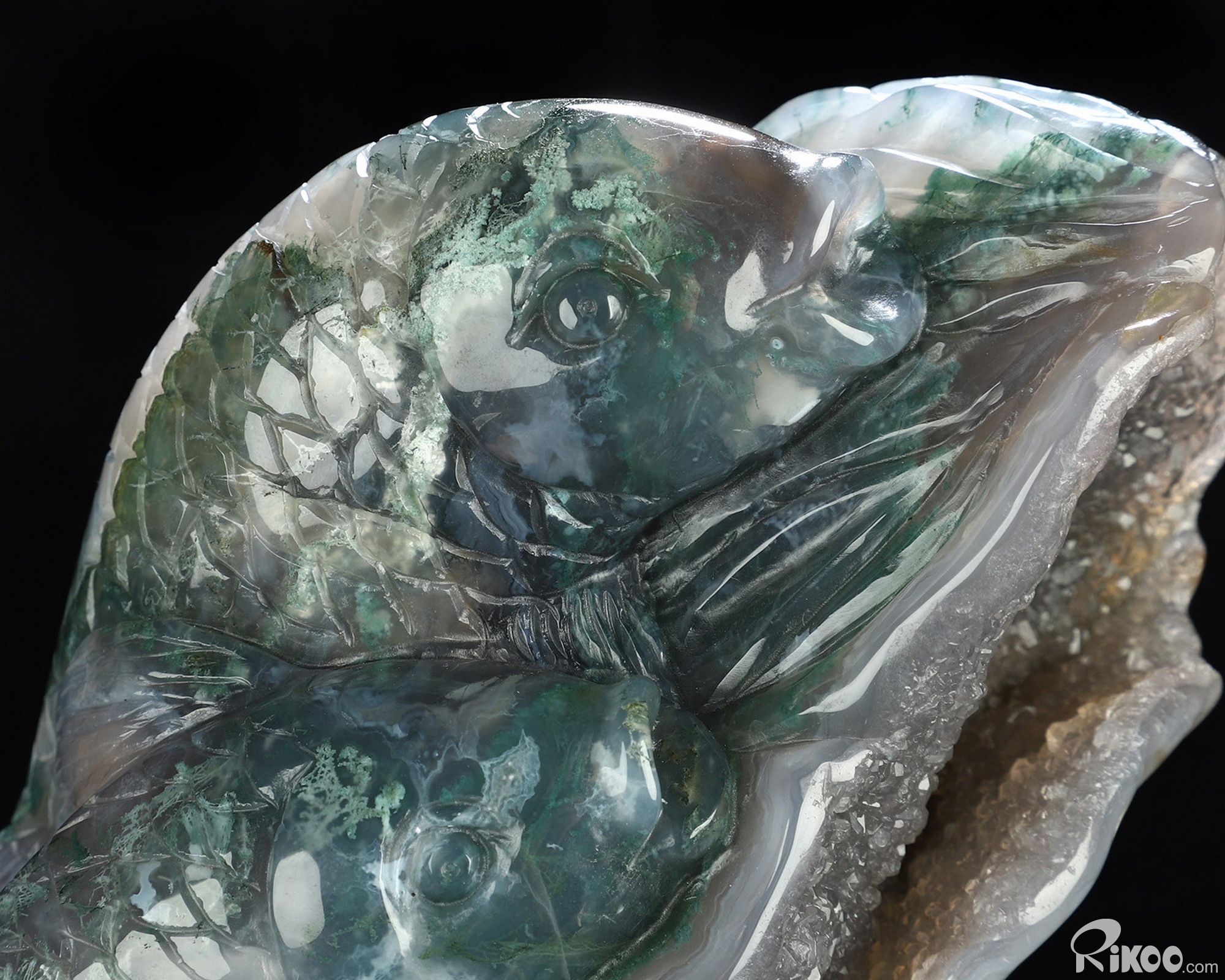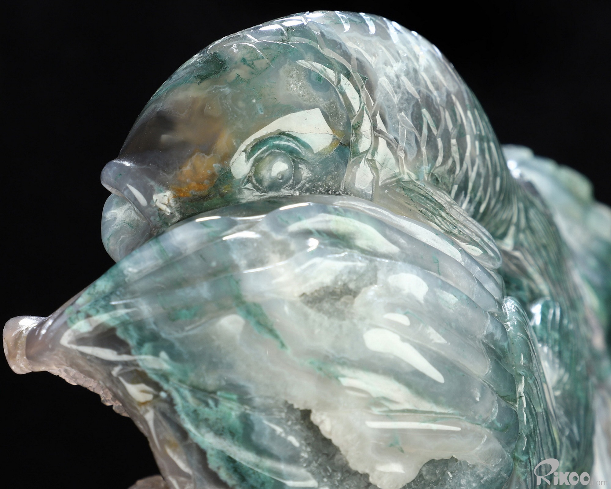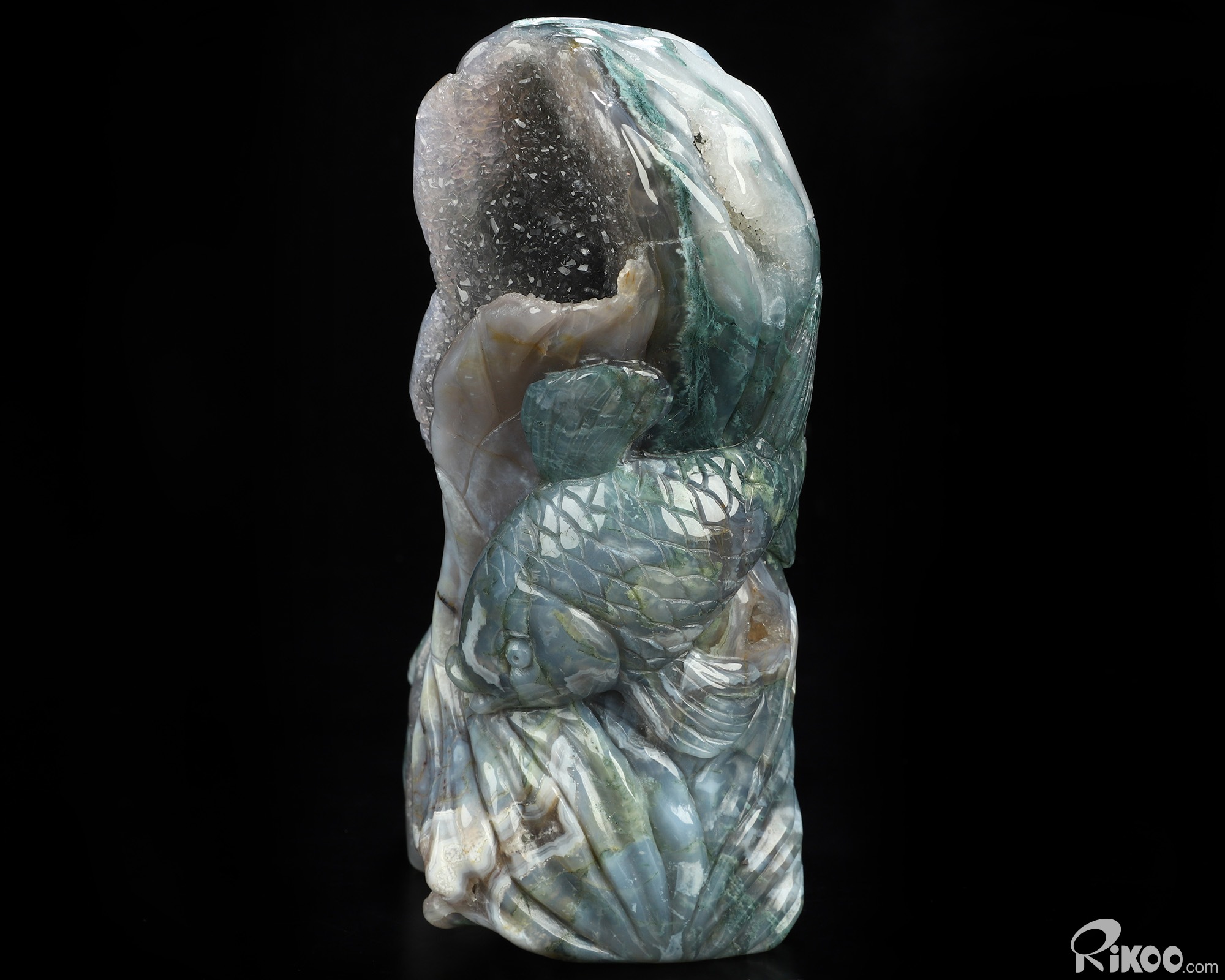 6.5" Green Moss Agate Hand Carved Crystal Fish Sculpture, Crystal Healing