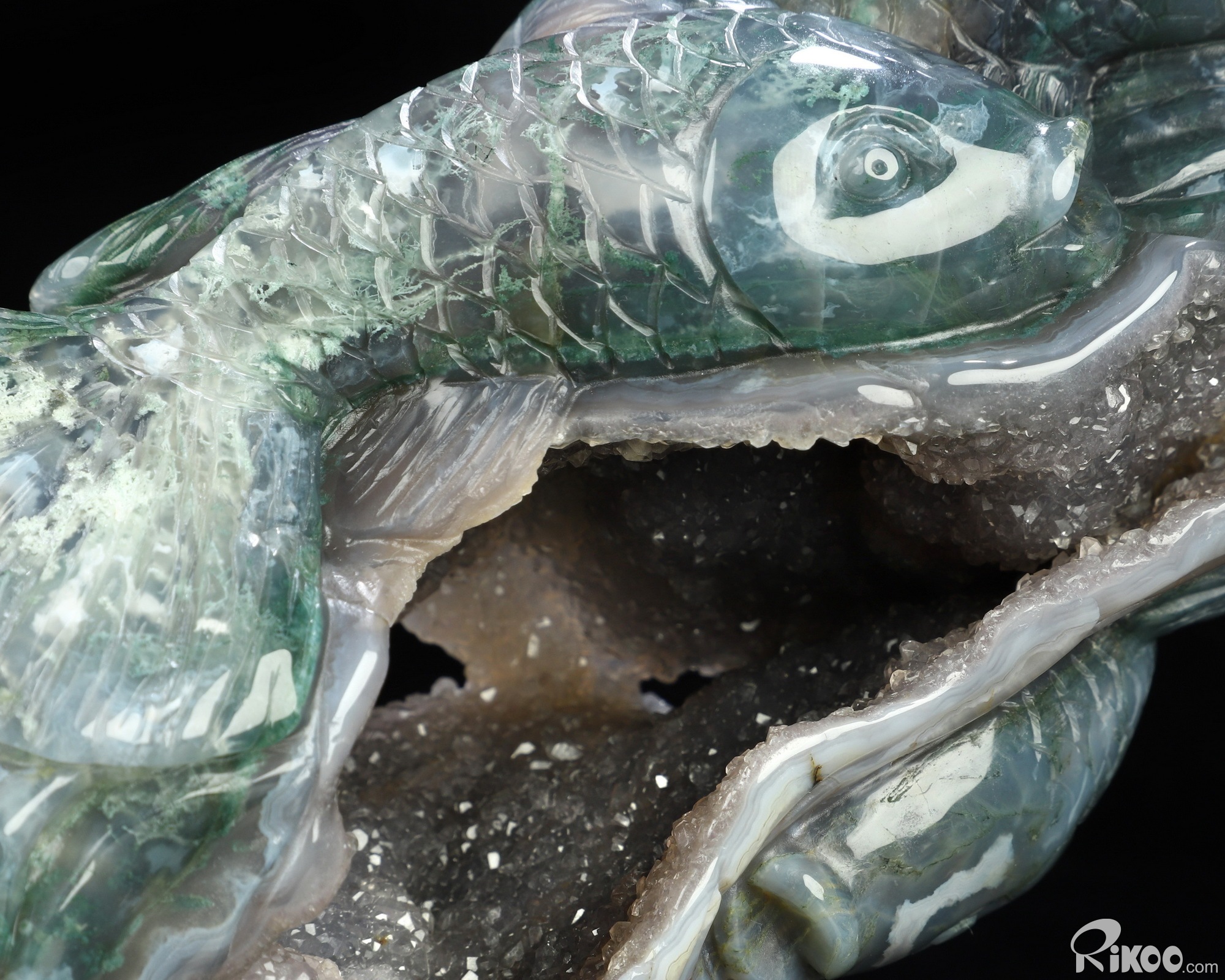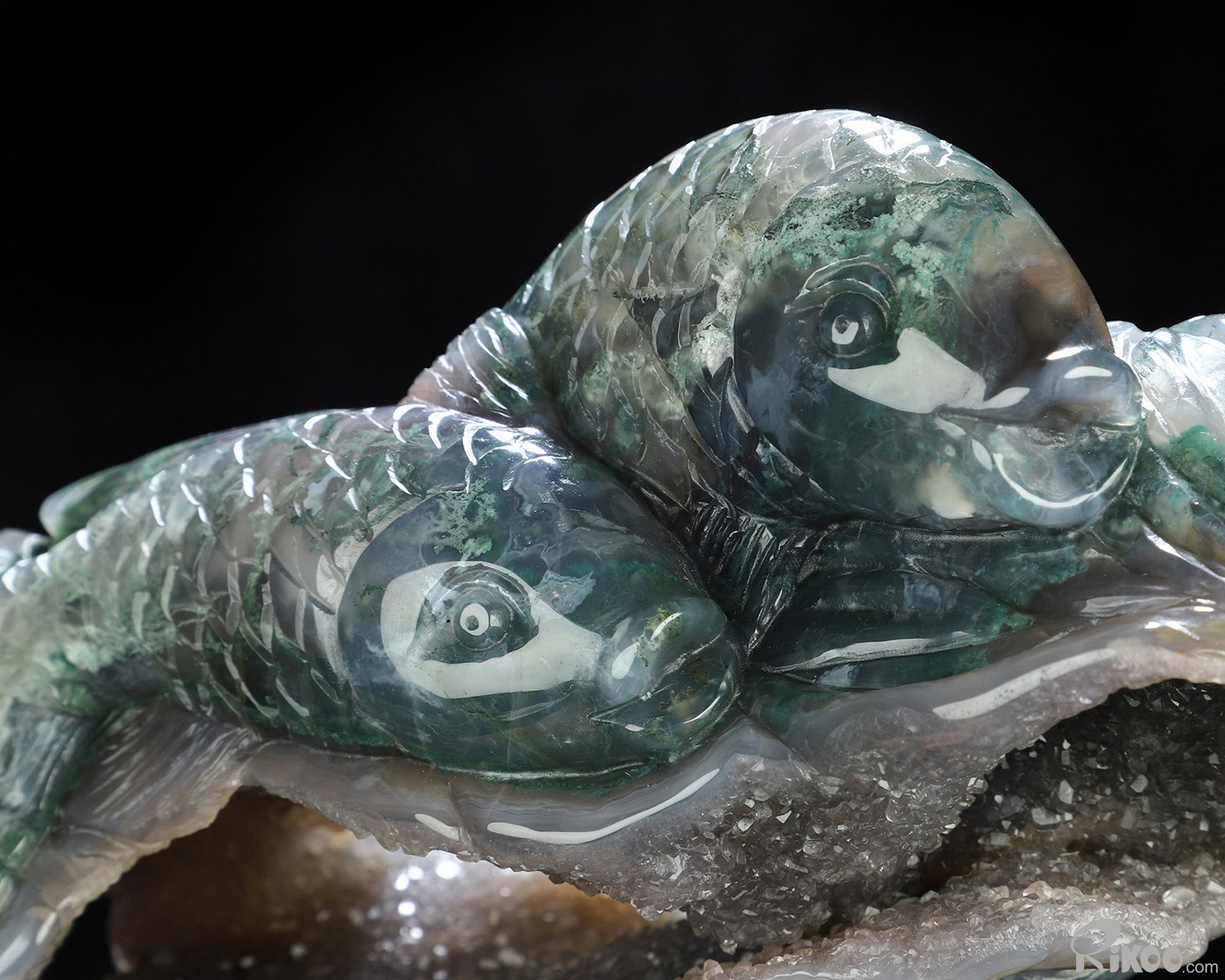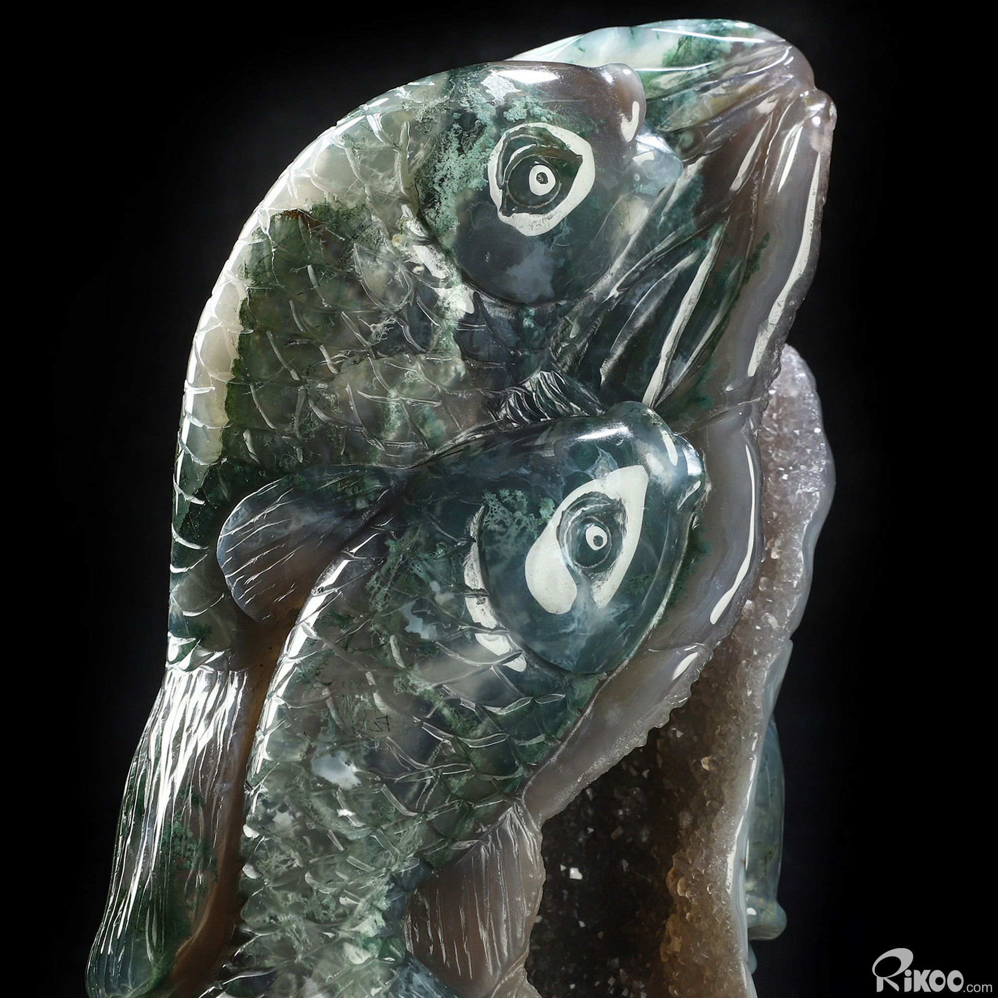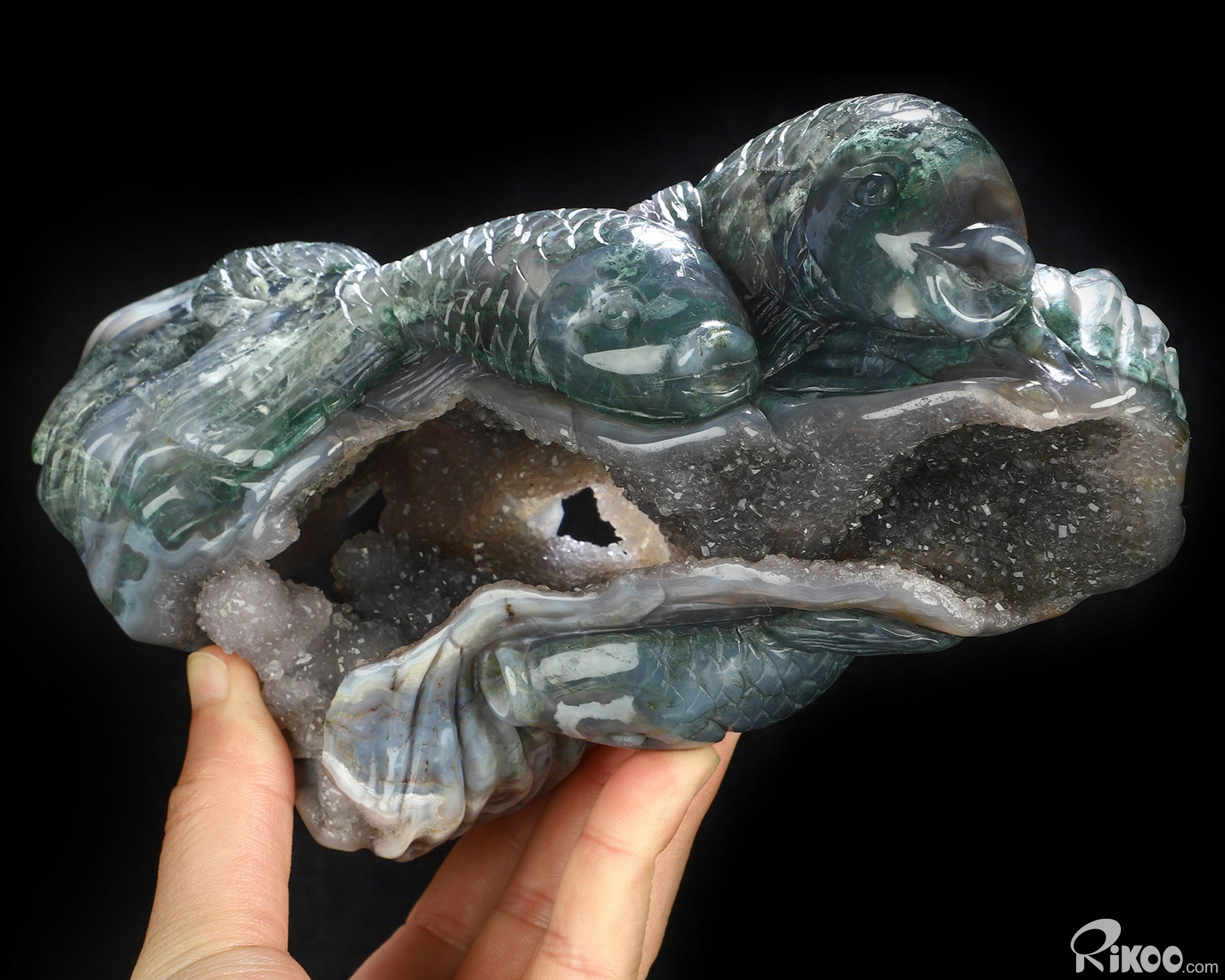 6.5" Green Moss Agate Hand Carved Crystal Fish Sculpture, Crystal Healing