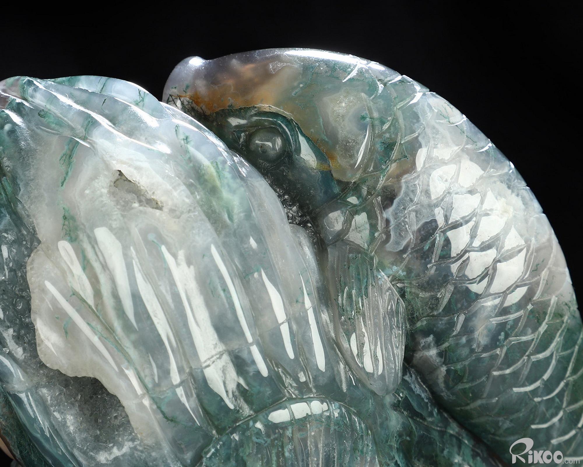 You are looking at a Green Moss Agate sculpture. The sculpture is 6.5 inches long.