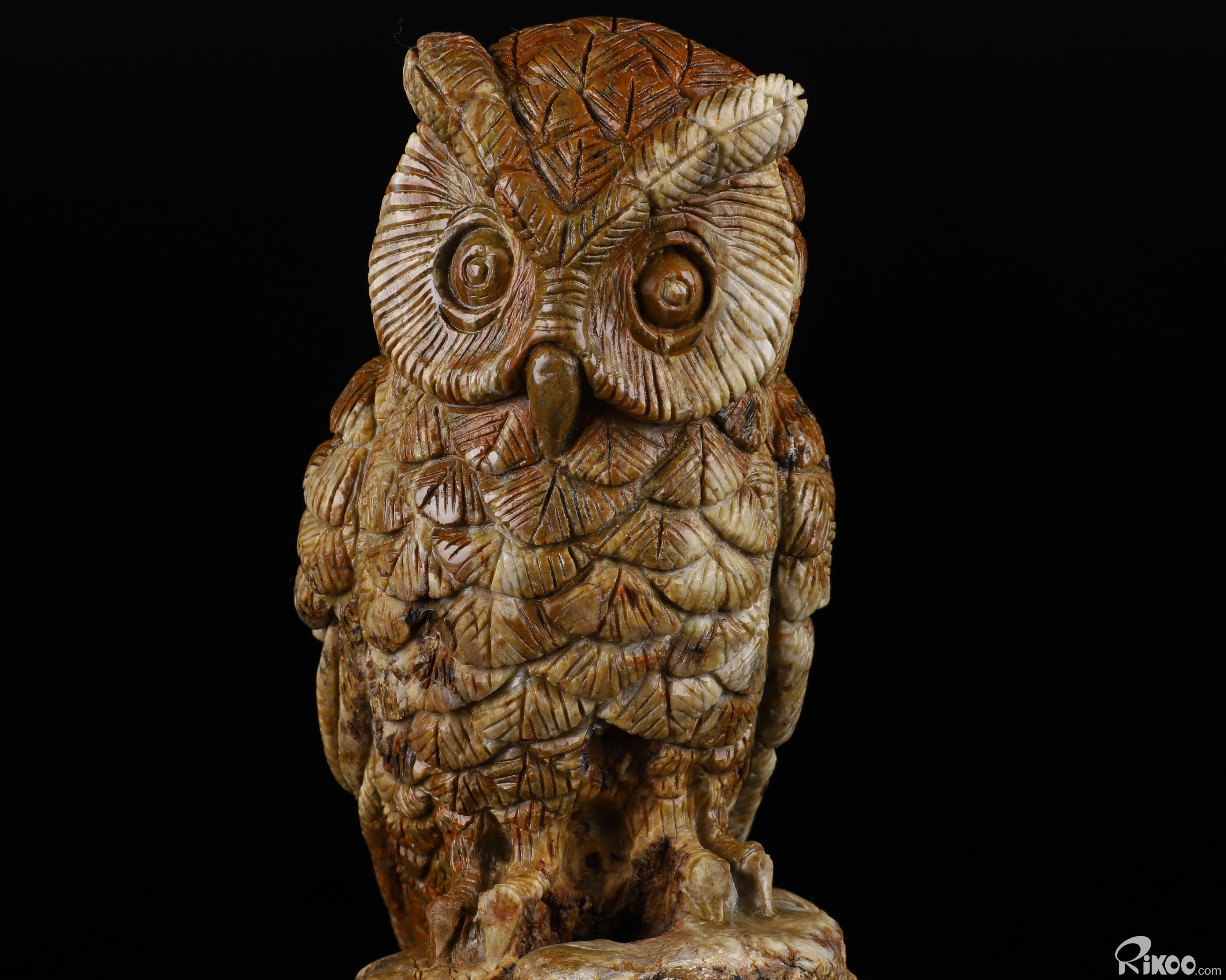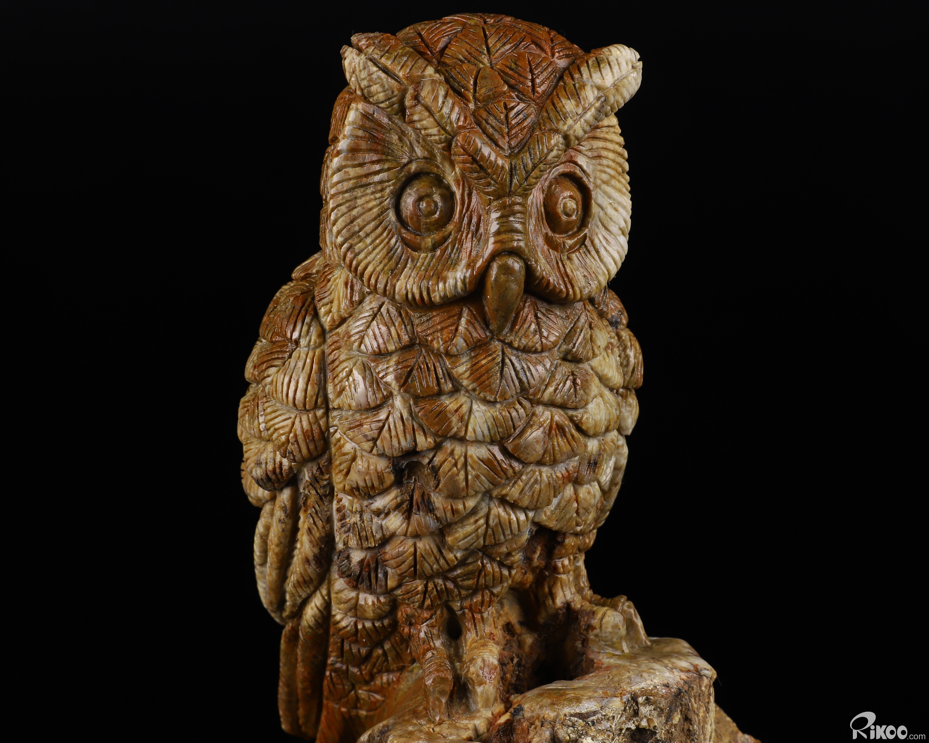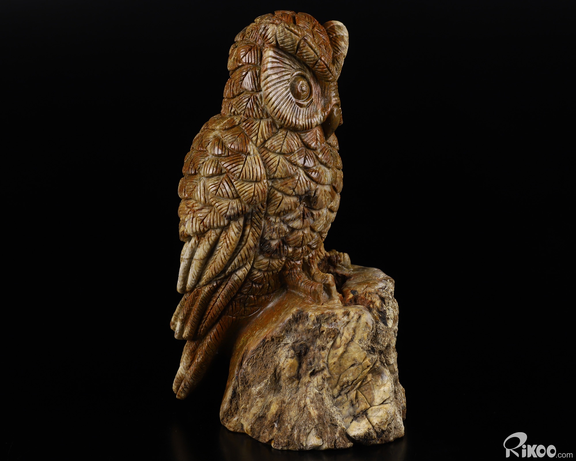 6.5" Petrified Wood BRANCH Carved Crystal Owl, Realistic