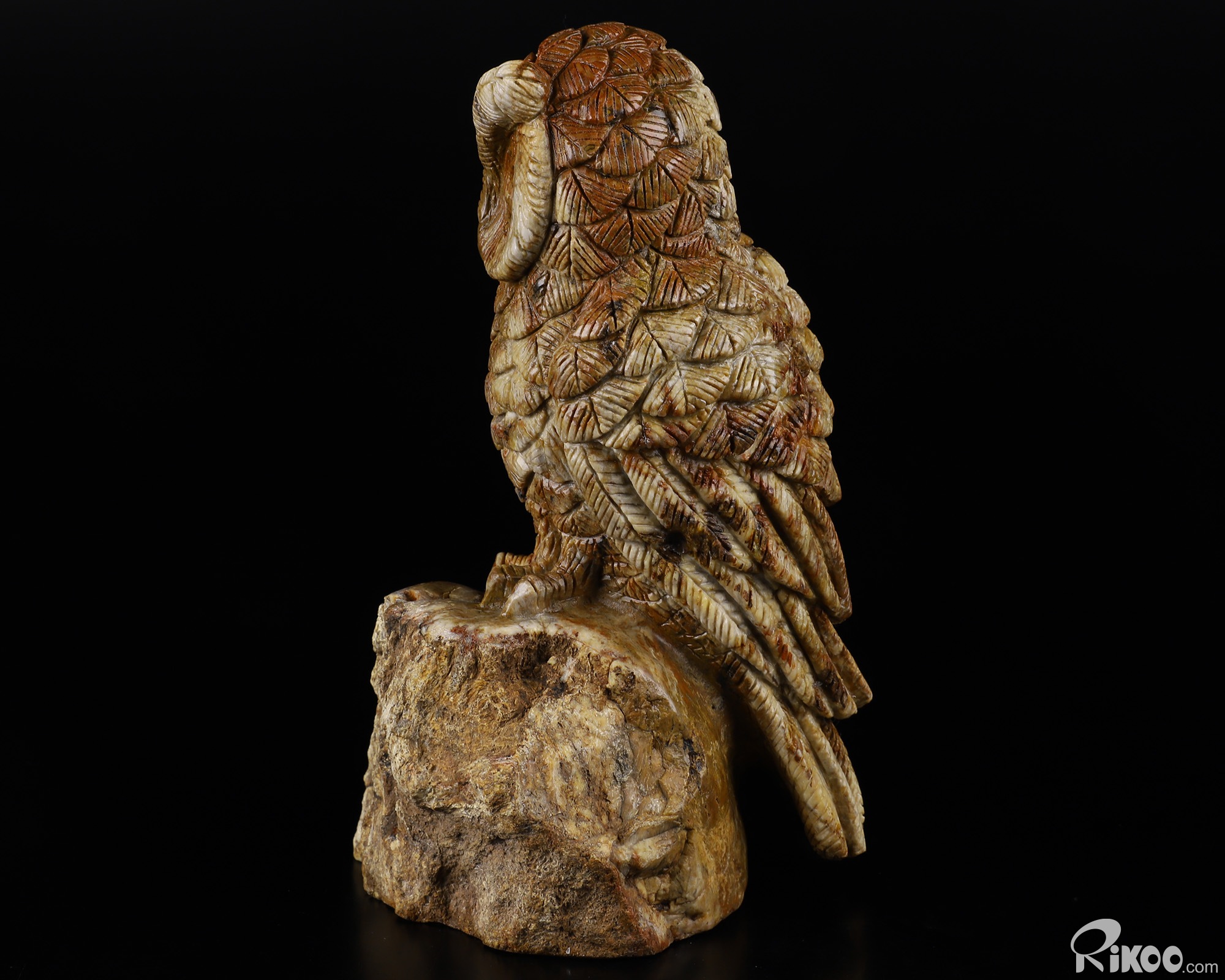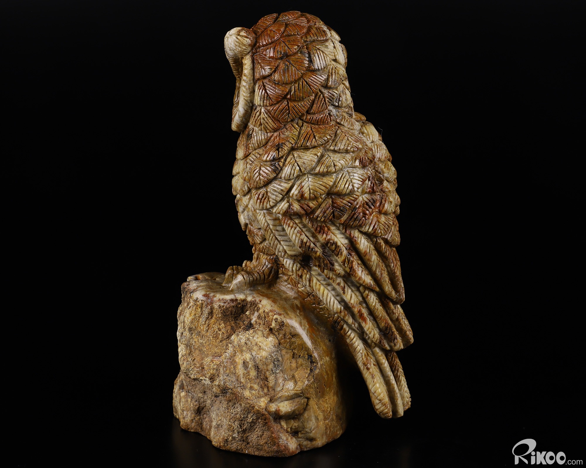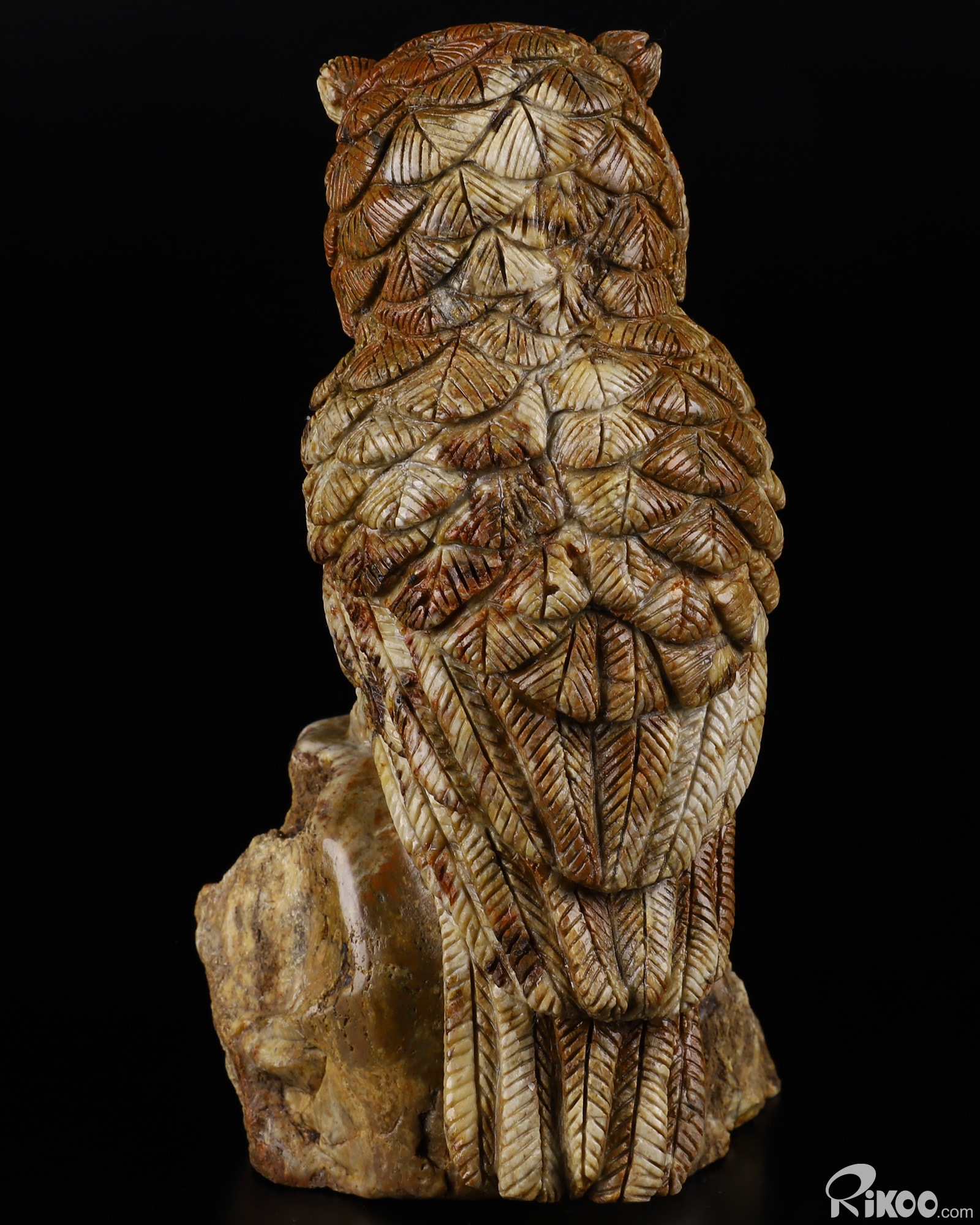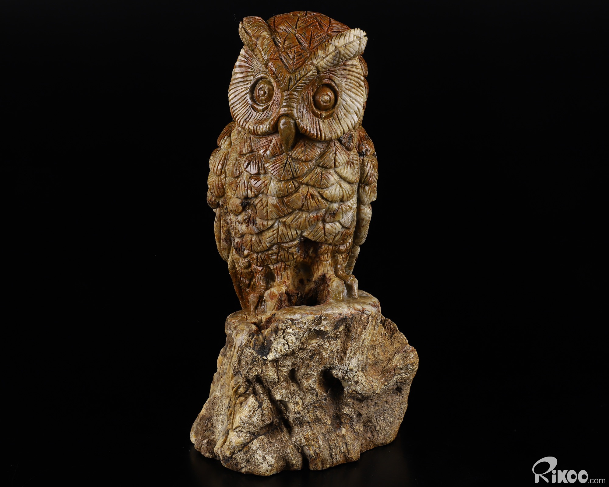 6.5" Petrified Wood BRANCH Carved Crystal Owl, Realistic