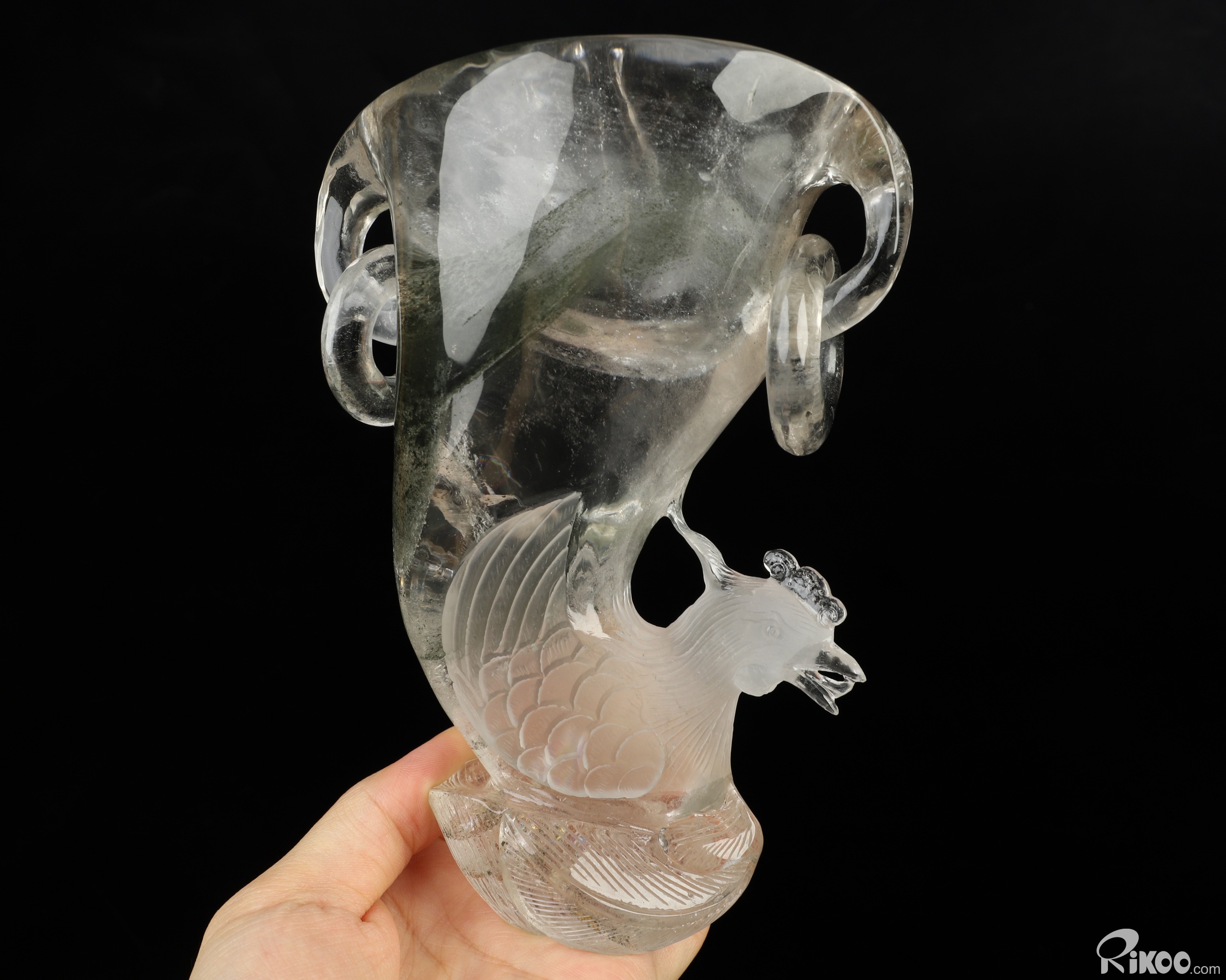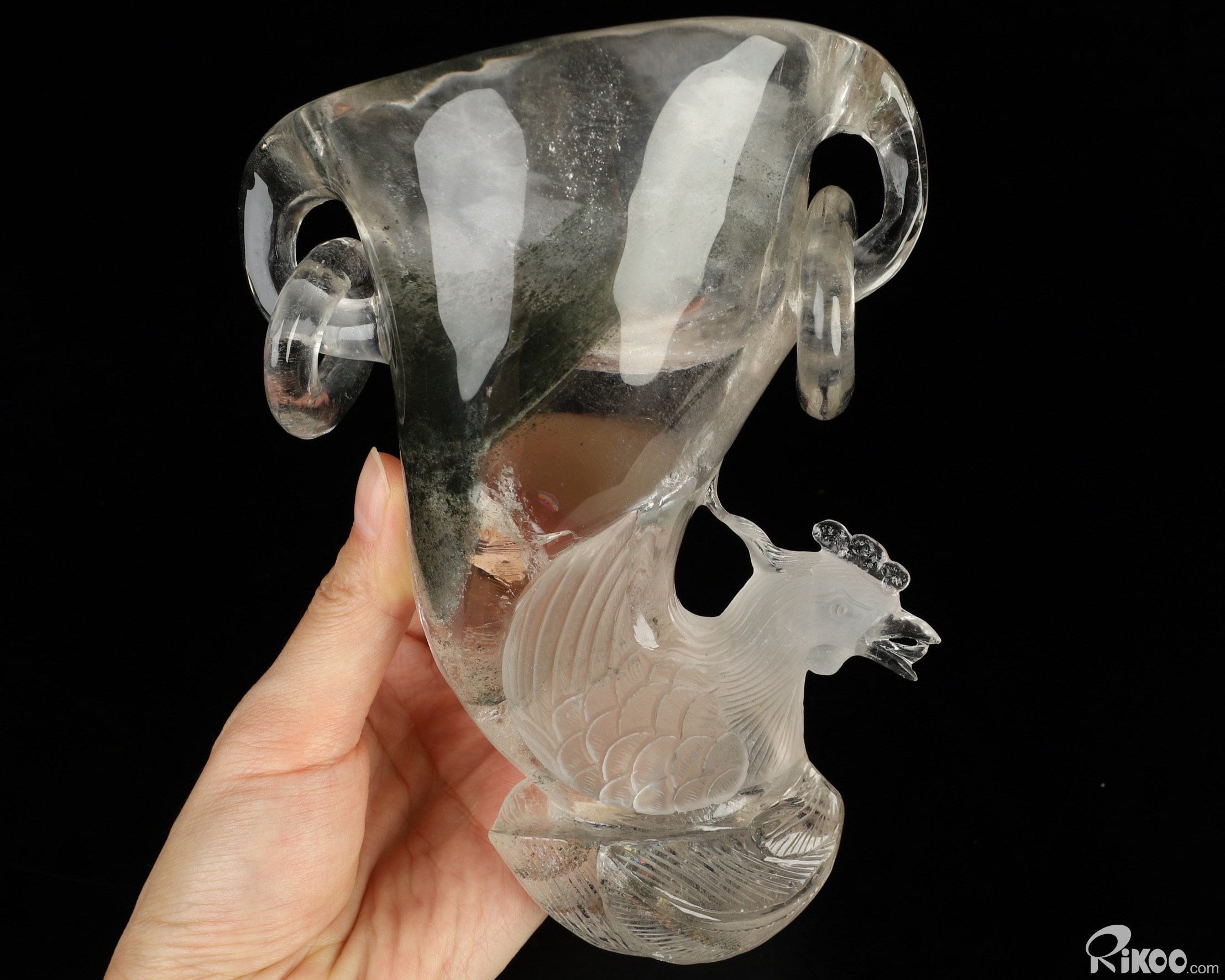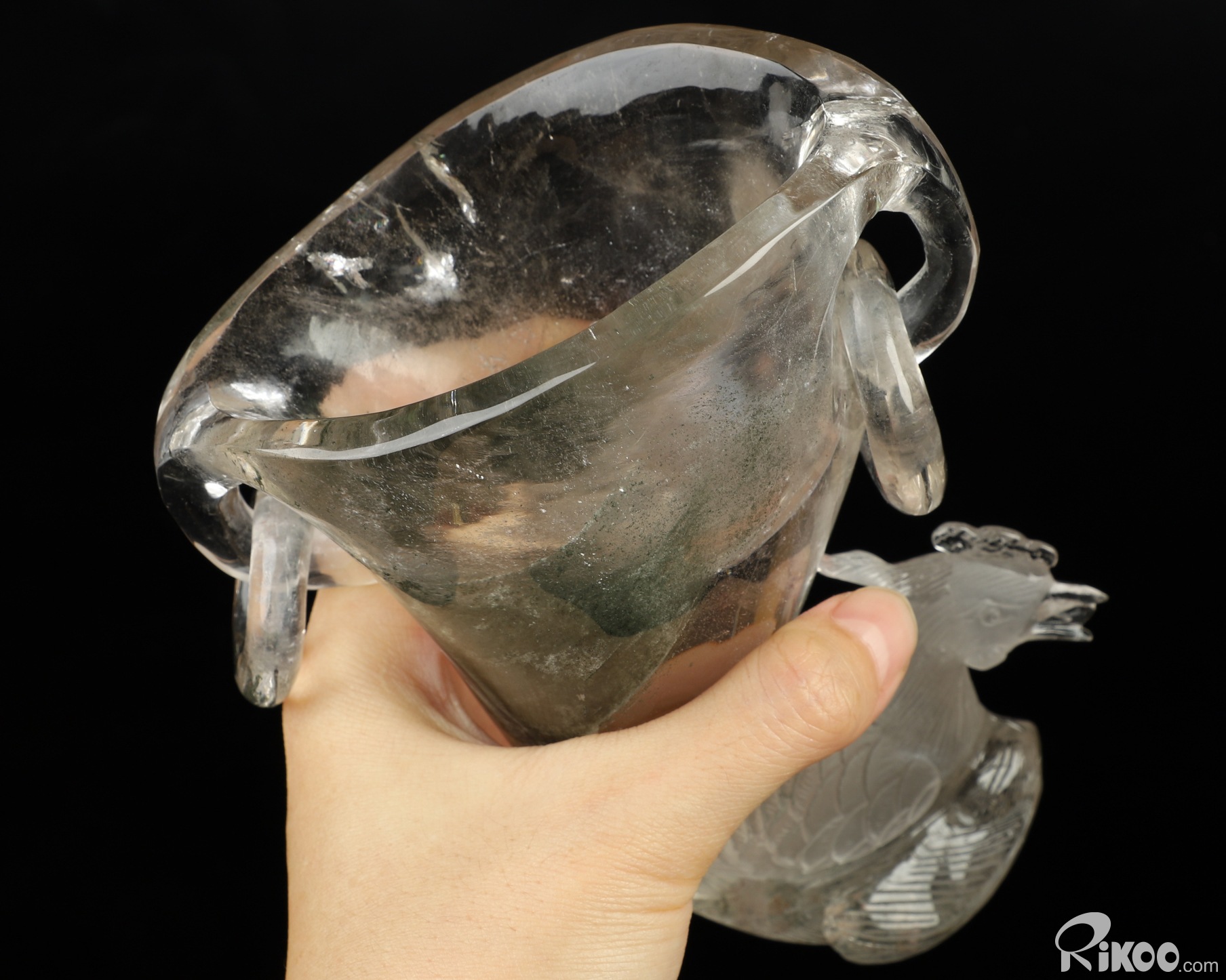 6.5" Phantom Quartz Rock Crystal Hand Carved Peacock Crystal Cup, Crystal Healing