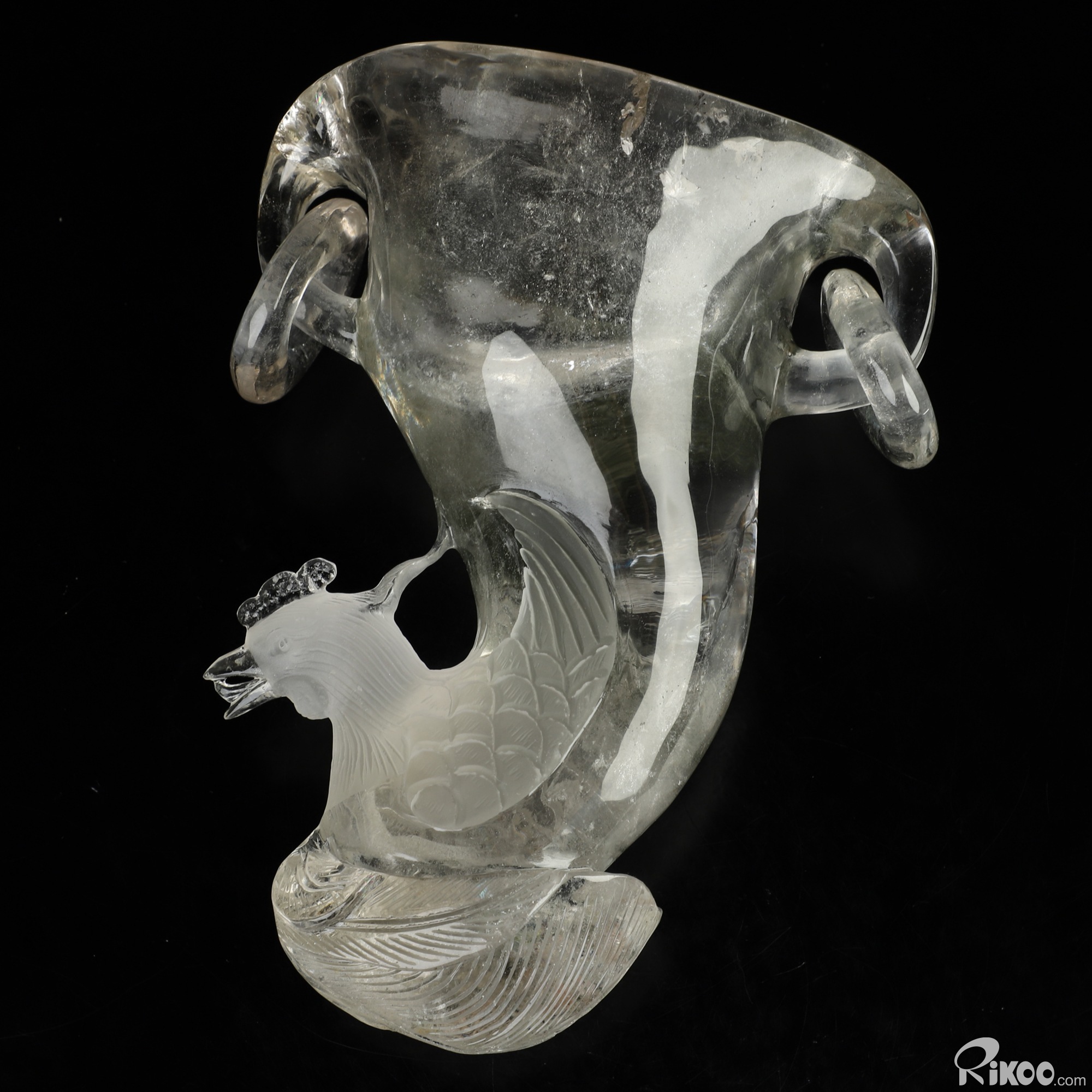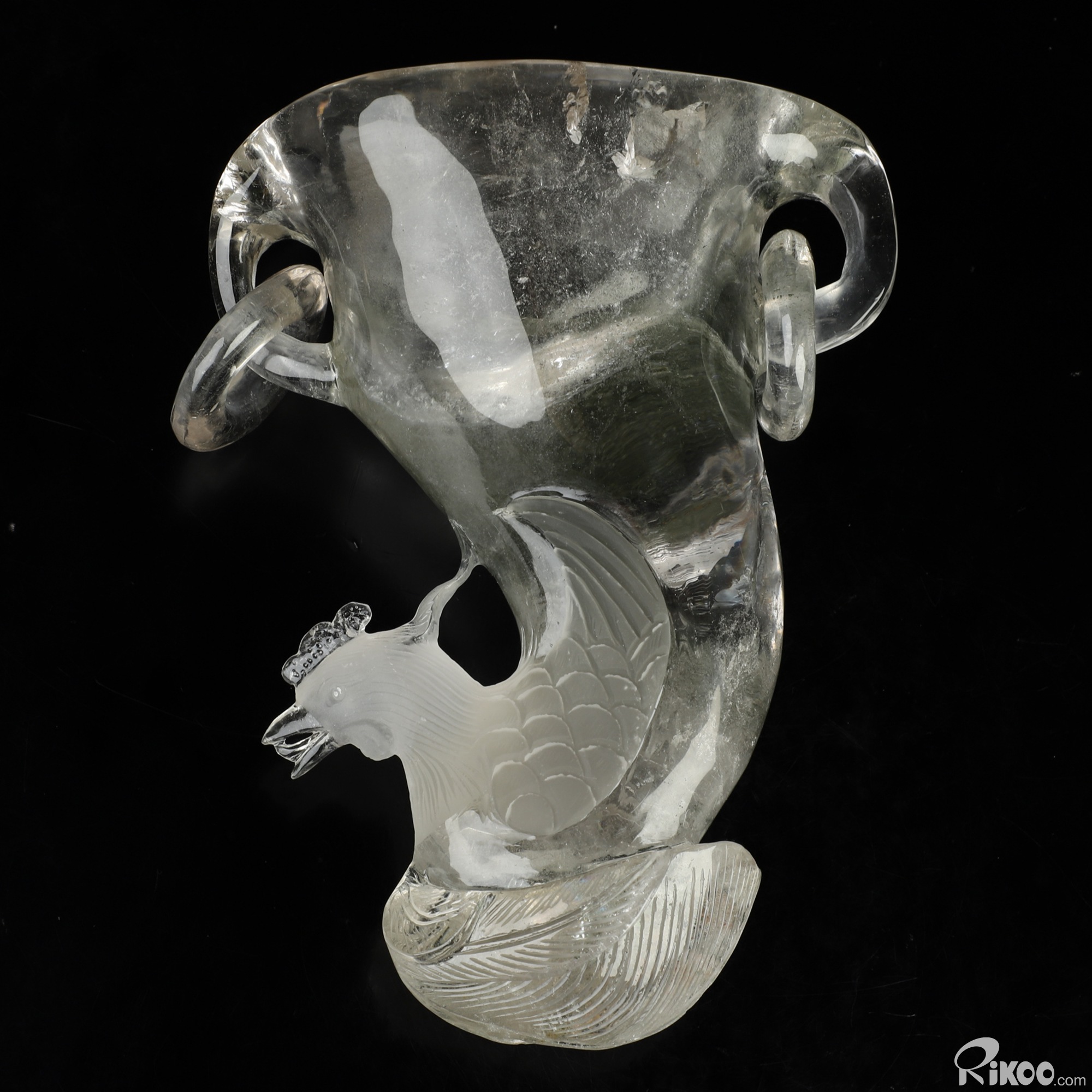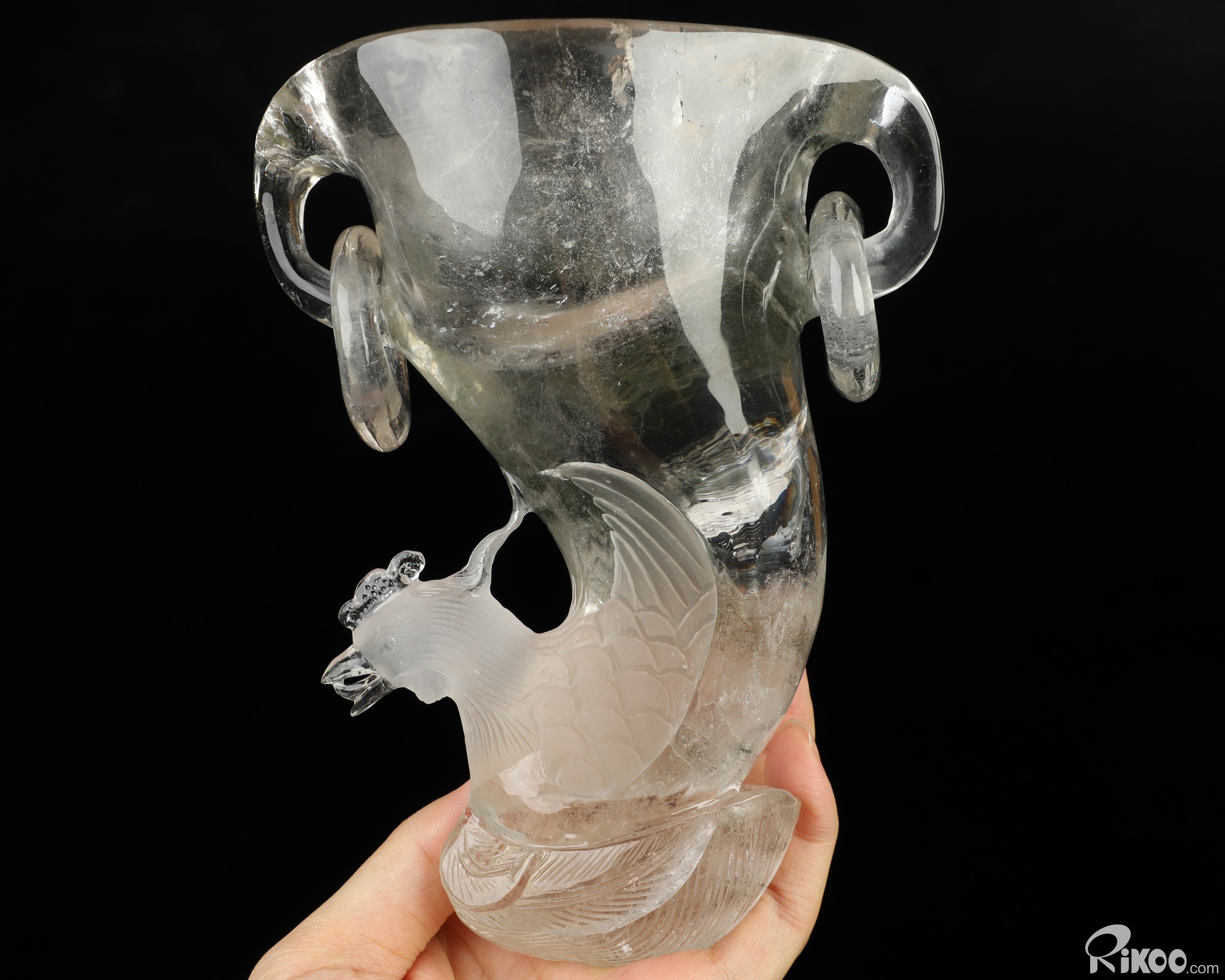 6.5" Phantom Quartz Rock Crystal Hand Carved Peacock Crystal Cup, Crystal Healing