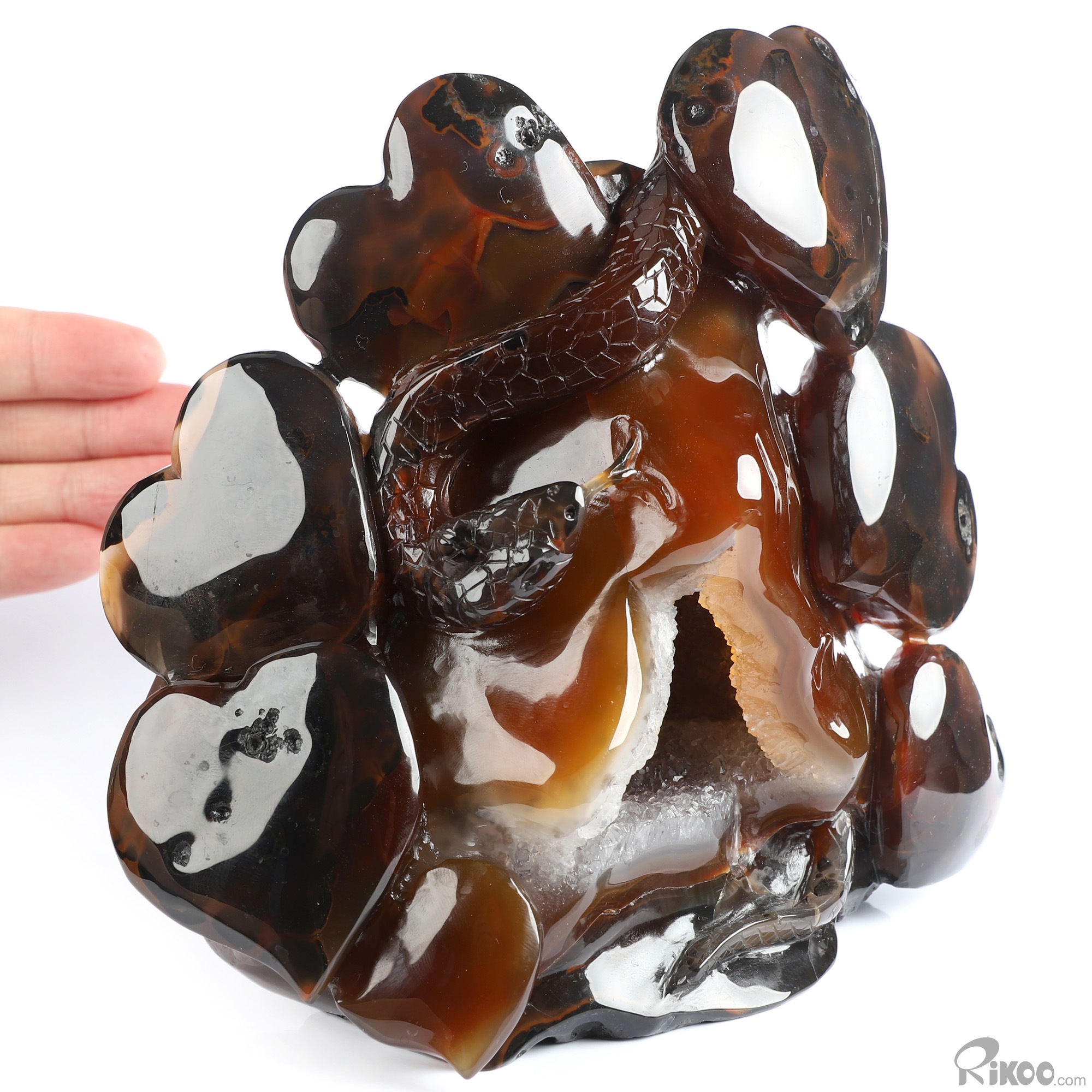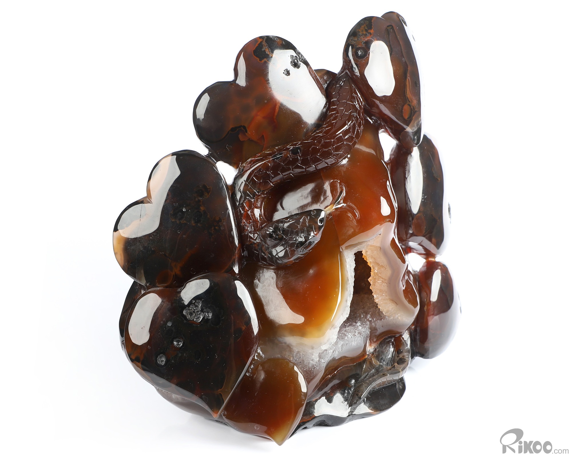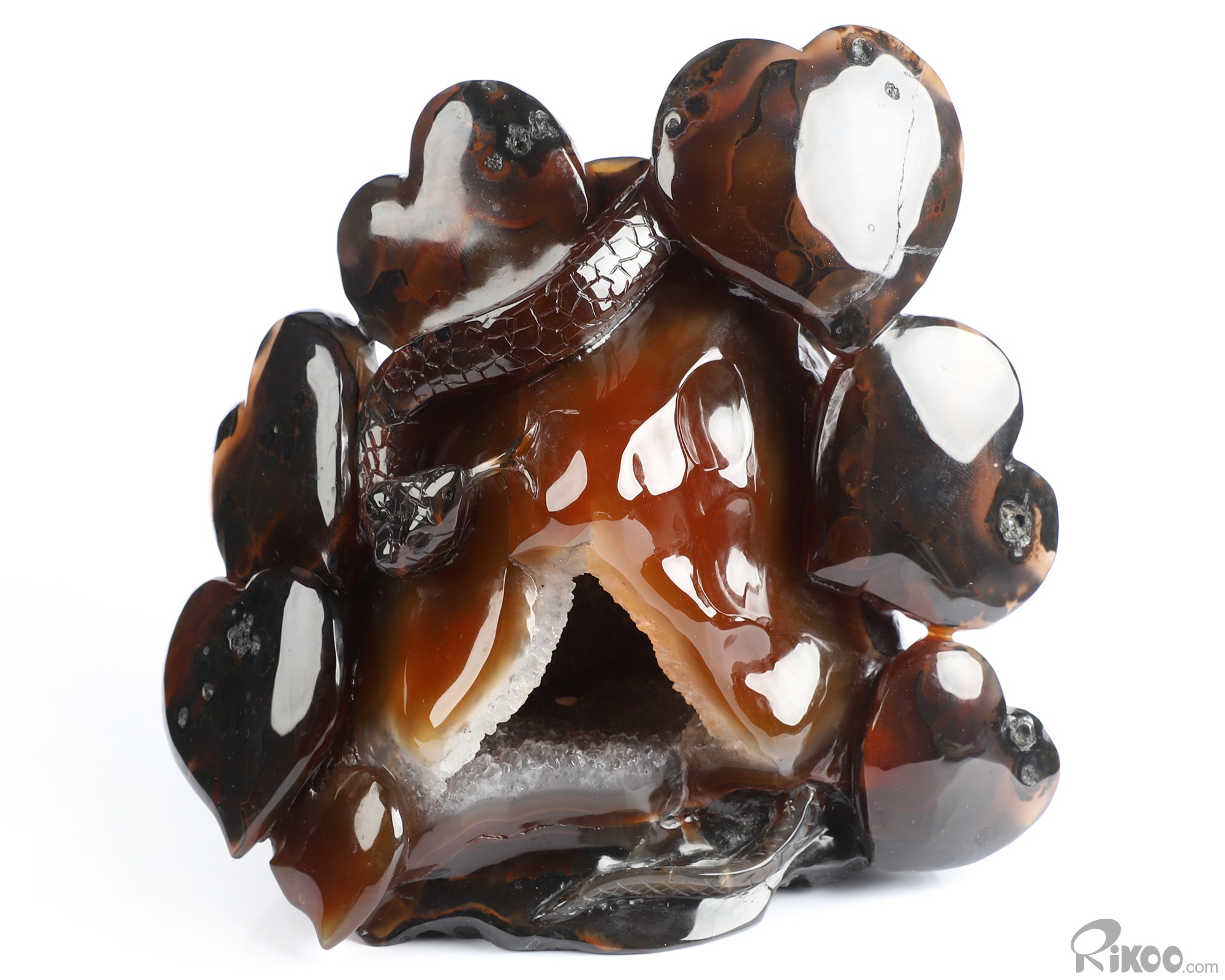 6.5" Premium Brazilian Agate Hand Carved Crystal Snake & Hearts Sculpture, Crystal Healing