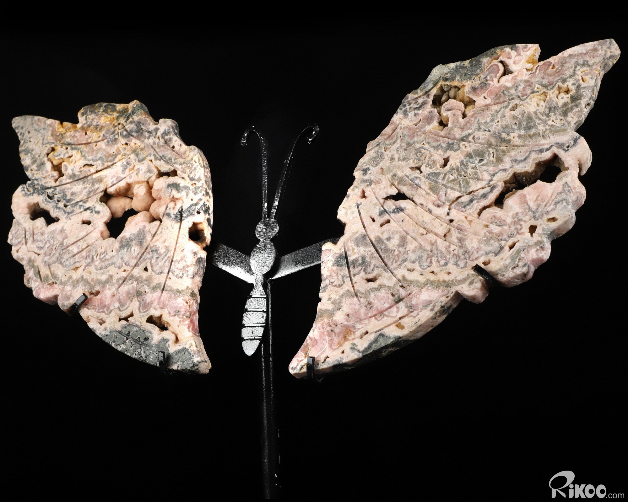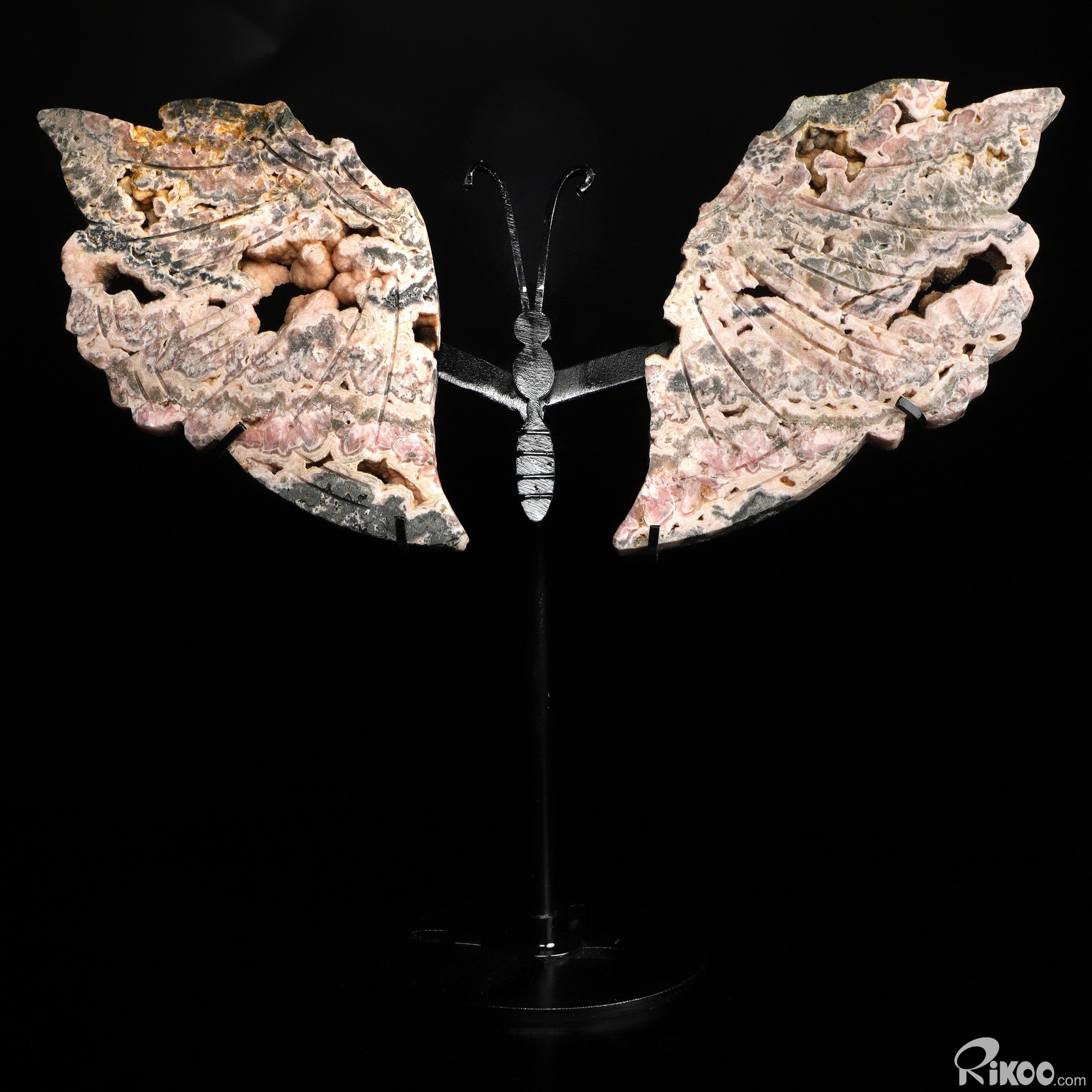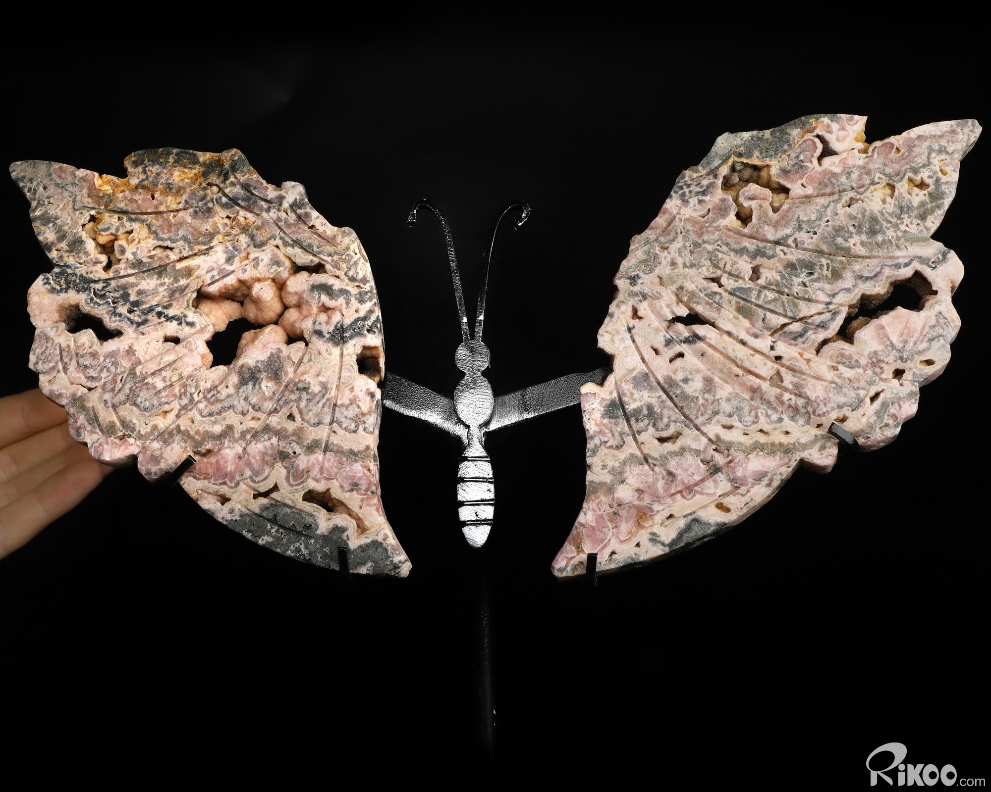 6.5" Rhodochrosite Hand Carved Crystal butterfly Sculpture with Stand, Crystal Healing