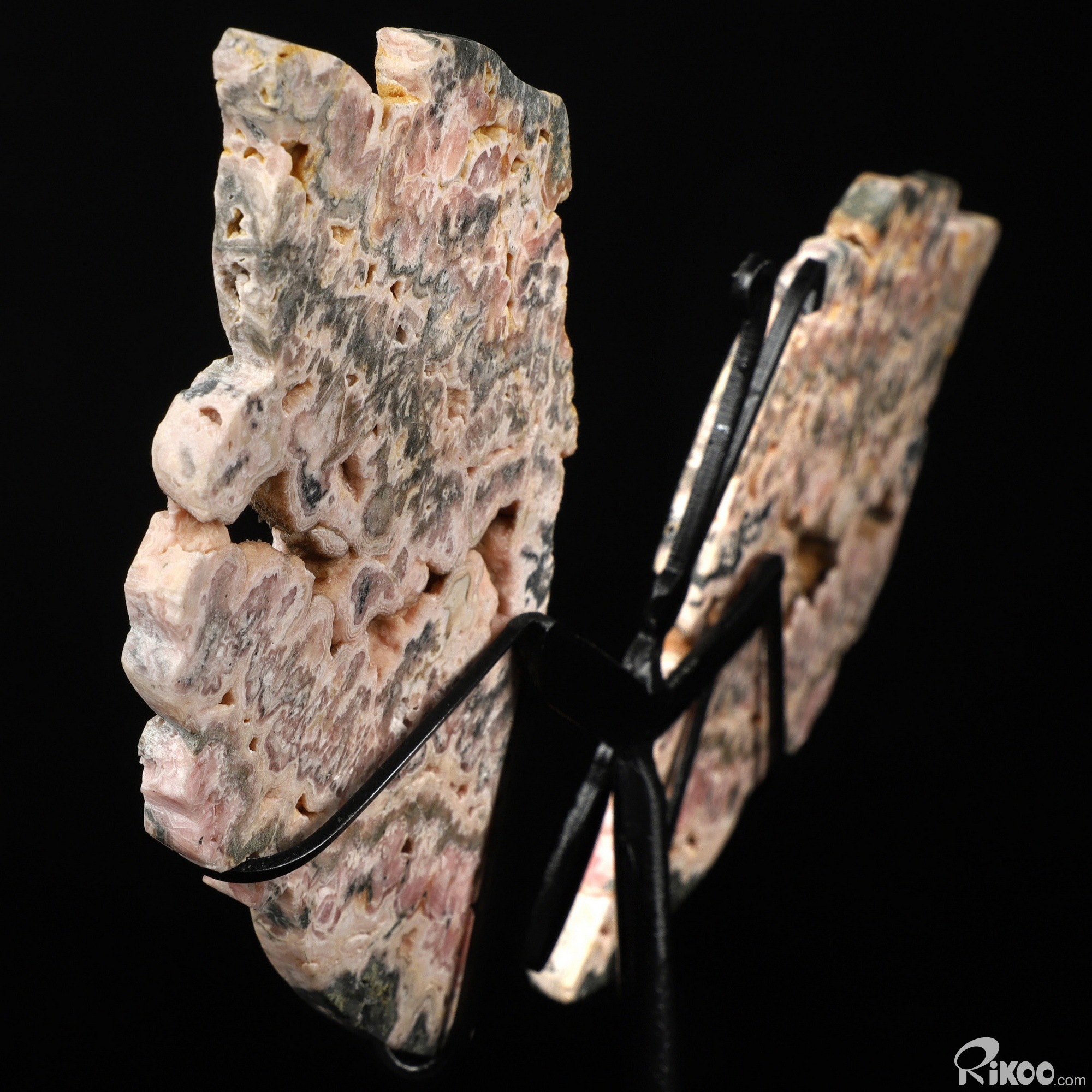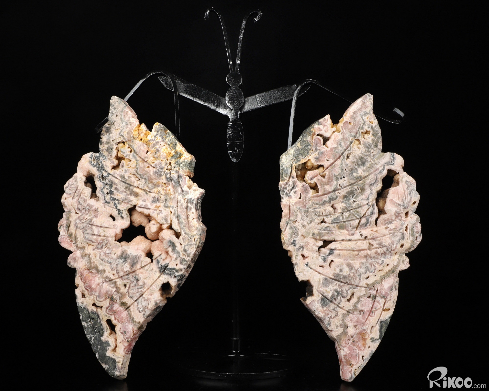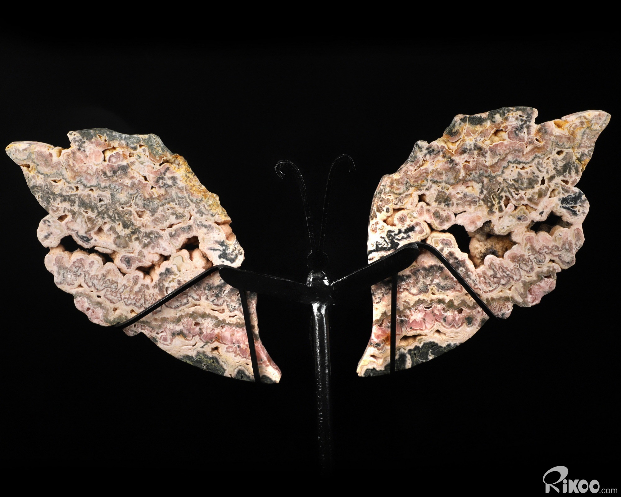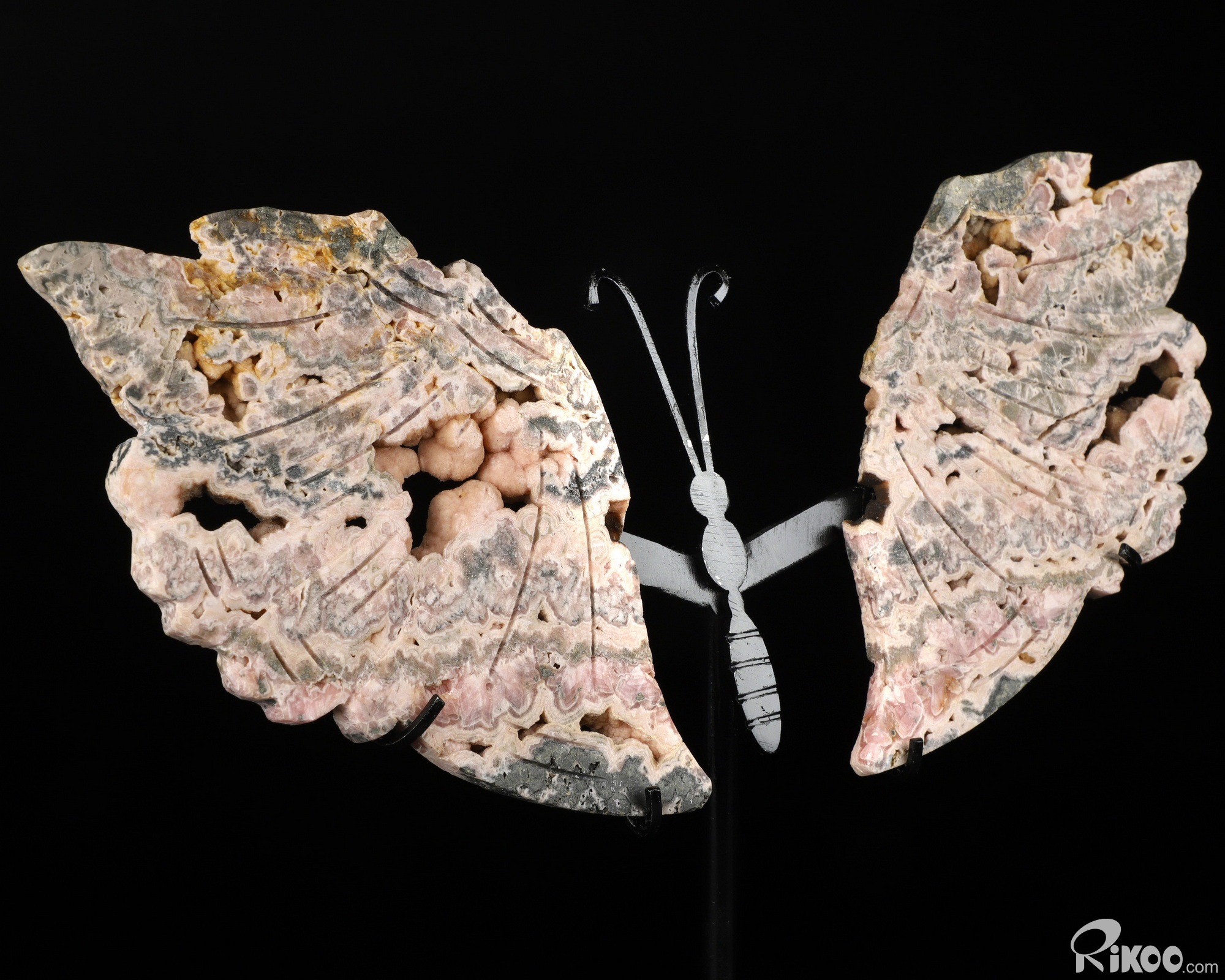 6.5" Rhodochrosite Hand Carved Crystal butterfly Sculpture with Stand, Crystal Healing