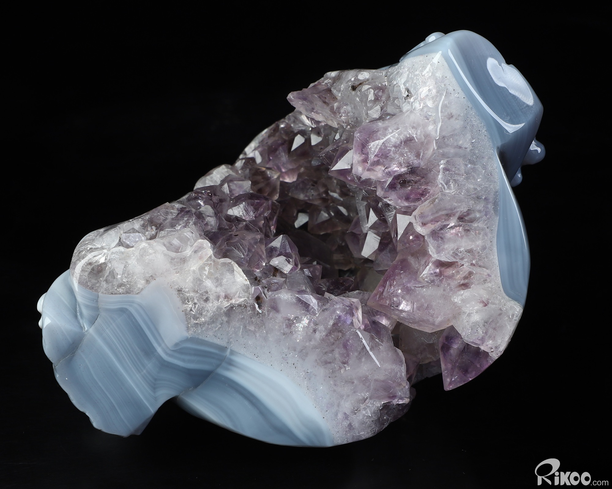 You are looking at an Agate Amethyst Geode sculpture. The sculpture is 6.6 inches long.