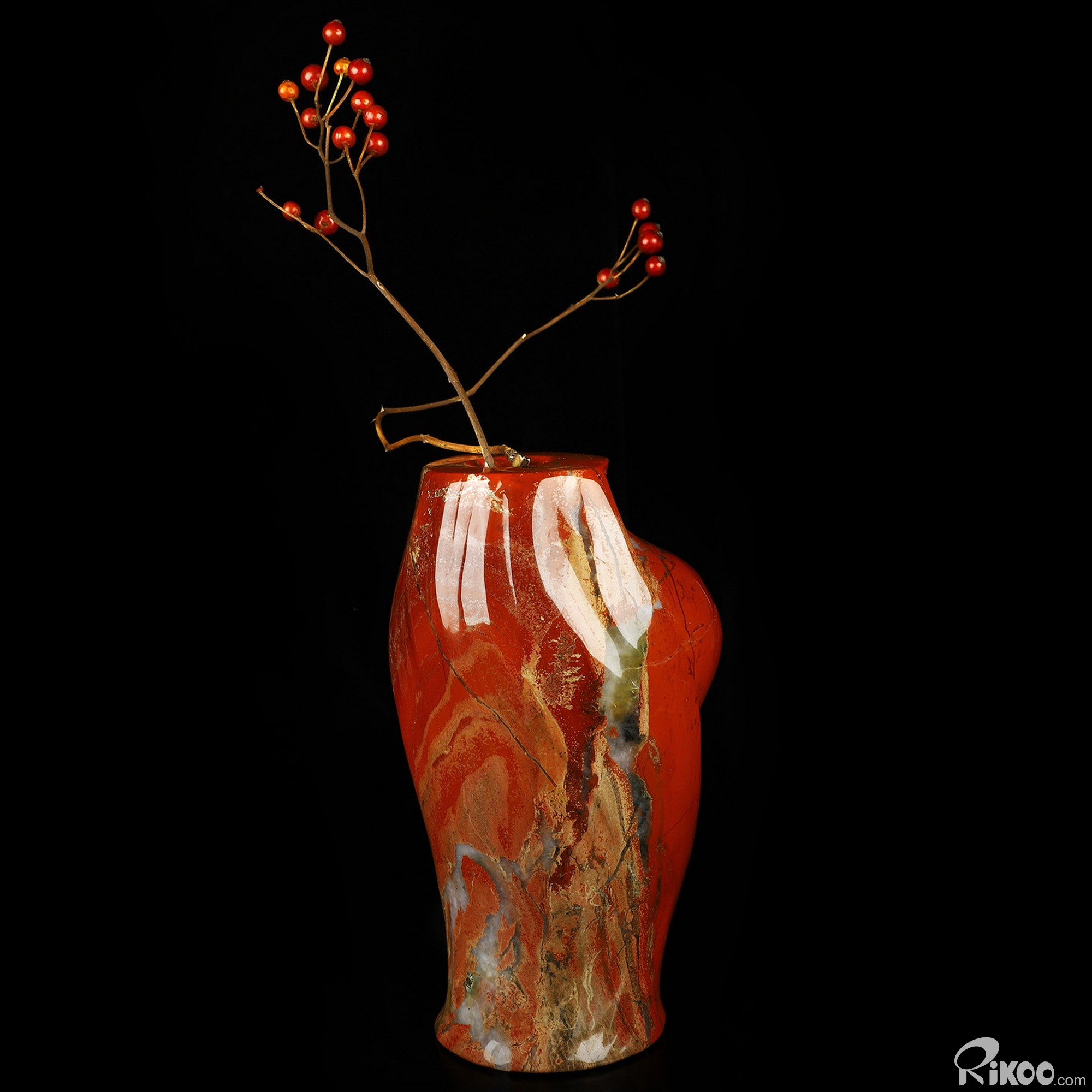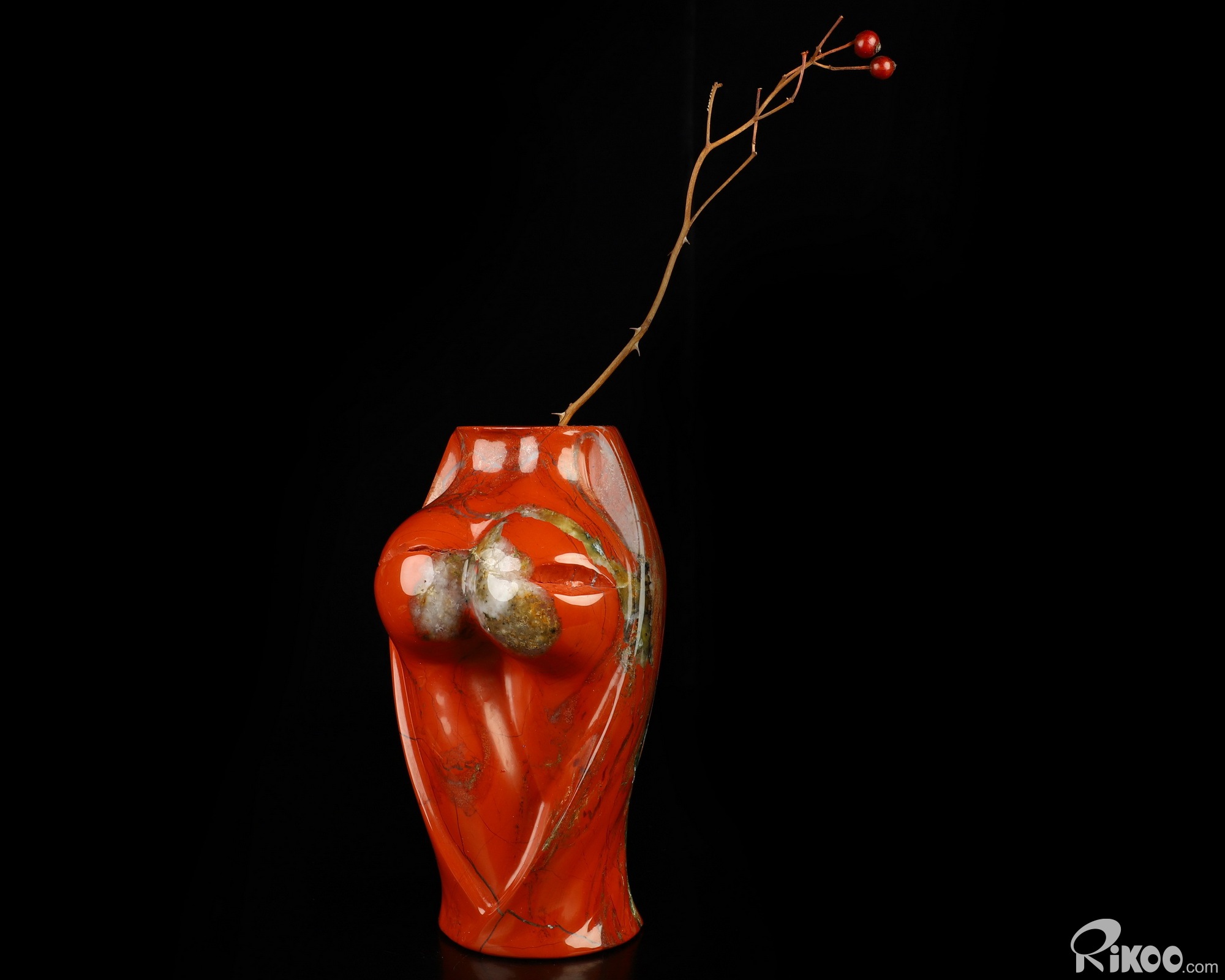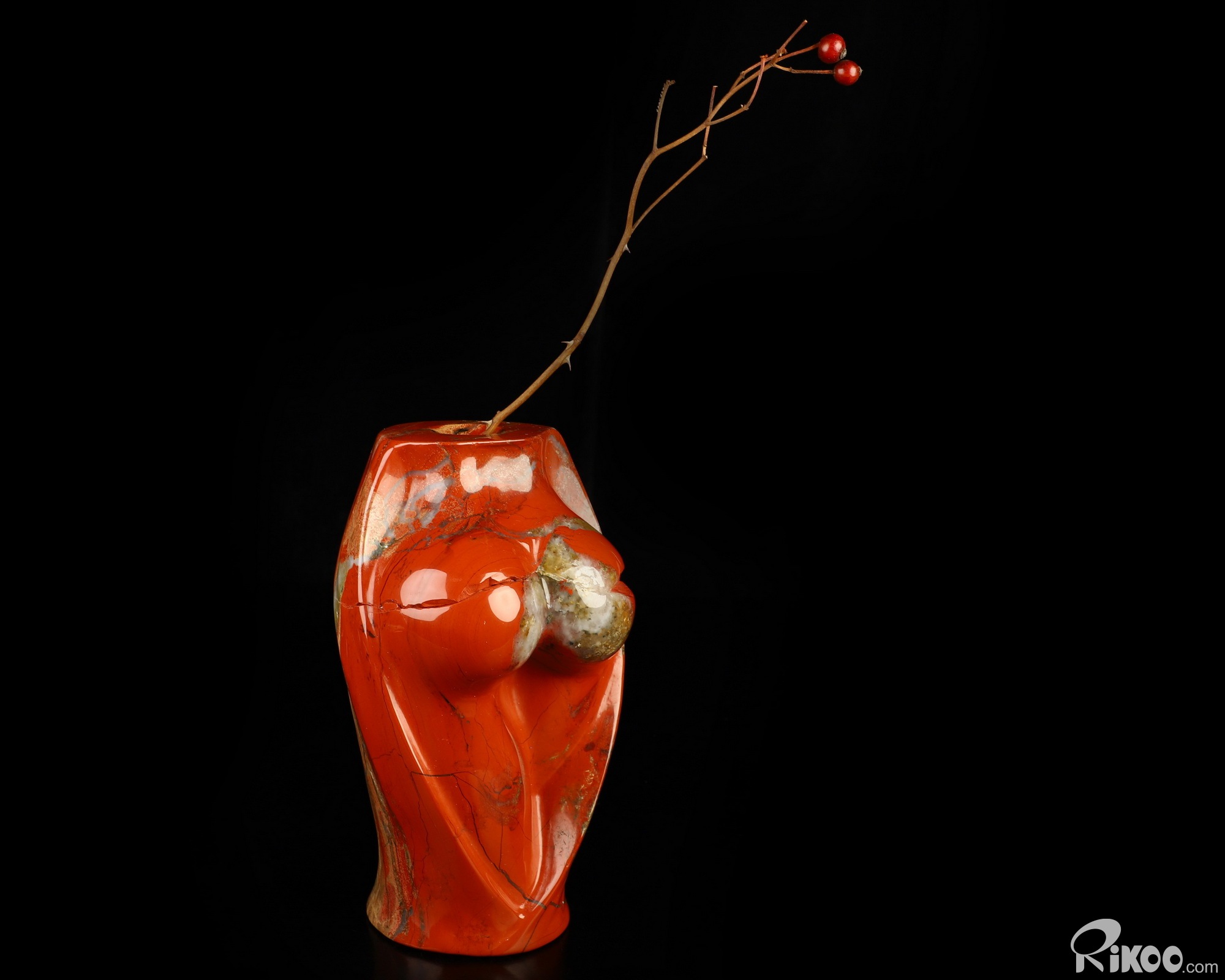 6.6" Red Jasper Hand Carved Crystal Vase Sculpture, Crystal Healing