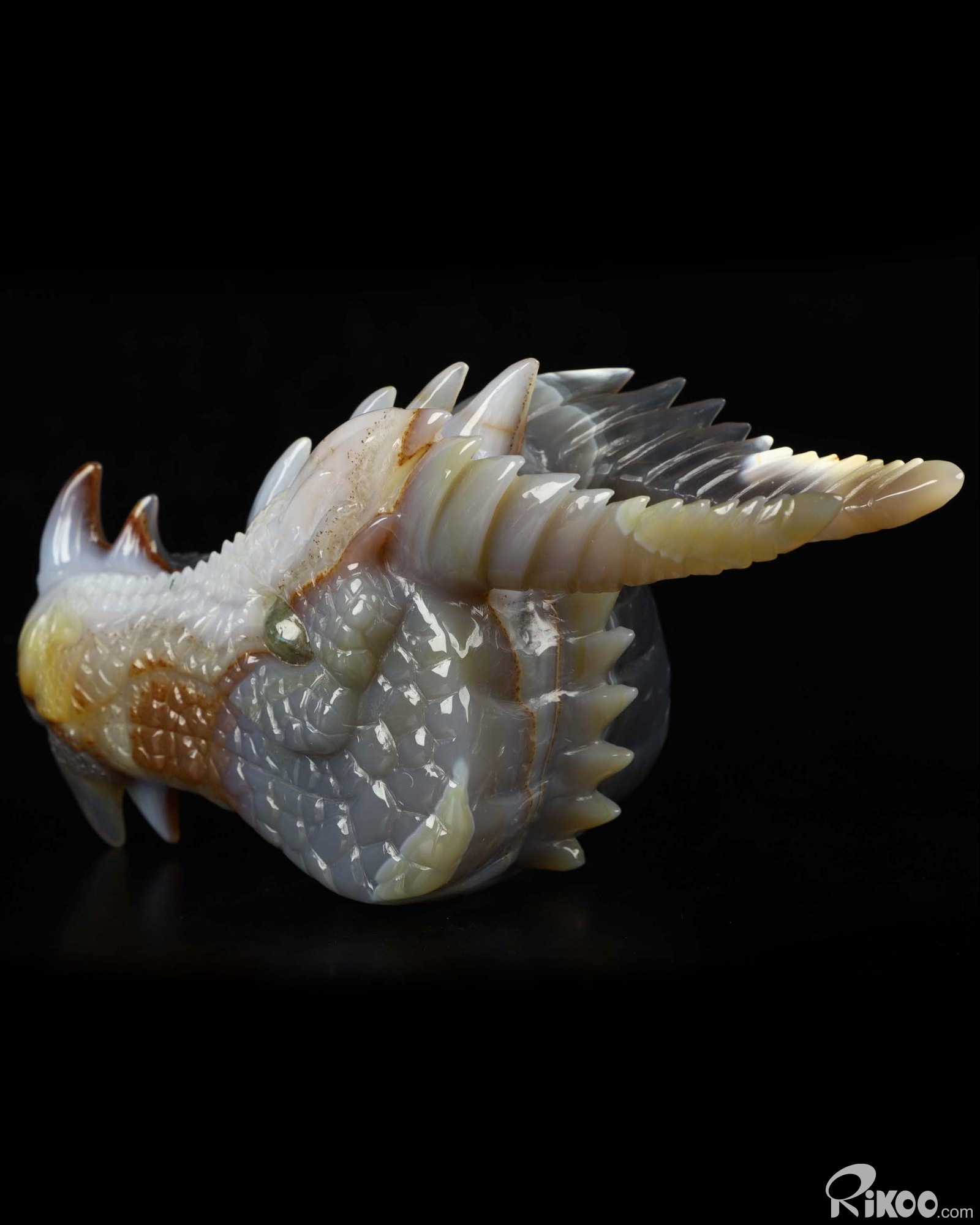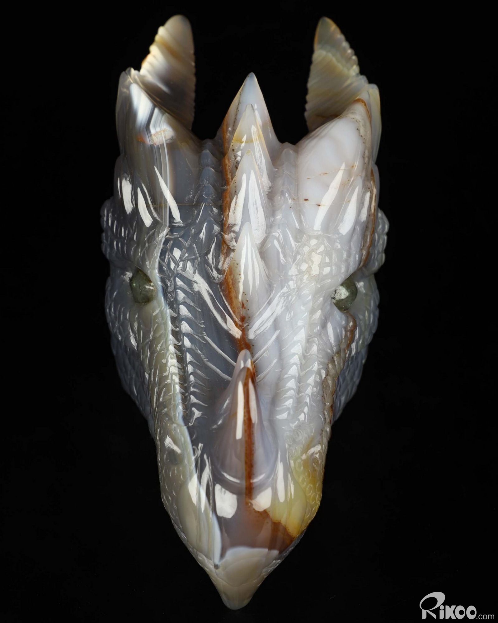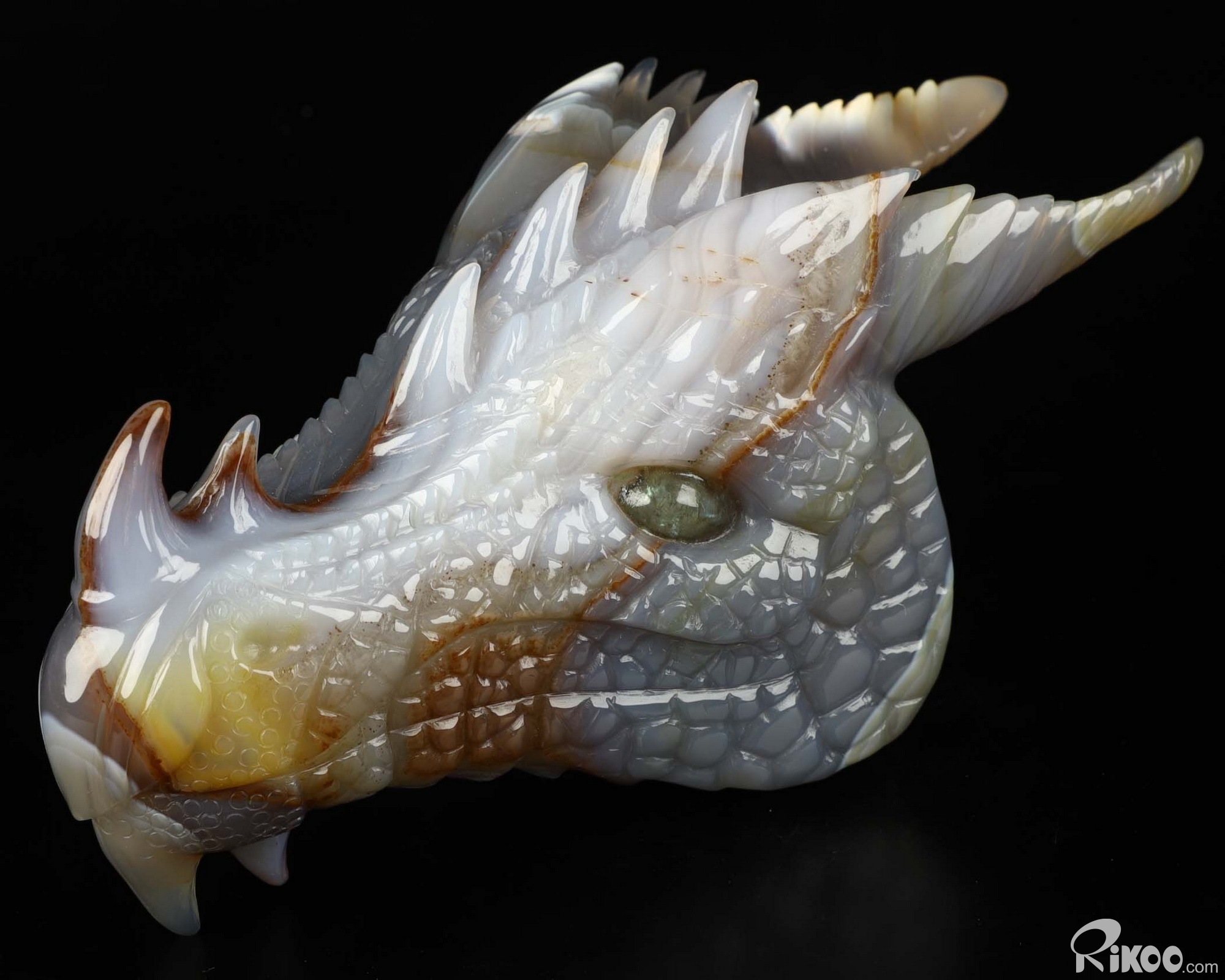 6.7" Agate Carved Crystal Dragon & Labradorite Eyes Sculpture, Crystal Healing