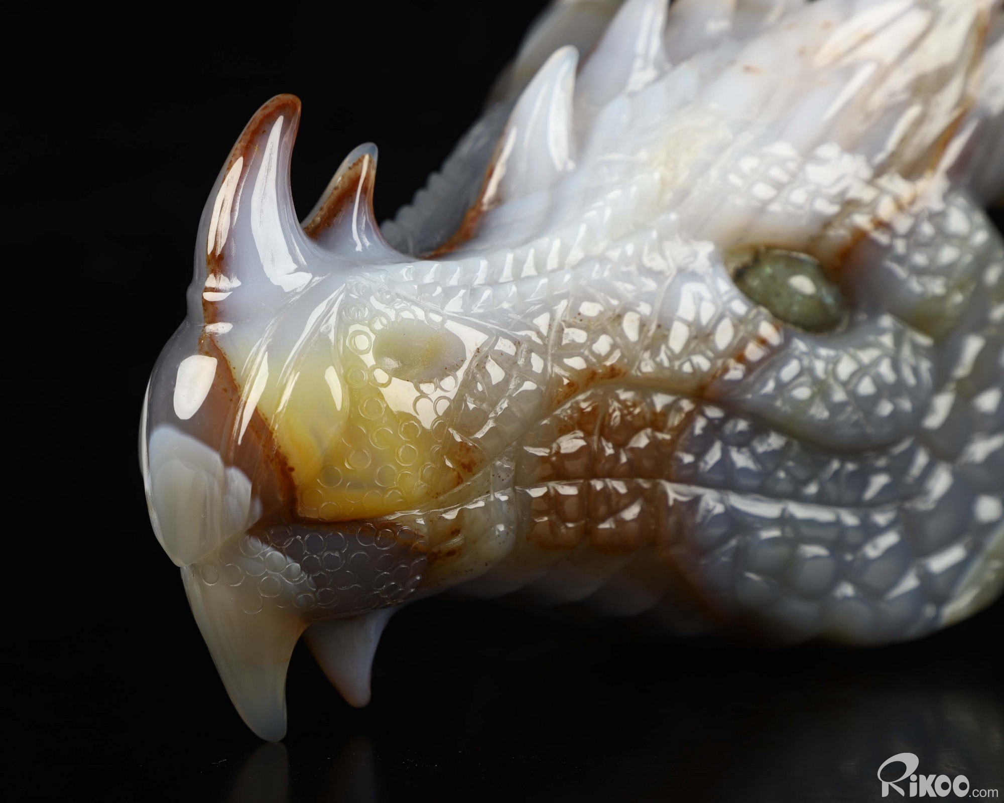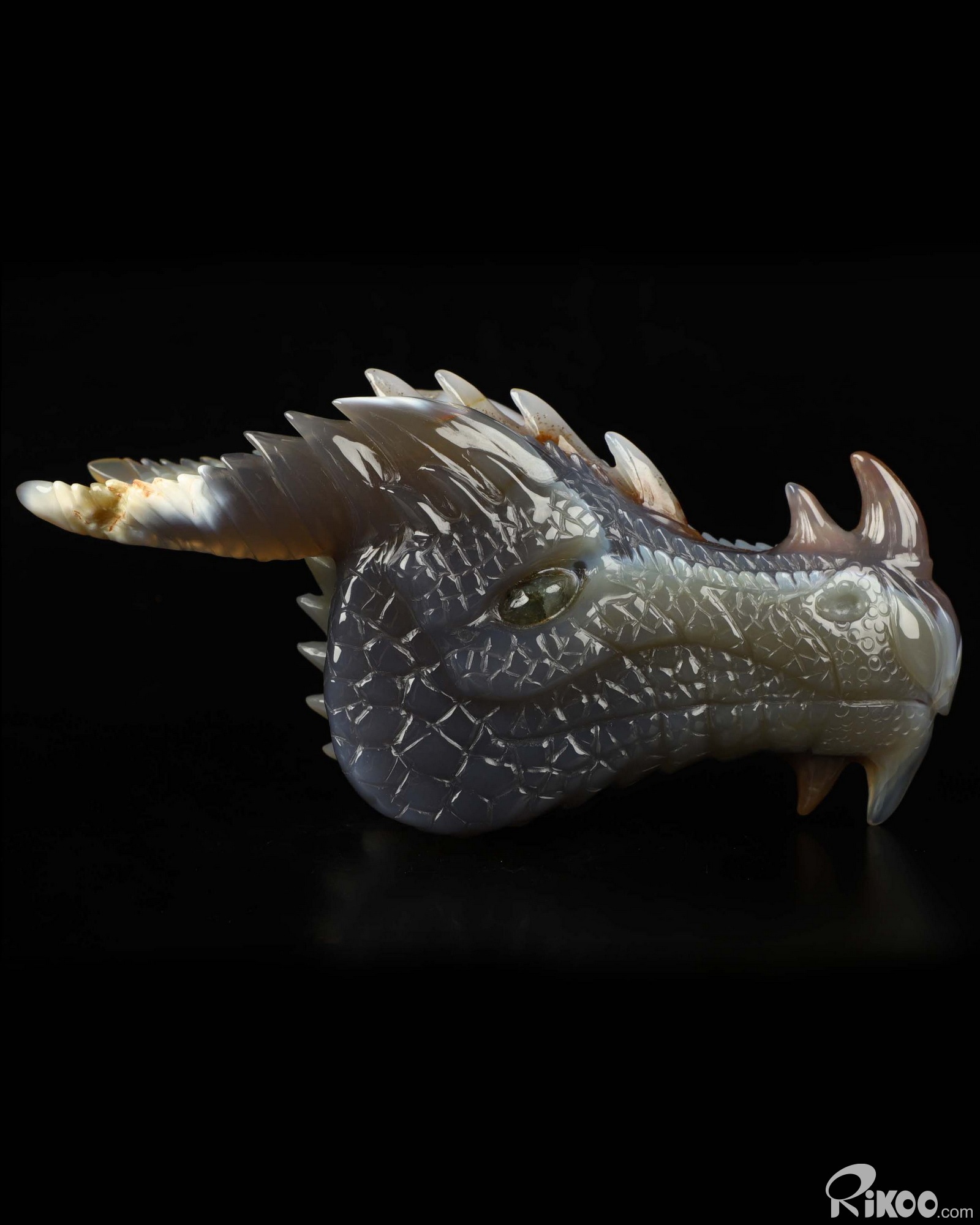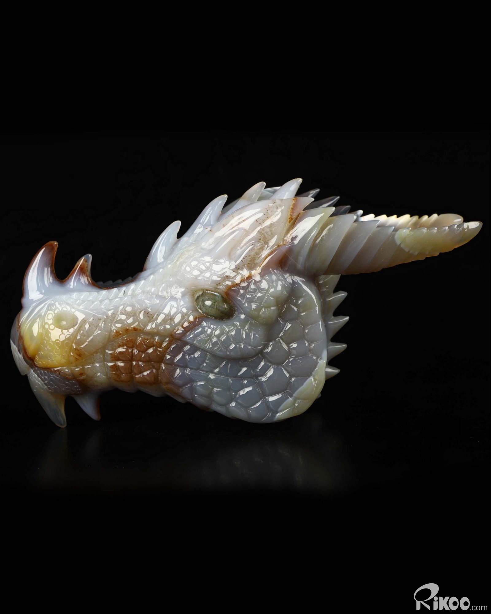 6.7" Agate Carved Crystal Dragon & Labradorite Eyes Sculpture, Crystal Healing