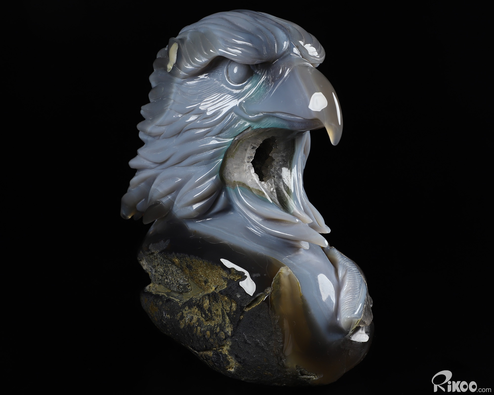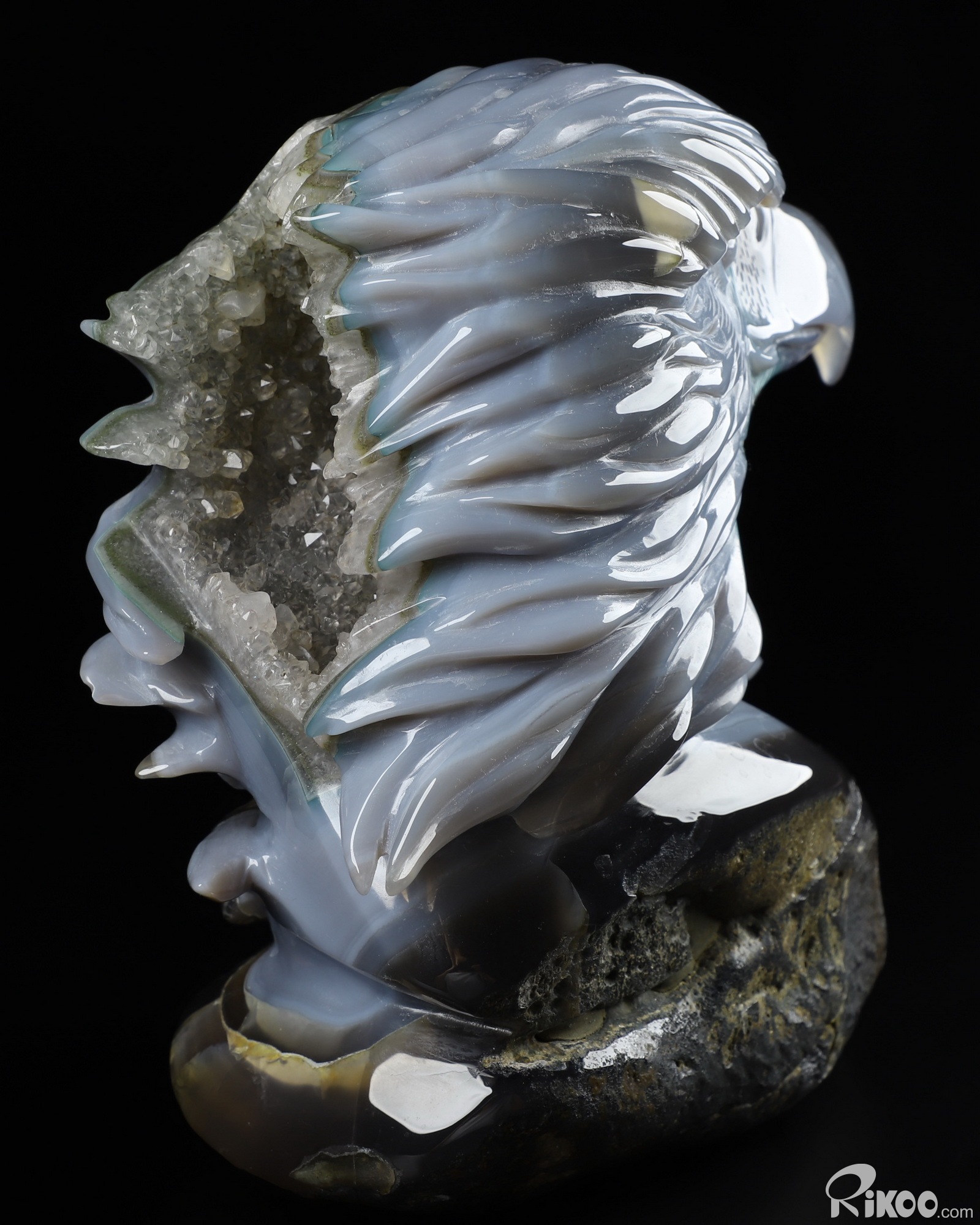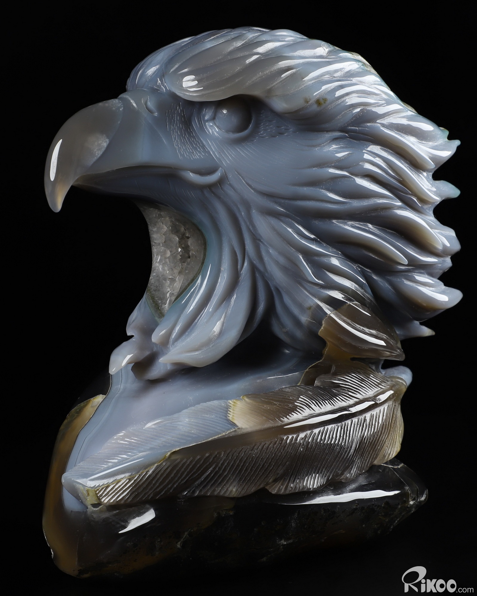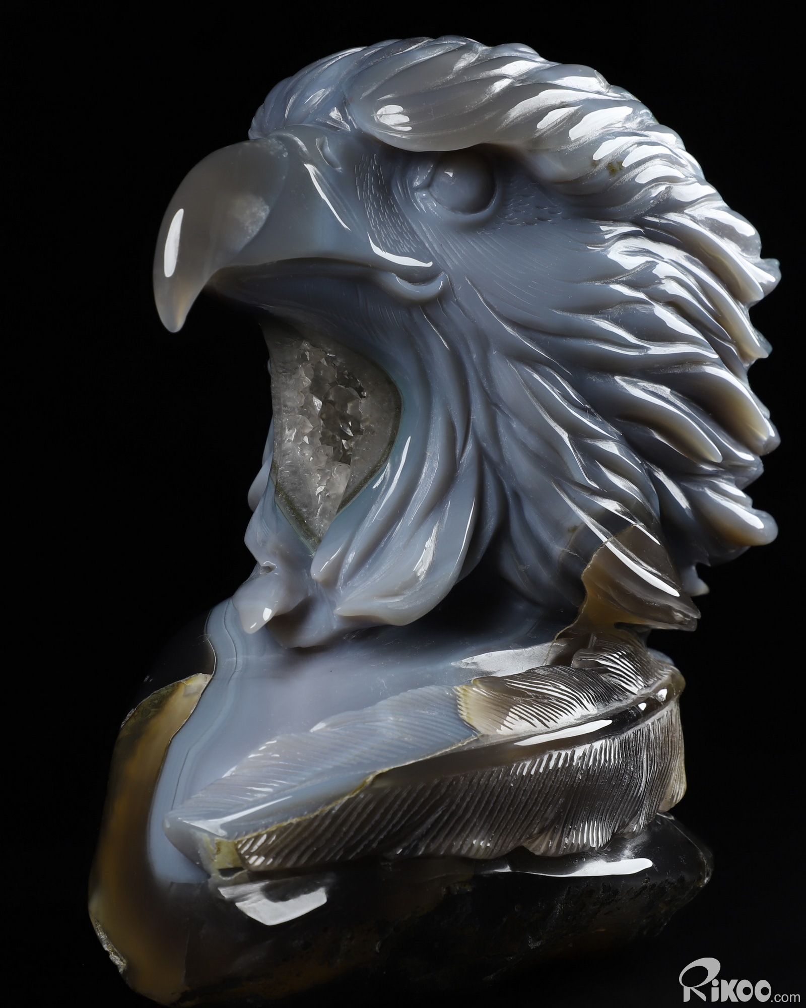 6.7" Agate Geode Carved Crystal Eagle Sculpture, Realistic