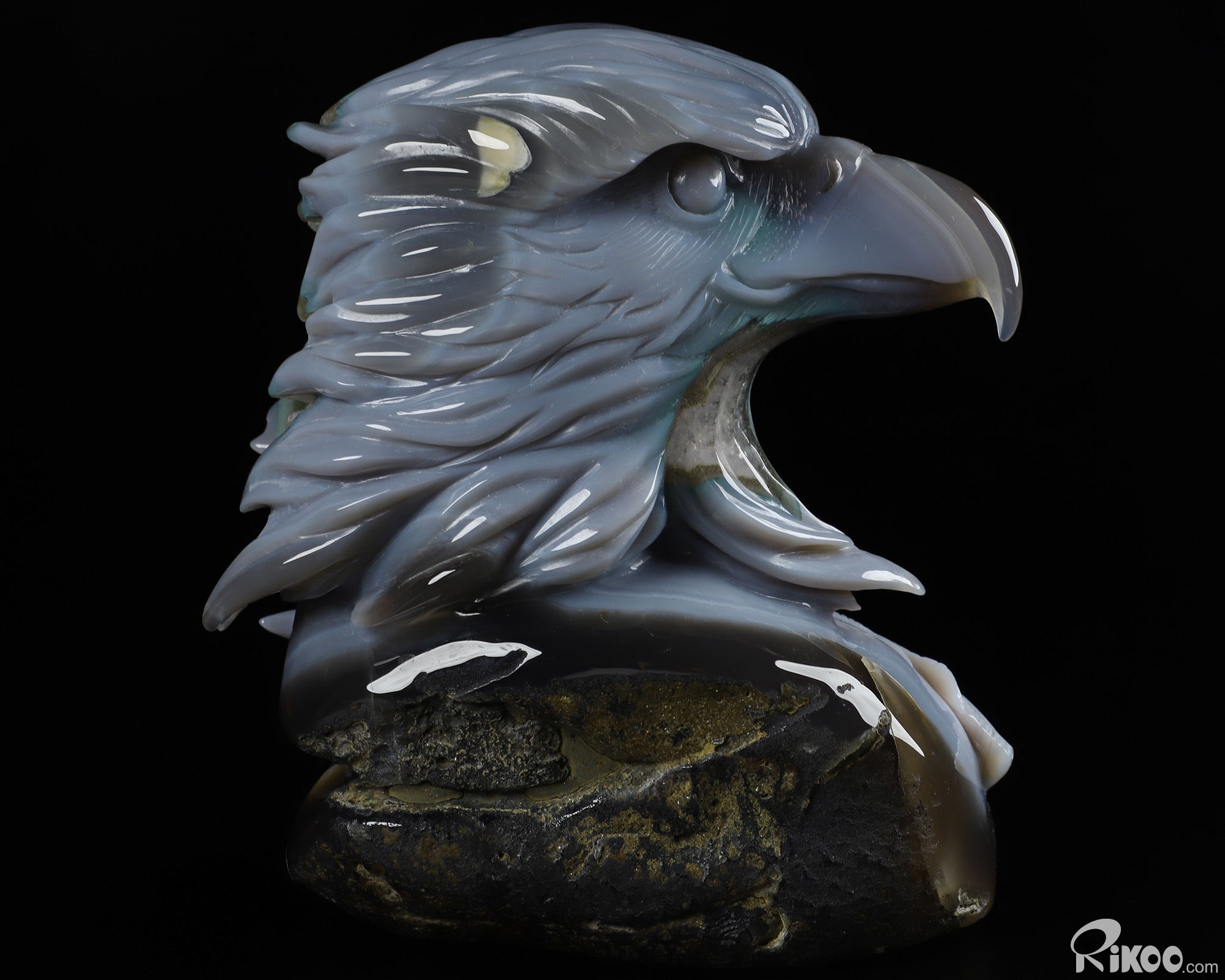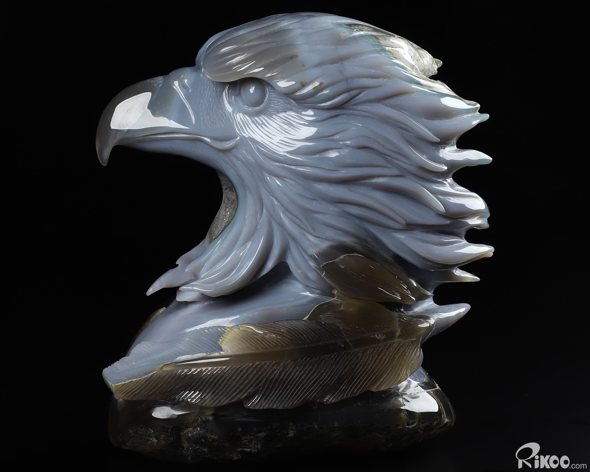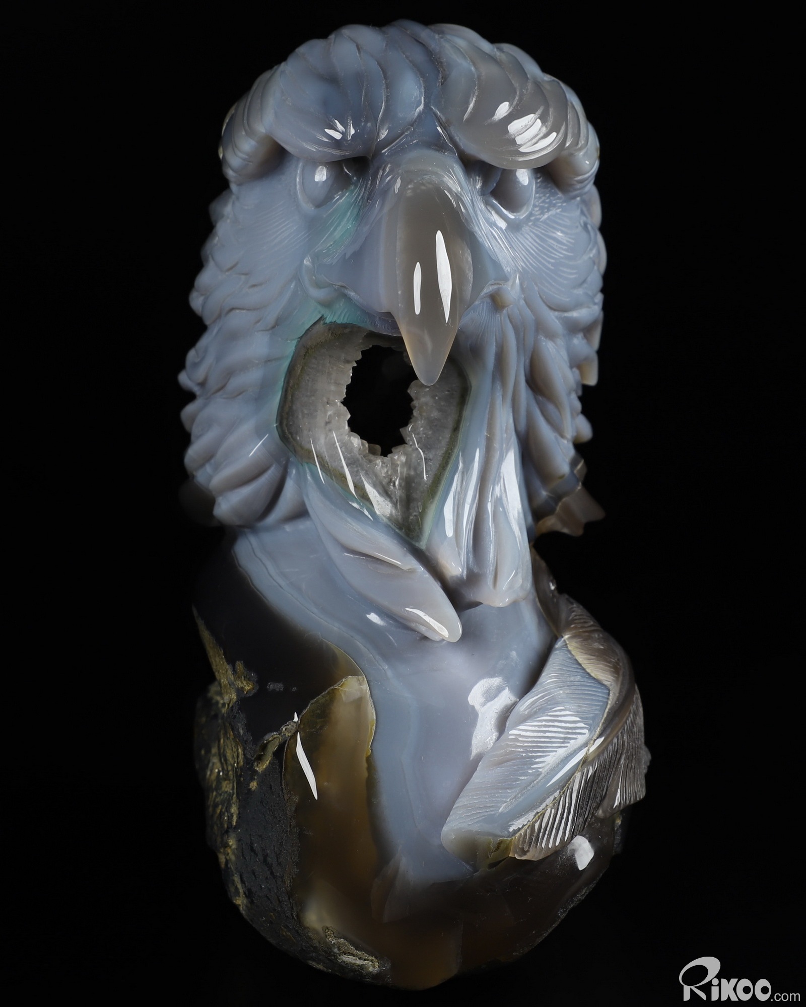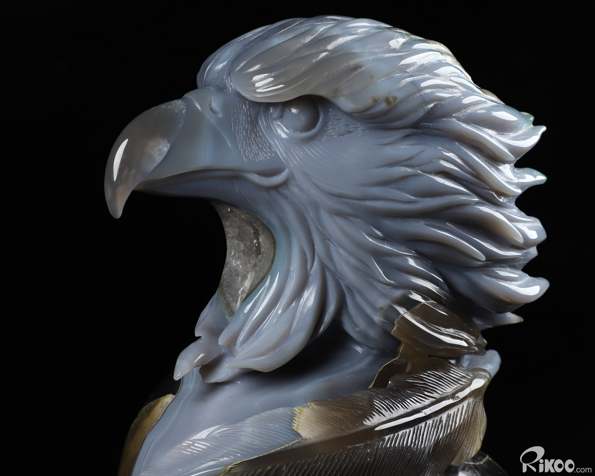 6.7" Agate Geode Carved Crystal Eagle Sculpture, Realistic