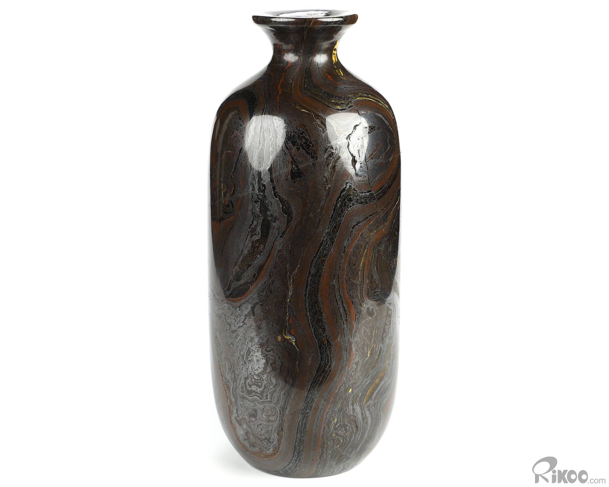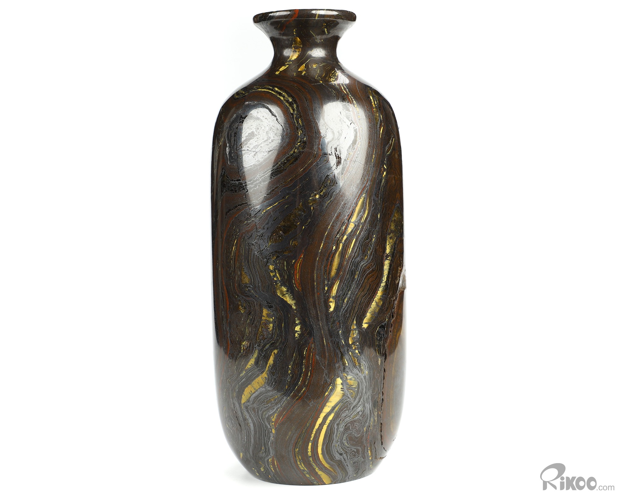 6.7" Colorful Tiger Iron Eye Hand Carved Crystal Vase Sculpture, Crystal Healing