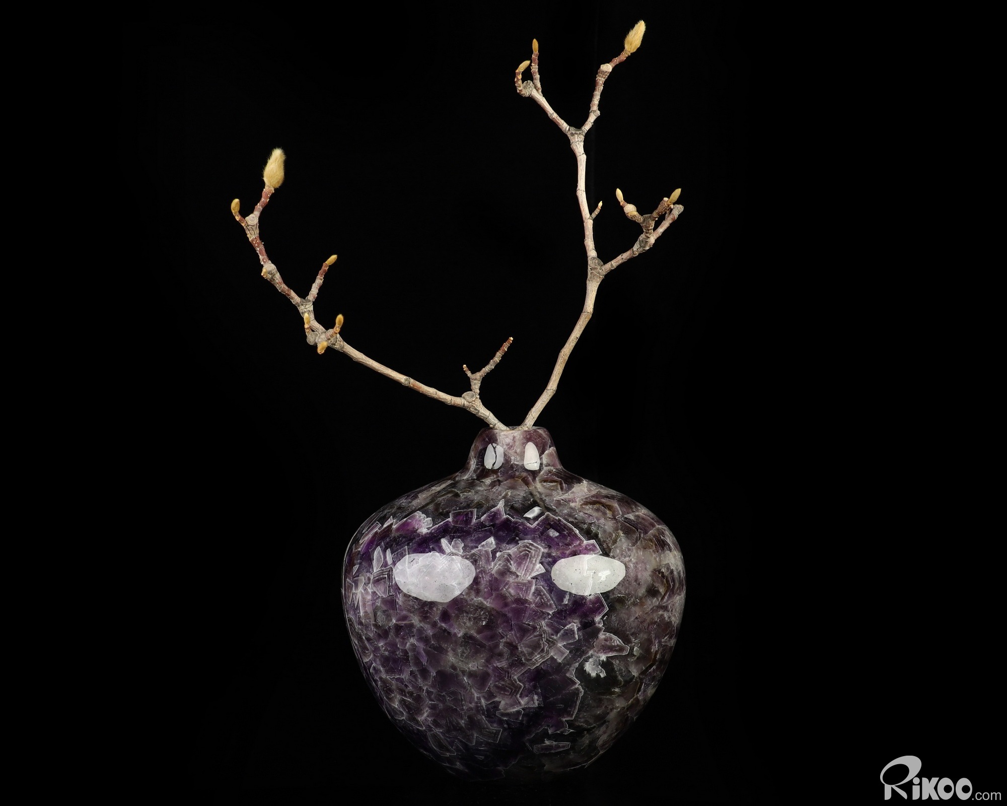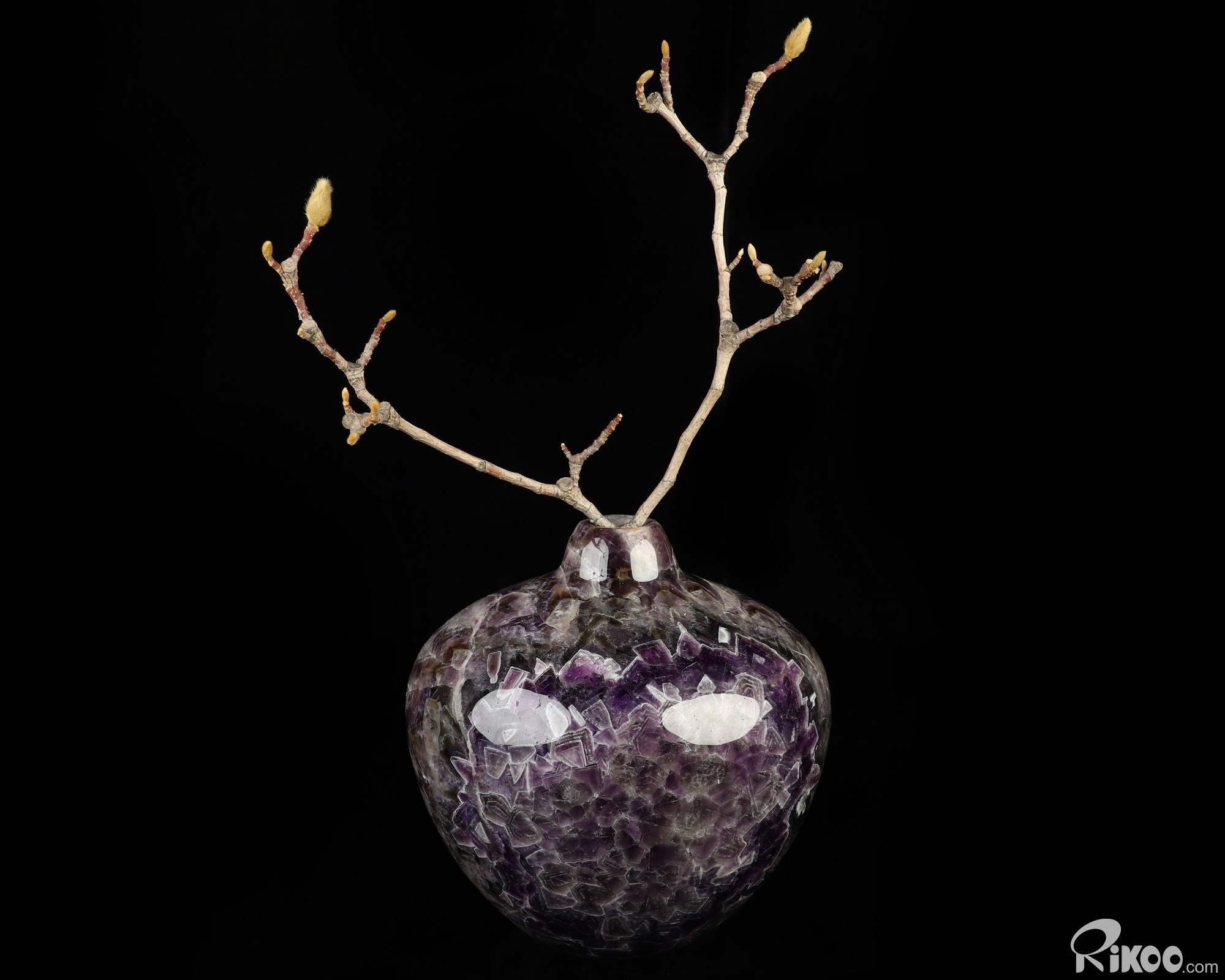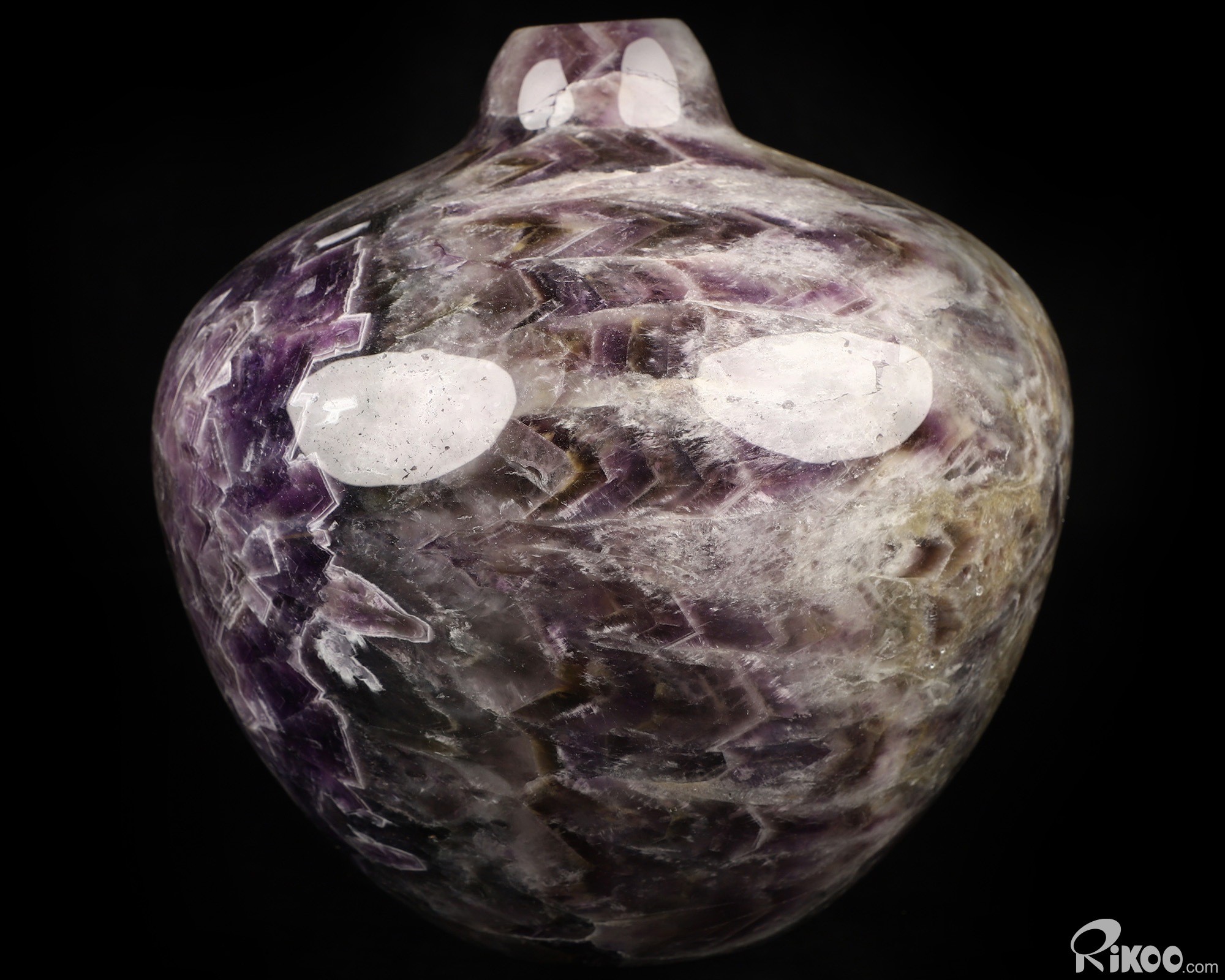 6.7" Dream Chevron Amethyst Hand Carved Crystal Vase Sculpture, Crystal Healing