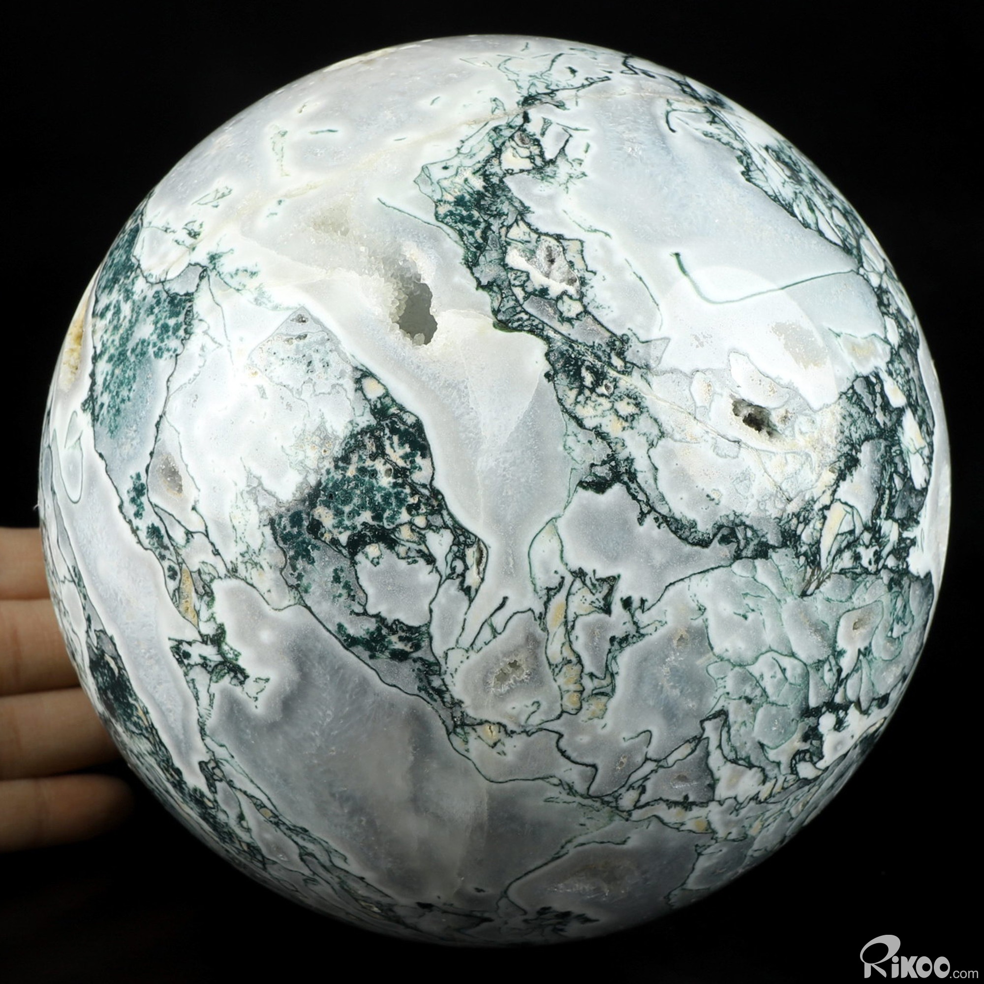6.7" Green Moss Agate Hand Carved Crystal Ball/Sphere, Crystal Healing