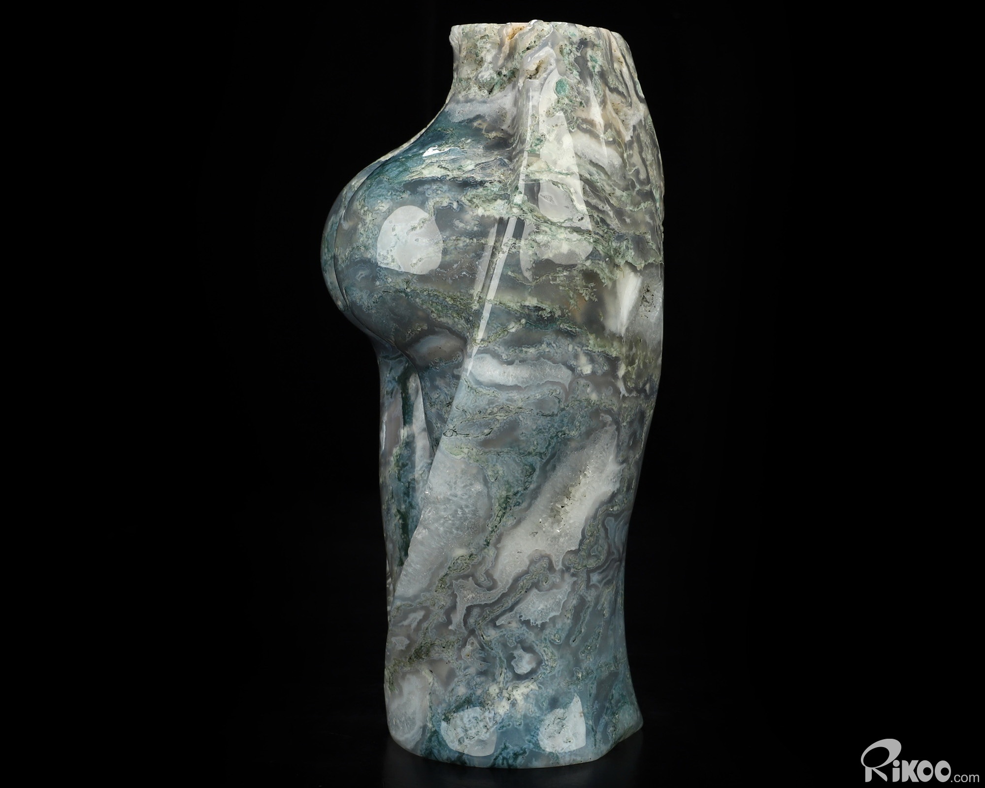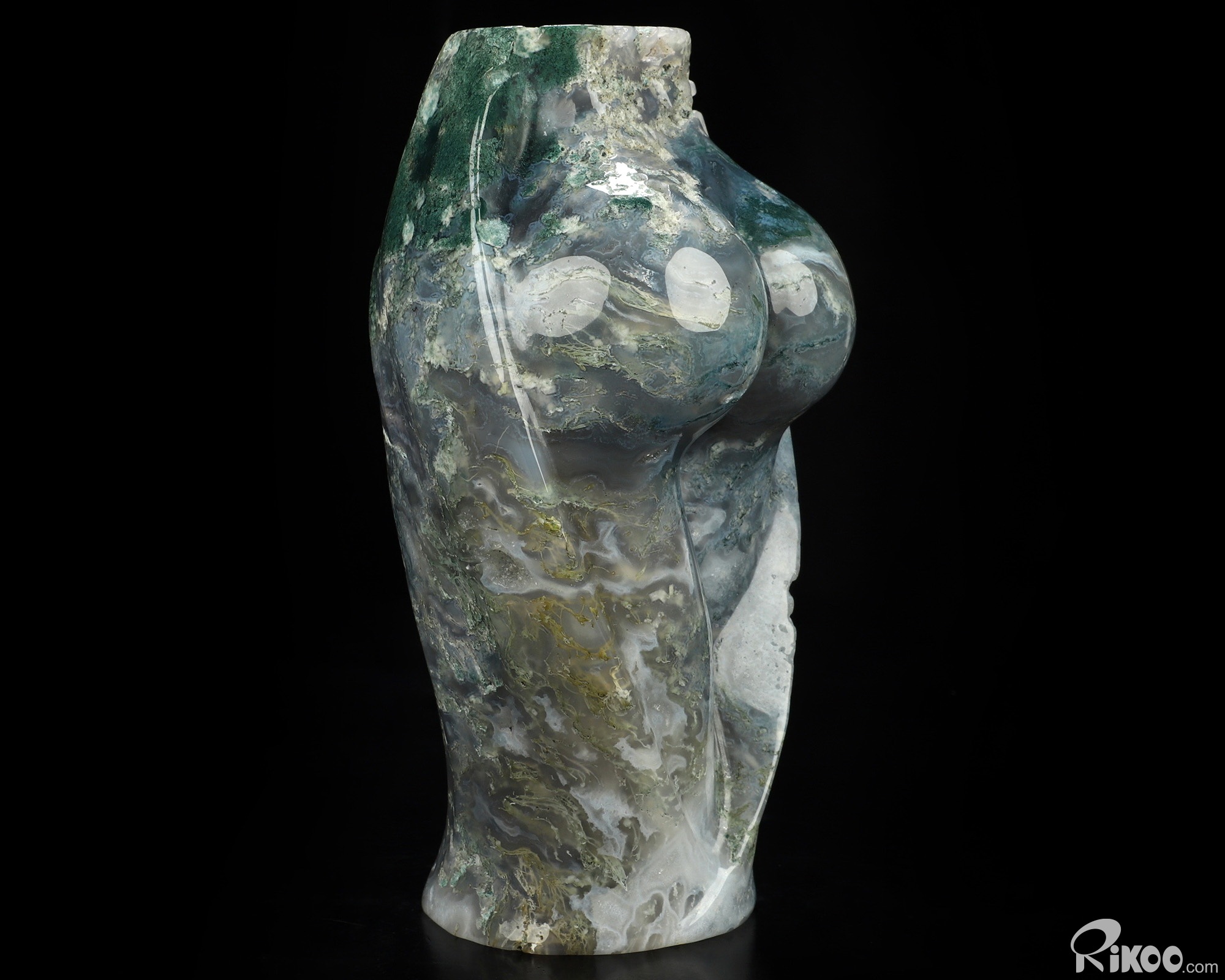 6.7" Green Moss Agate Hand Carved Crystal Body Vase Sculpture, Crystal Healing