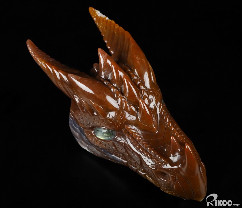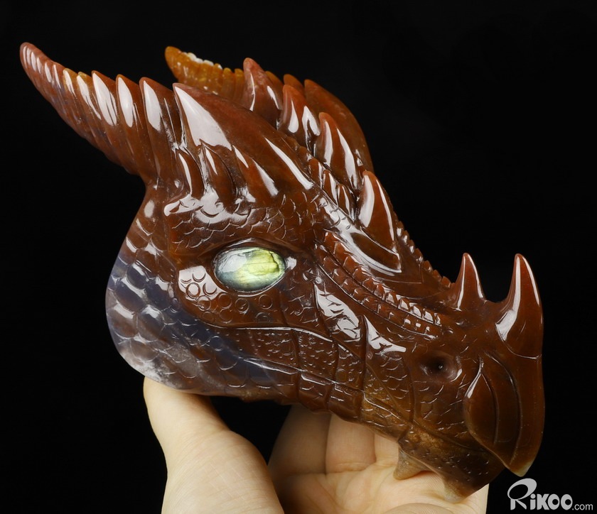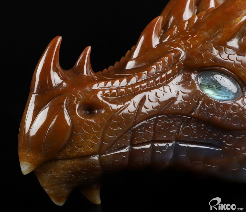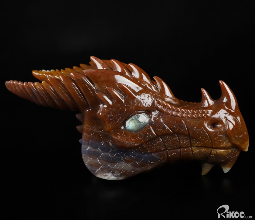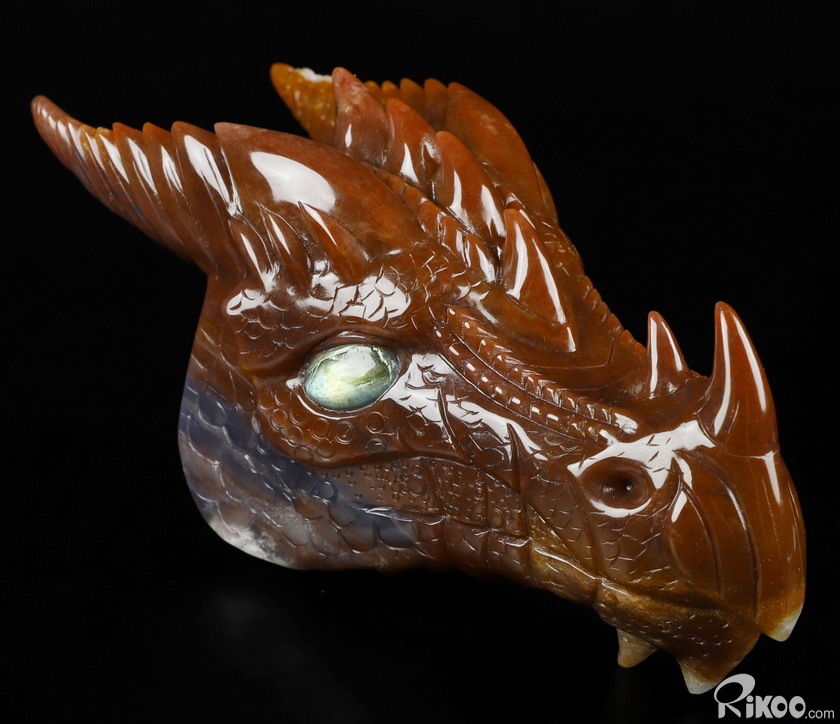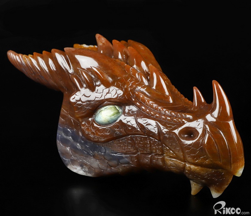 6.7" Indian Agate Carved Crystal Dragon Sculpture, Crystal Healing