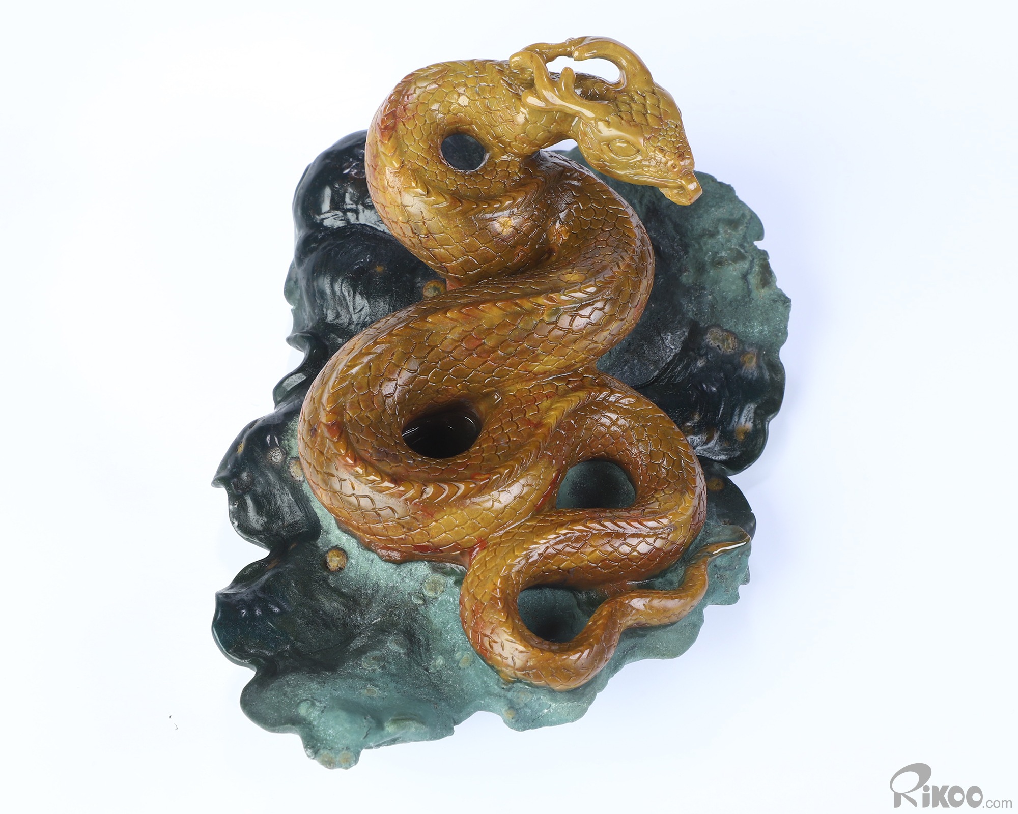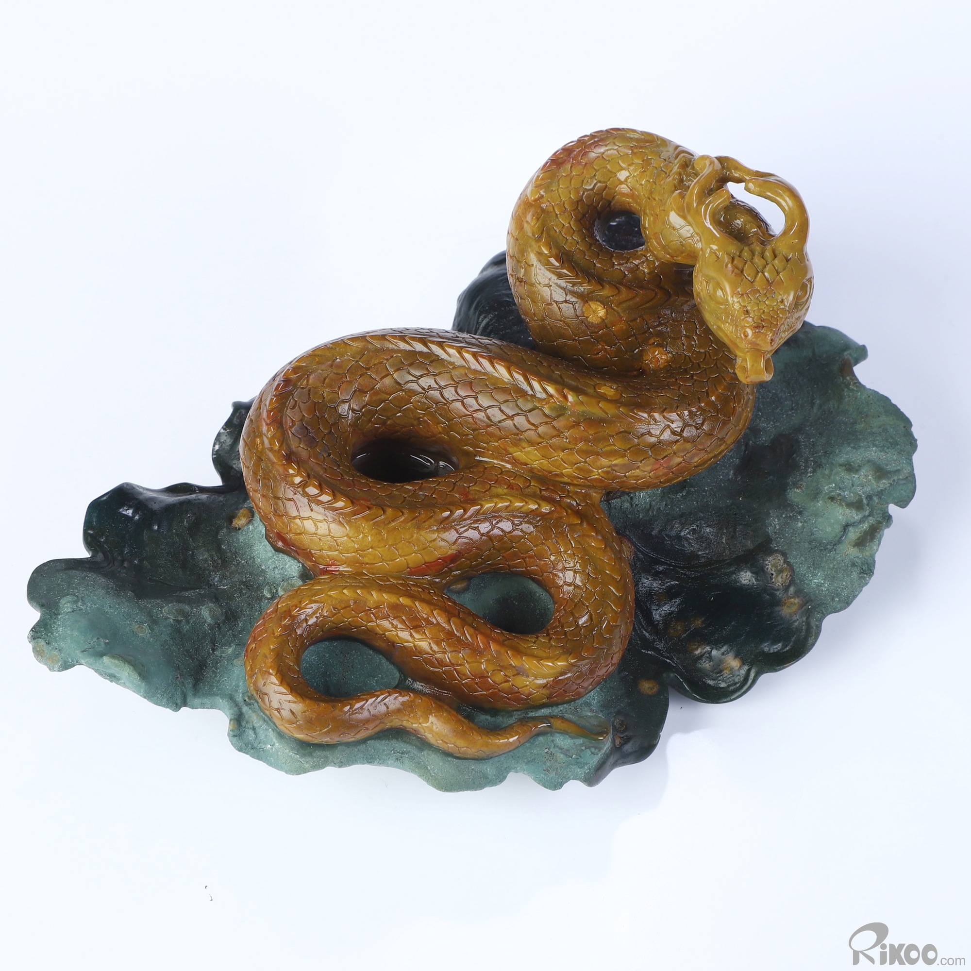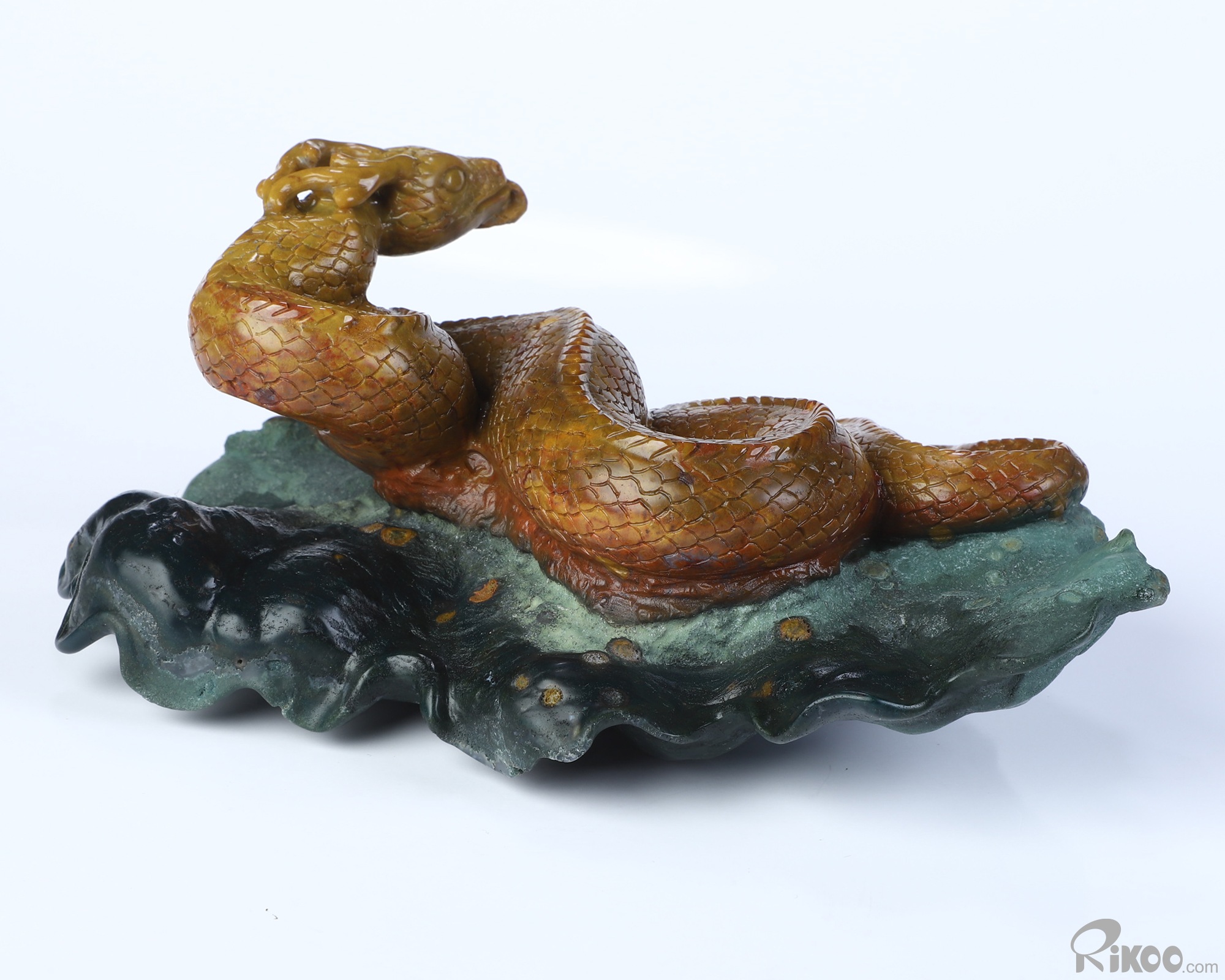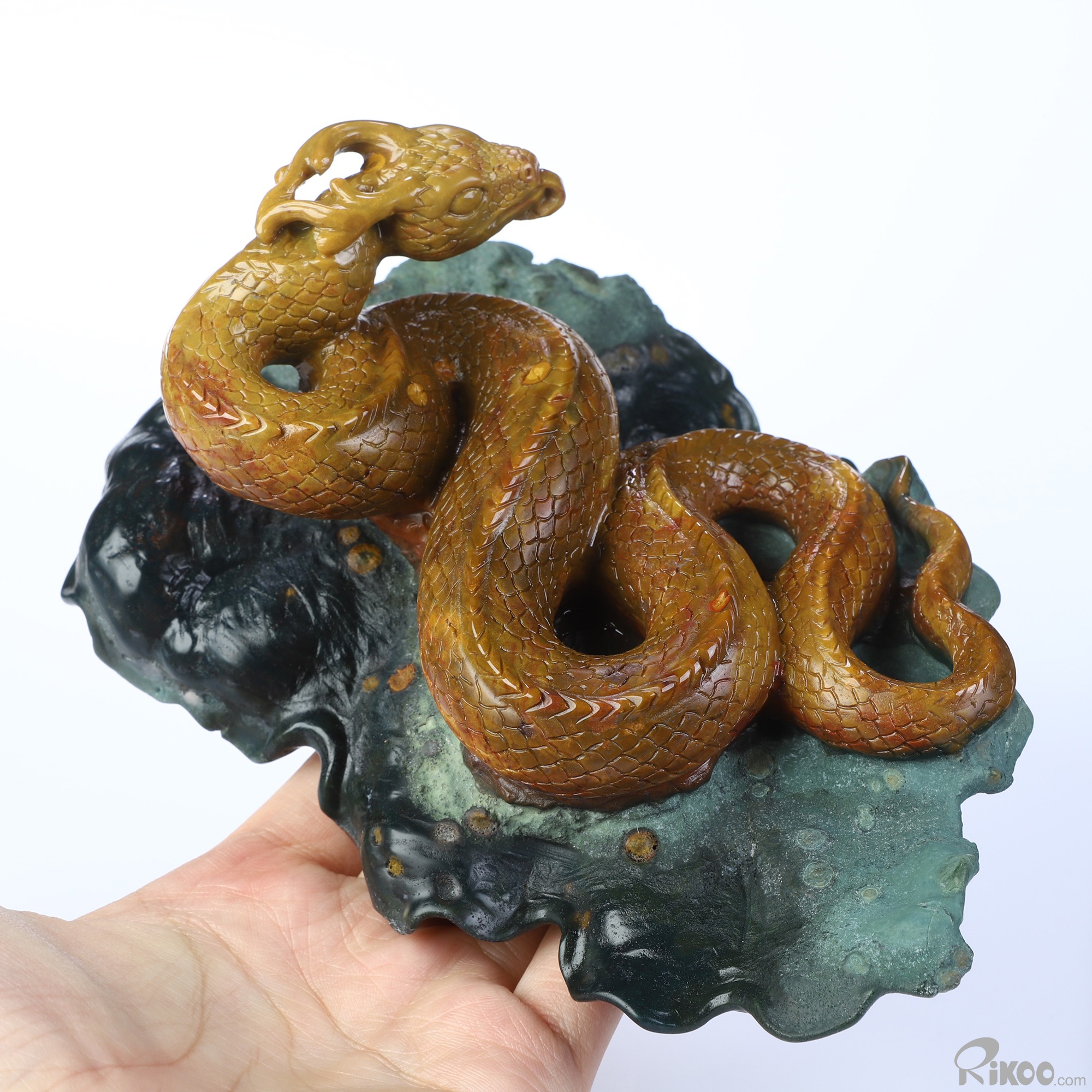 6.7" Indian Agate Hand Carved Crystal Snake Sculpture, Crystal Healing