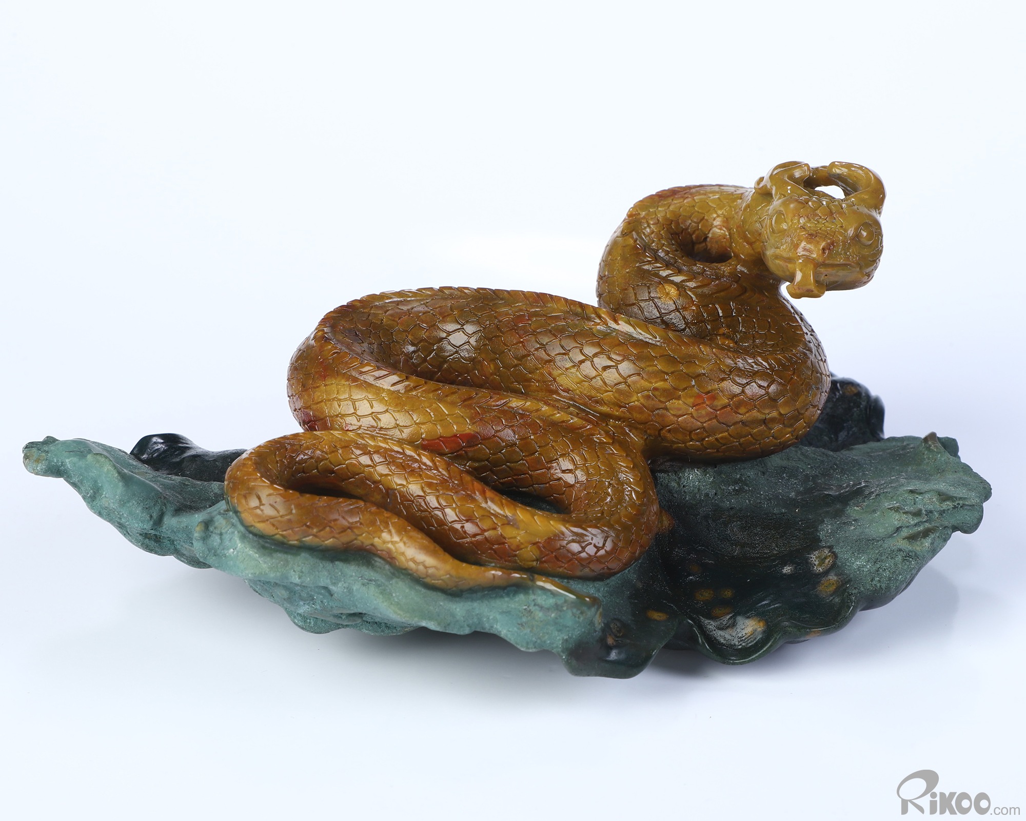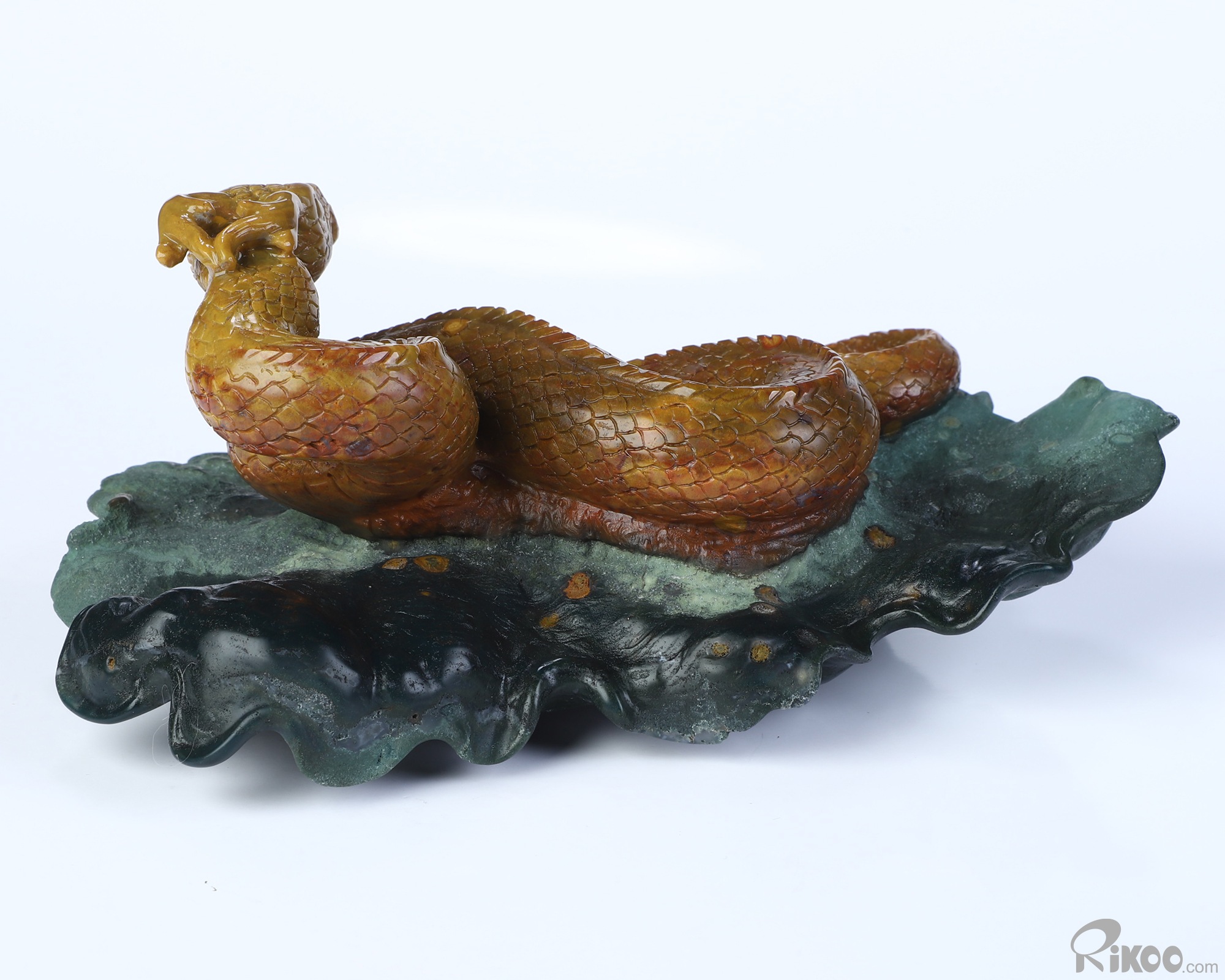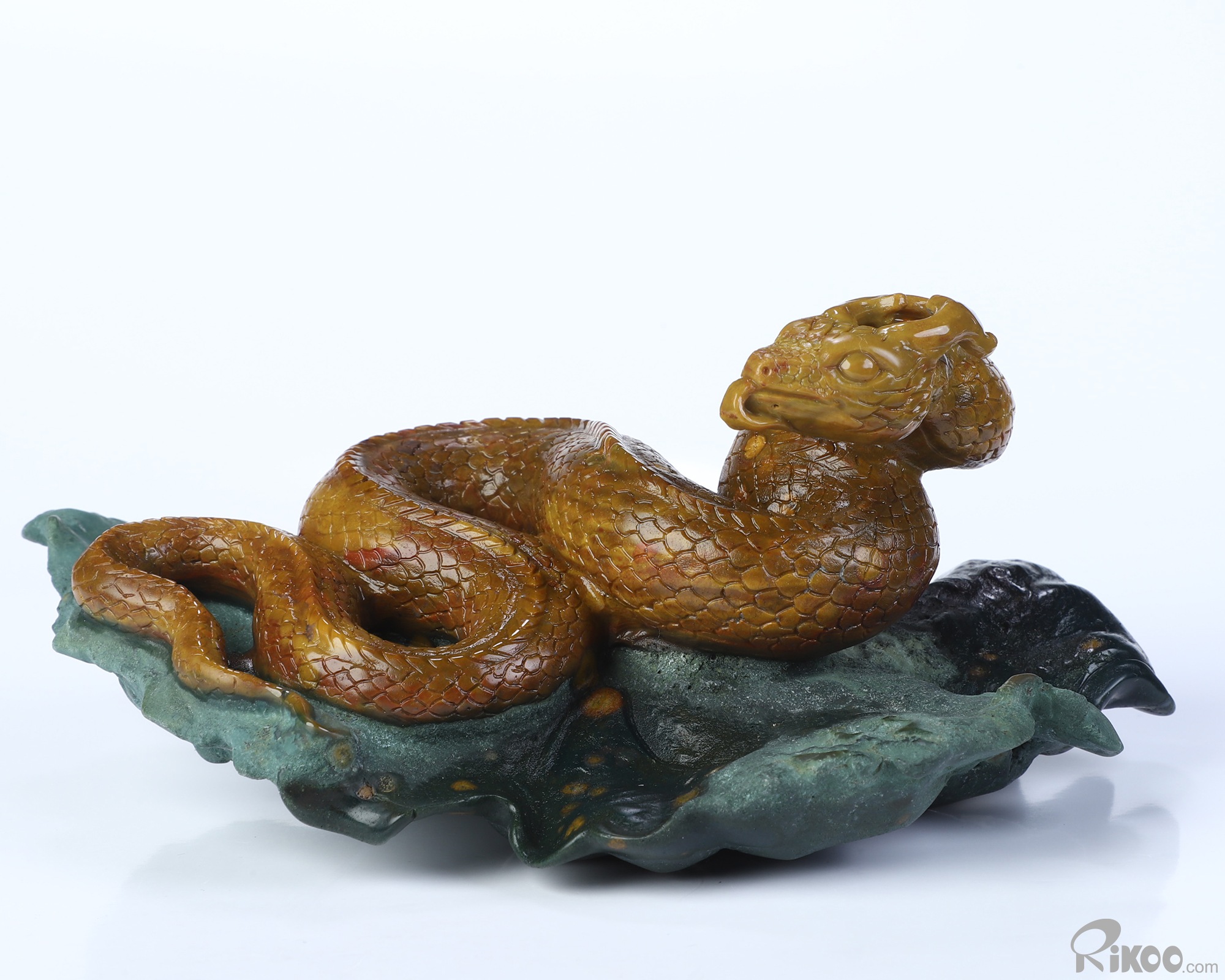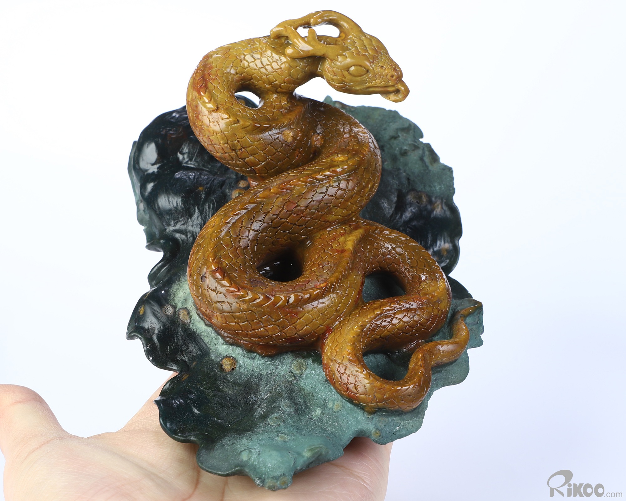 6.7" Indian Agate Hand Carved Crystal Snake Sculpture, Crystal Healing